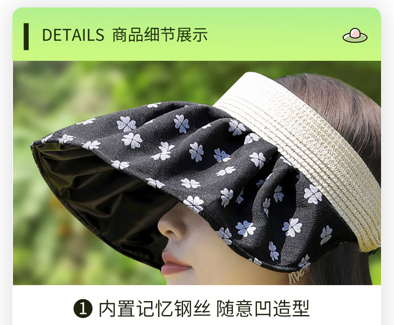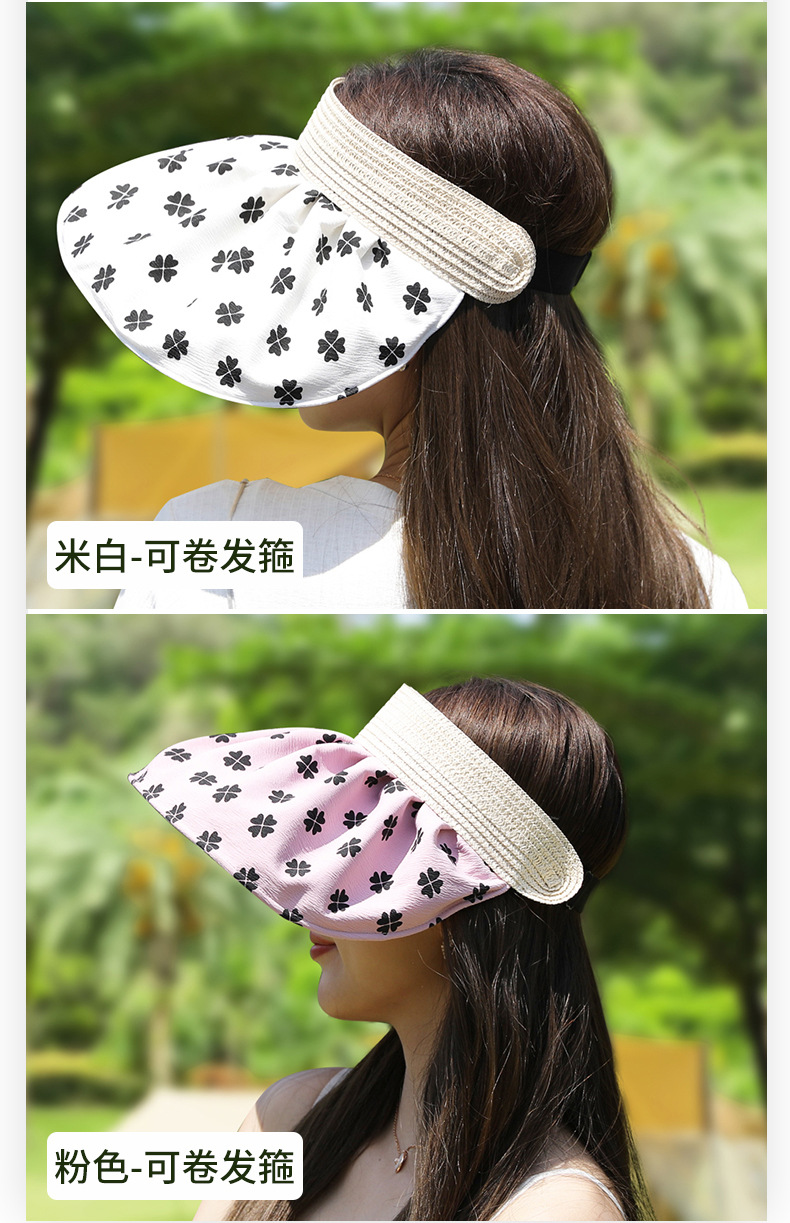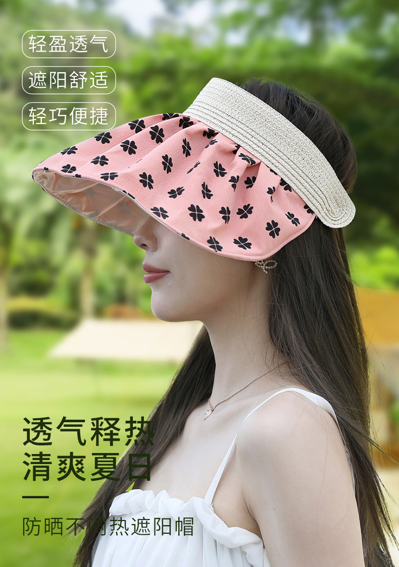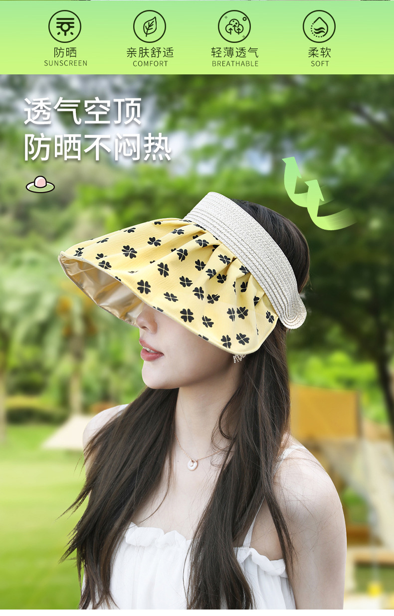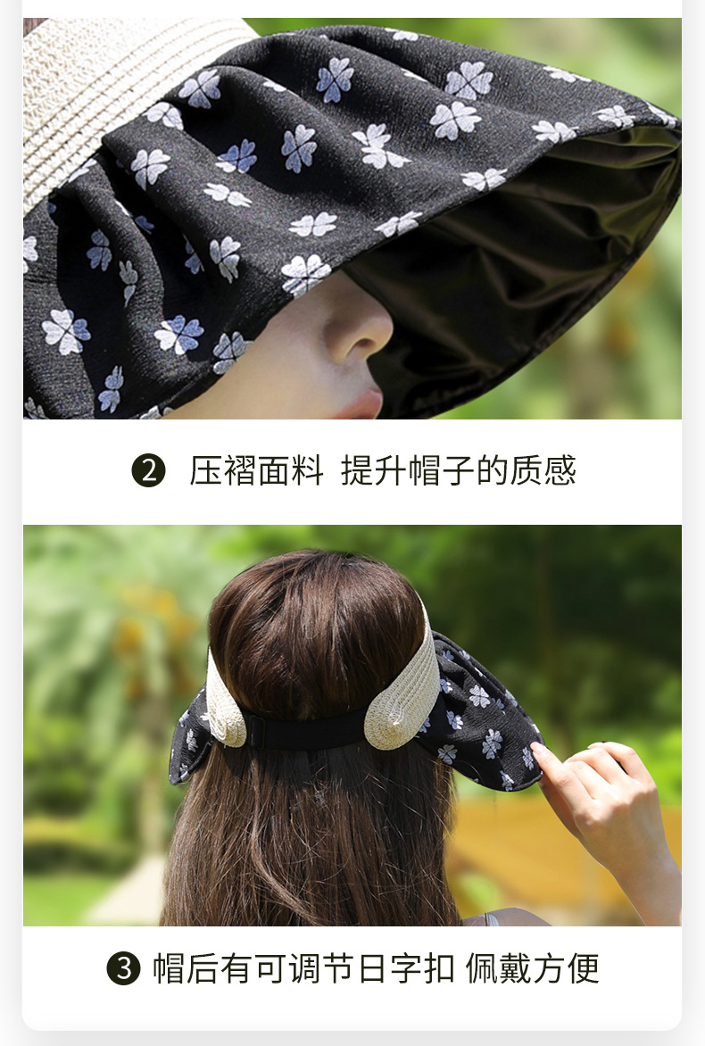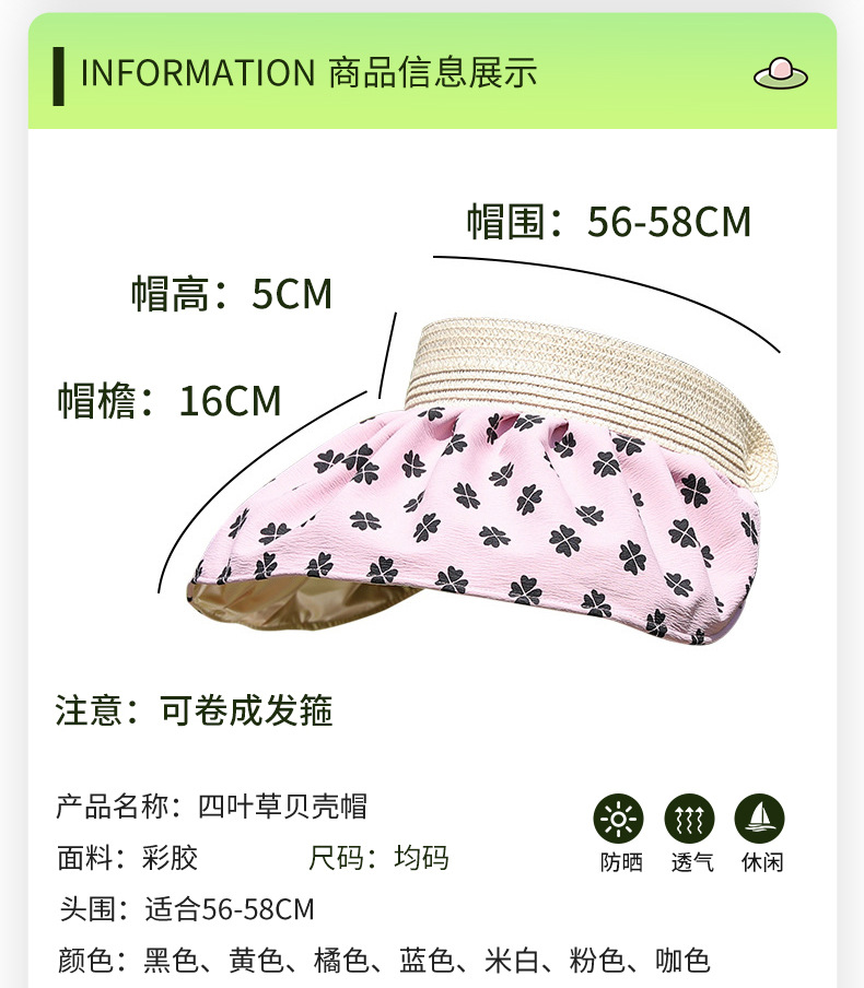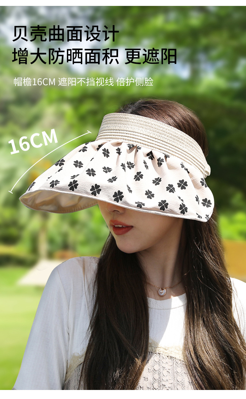 夏季女防晒太阳帽户外休闲防紫外线遮阳帽骑行旅游贝壳空顶采茶帽
