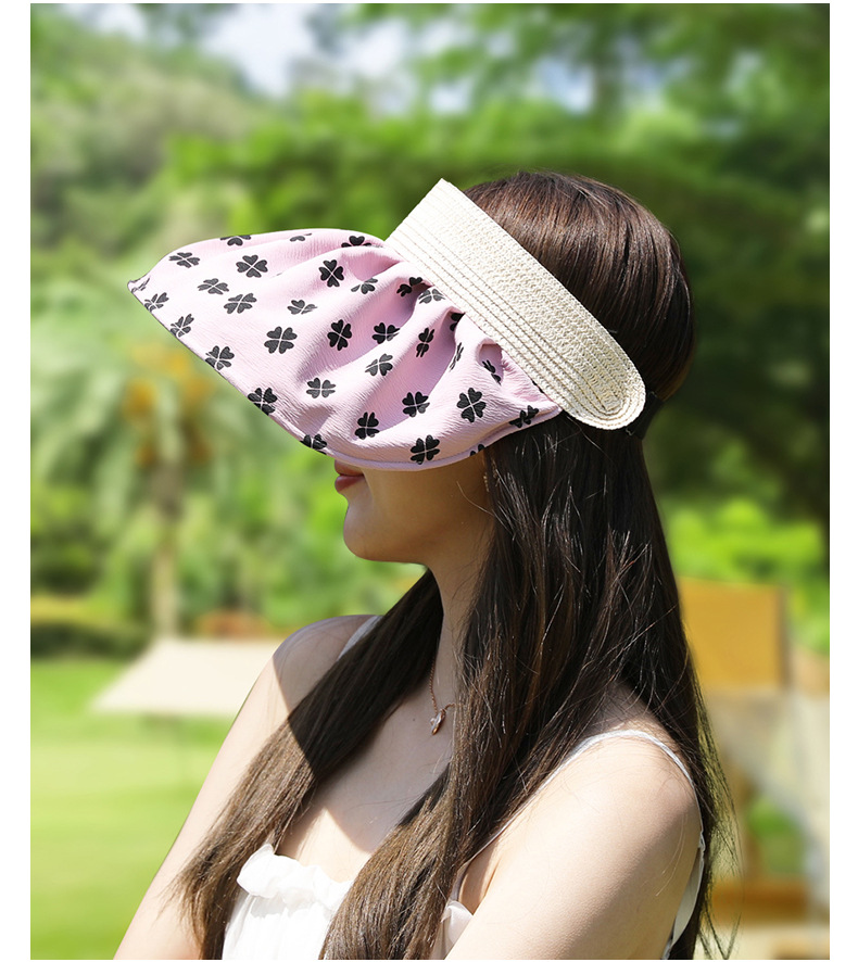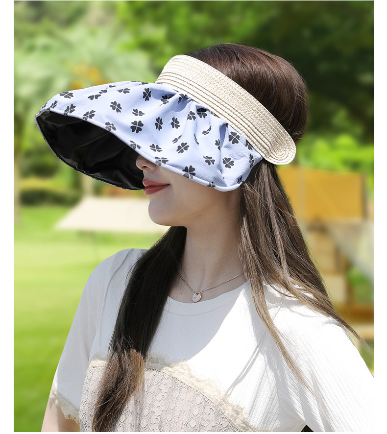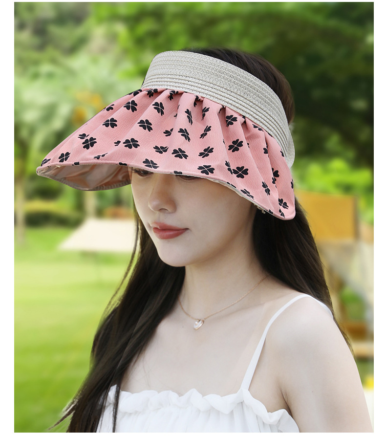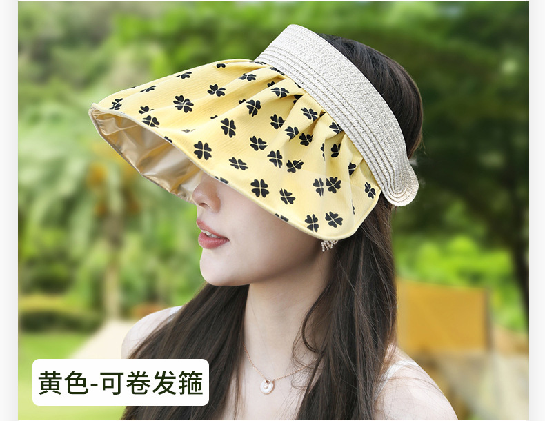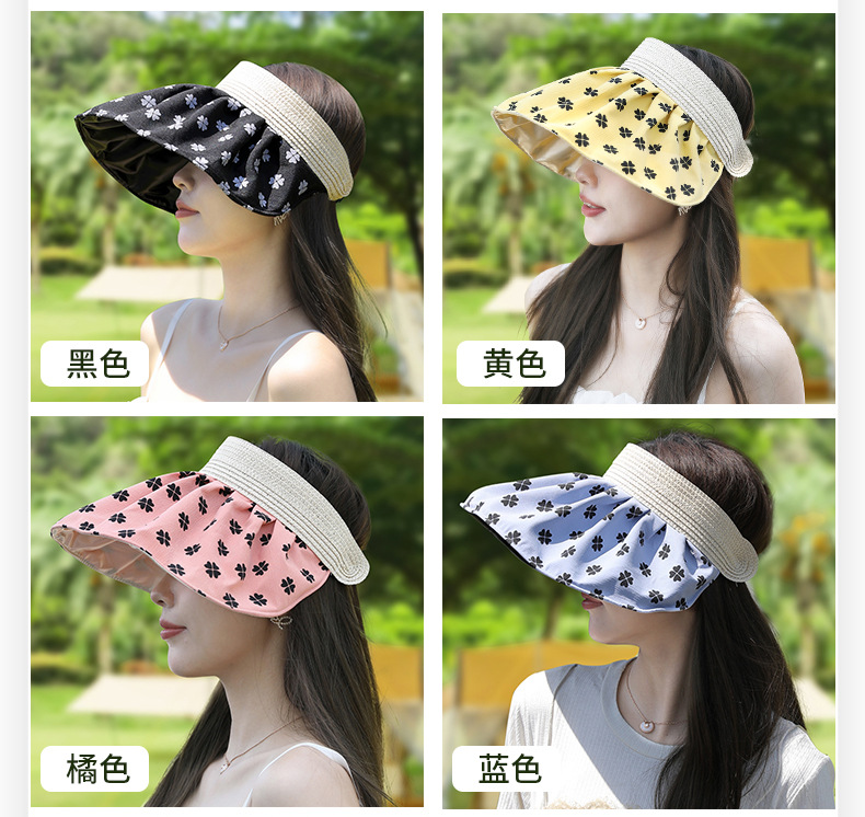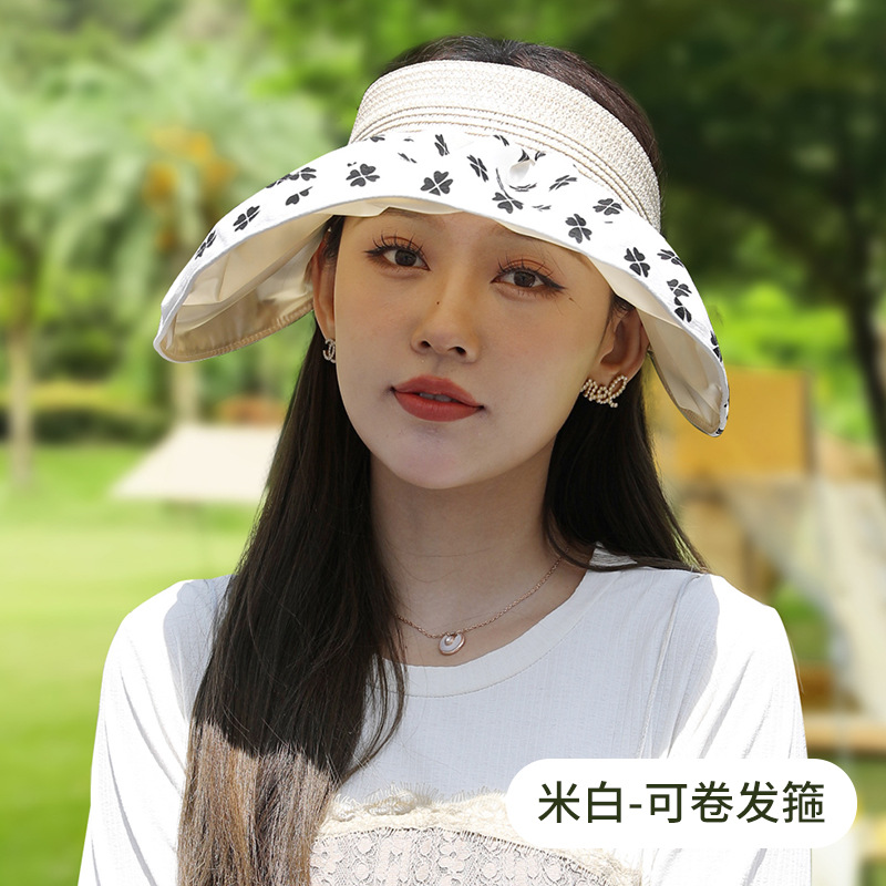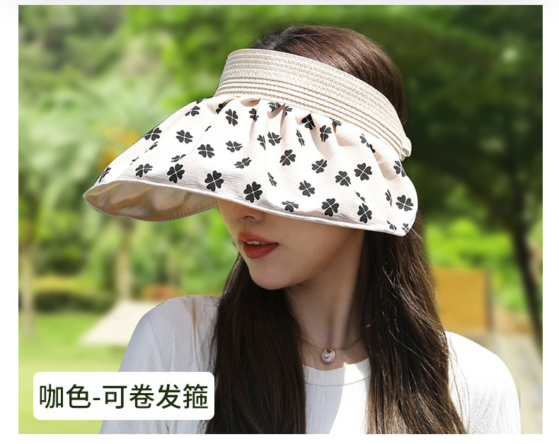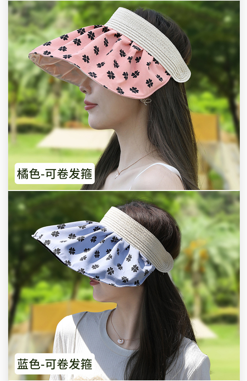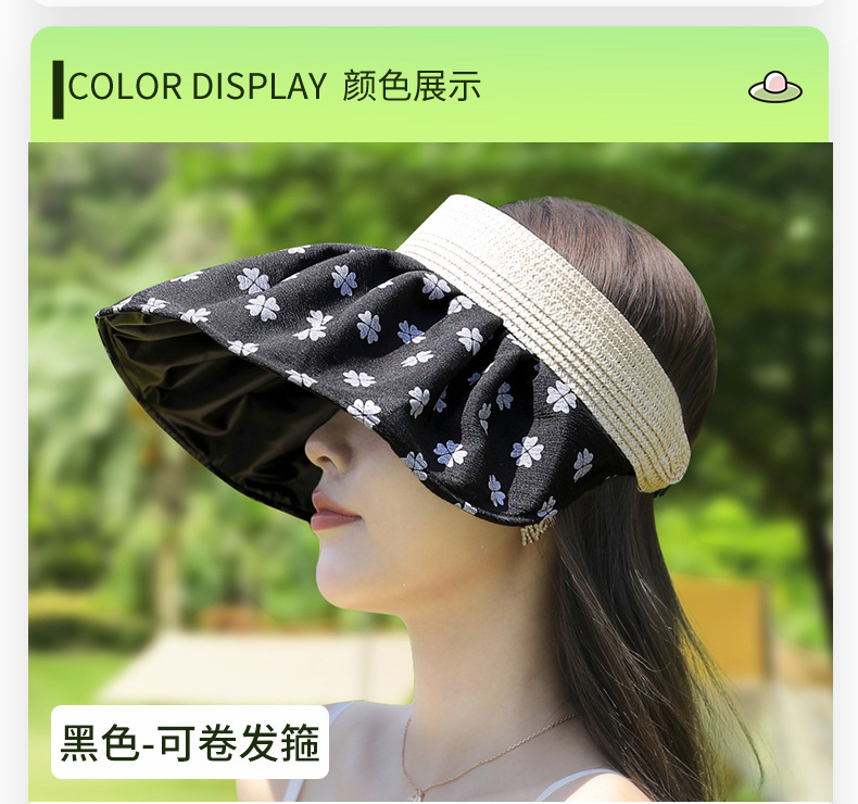夏季女防晒太阳帽户外休闲防紫外线遮阳帽骑行旅游贝壳空顶采茶帽