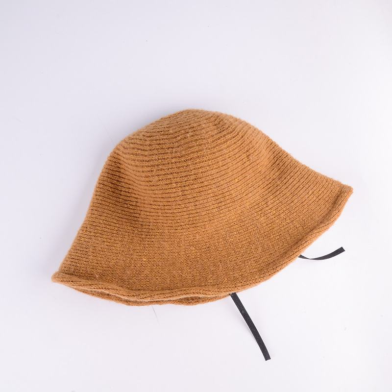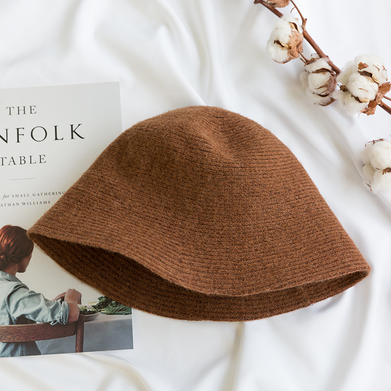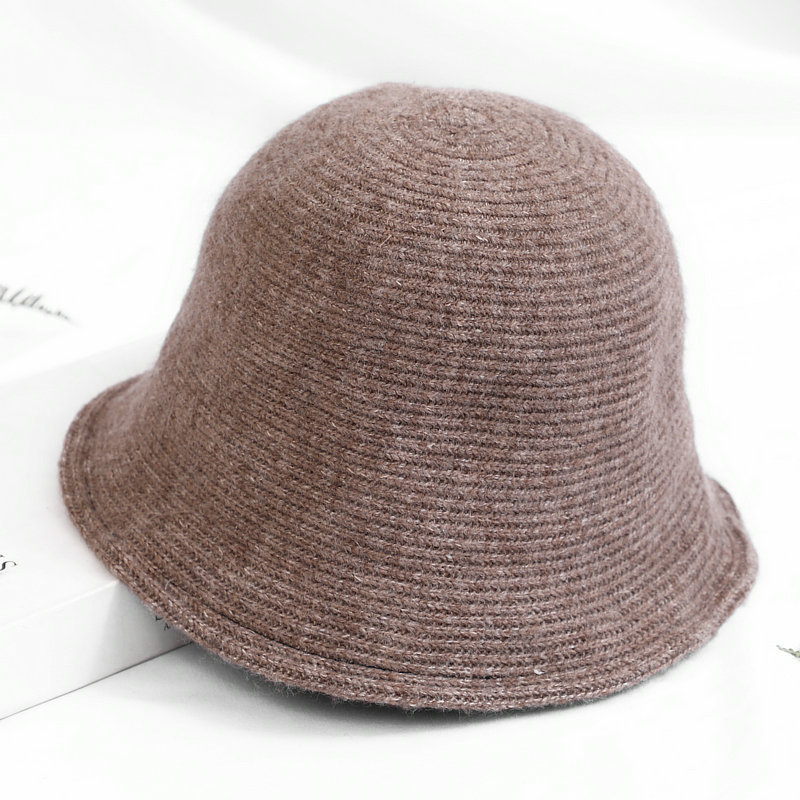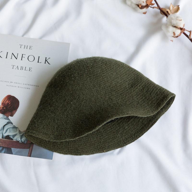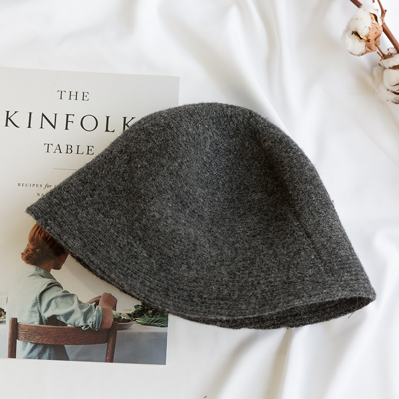 韩版纯色羊毛渔夫帽女秋冬新款日系复古针织帽子毛呢盆帽休闲保暖