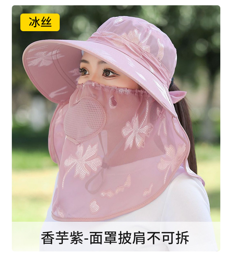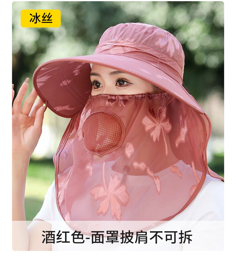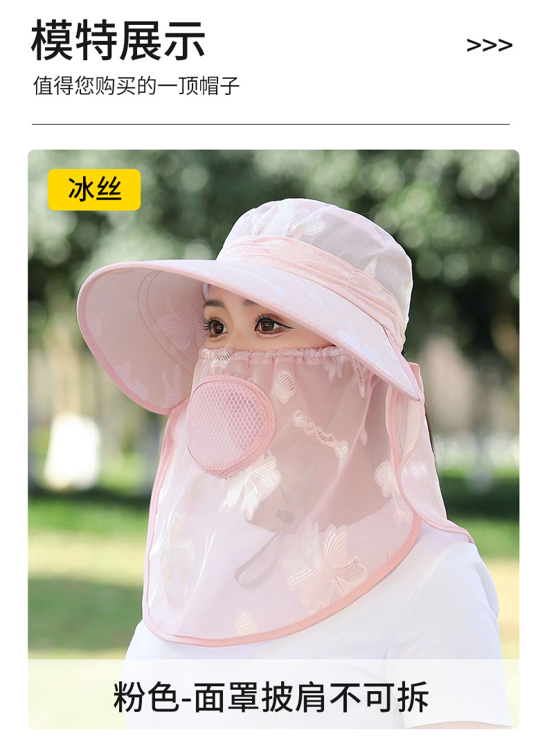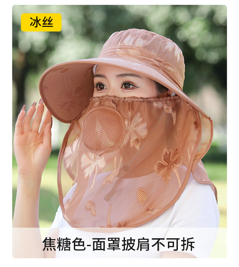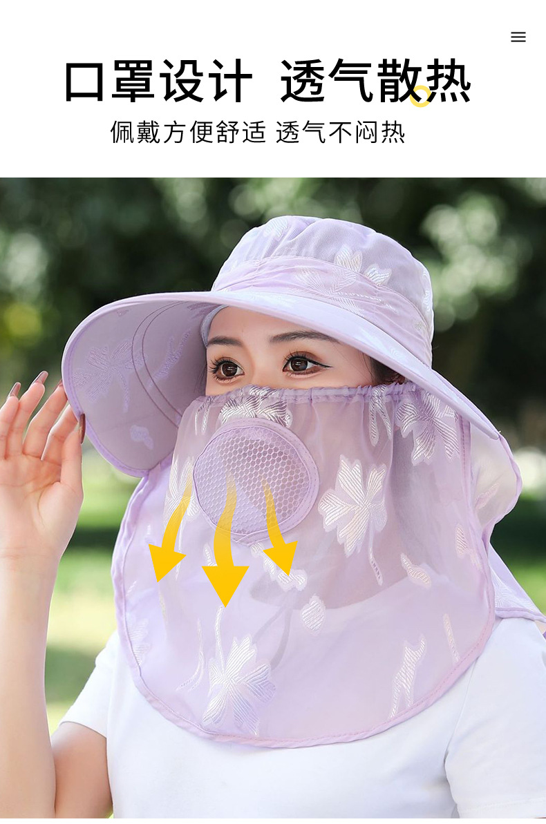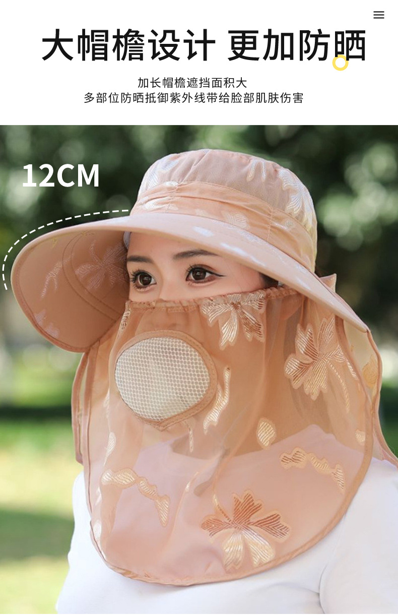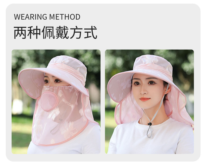 夏季新款遮阳帽户外大檐太阳披肩帽干活采茶防晒帽口罩一体登山帽
