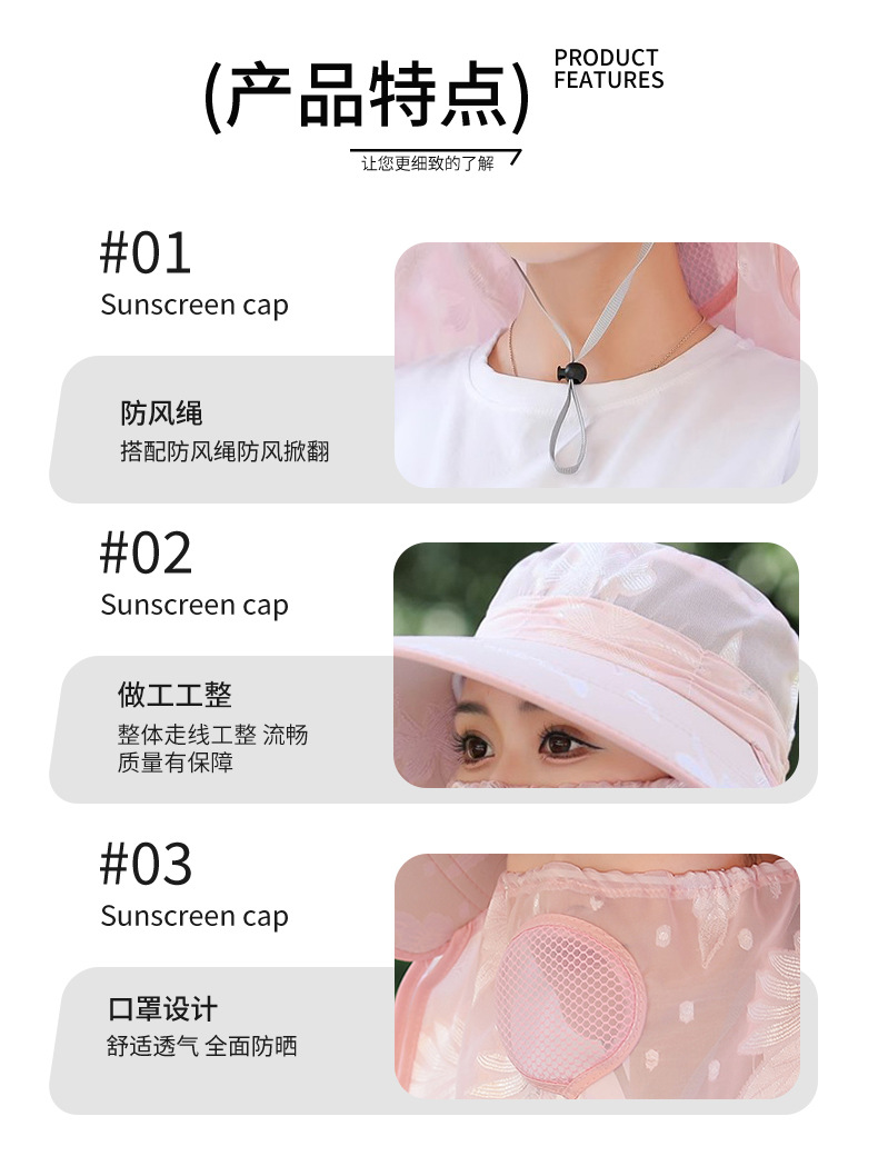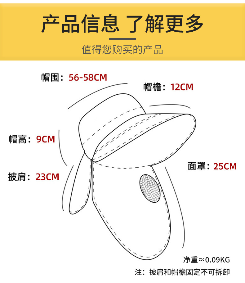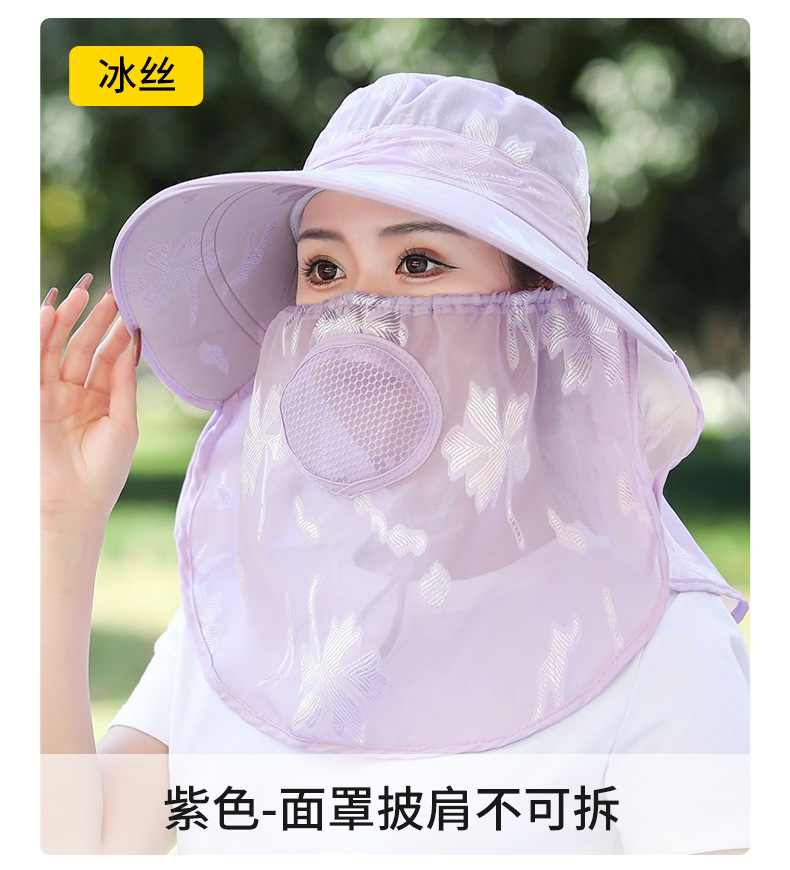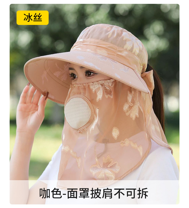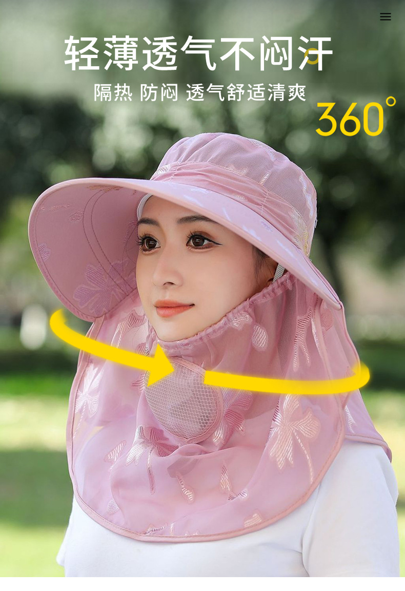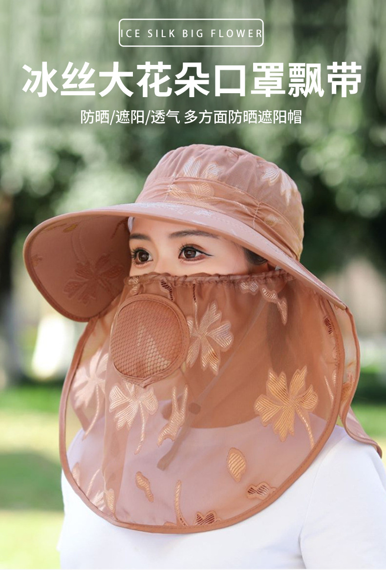 夏季新款遮阳帽户外大檐太阳披肩帽干活采茶防晒帽口罩一体登山帽