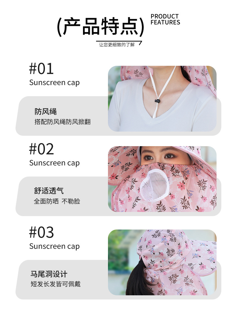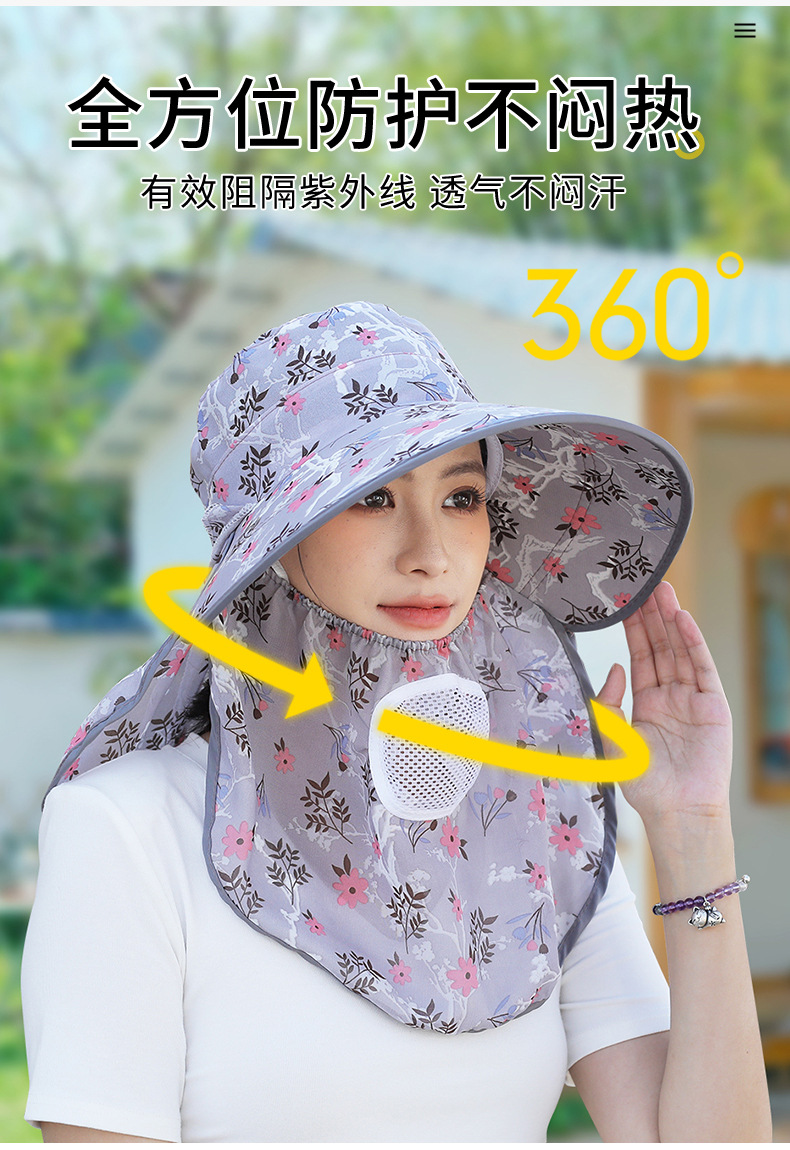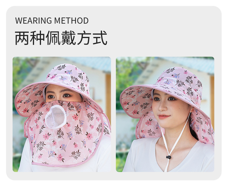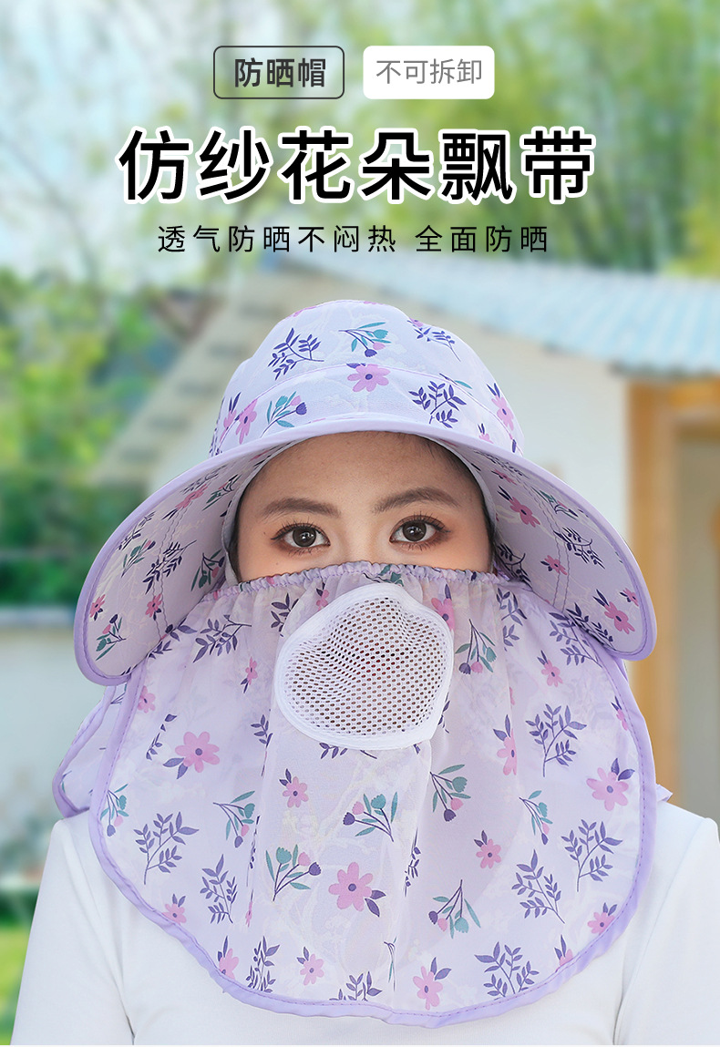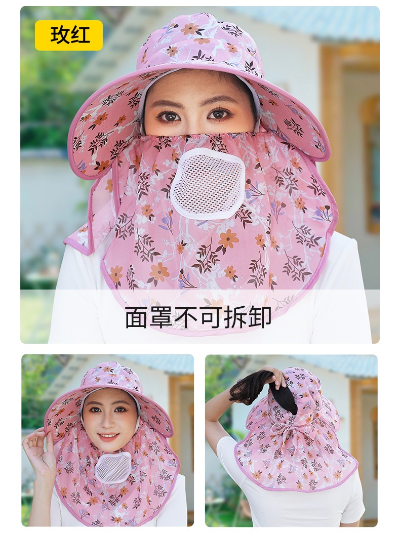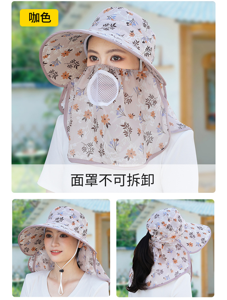 防晒太阳帽户外遮阳披肩帽全方位口罩一体帽下地干农活旅游渔夫帽