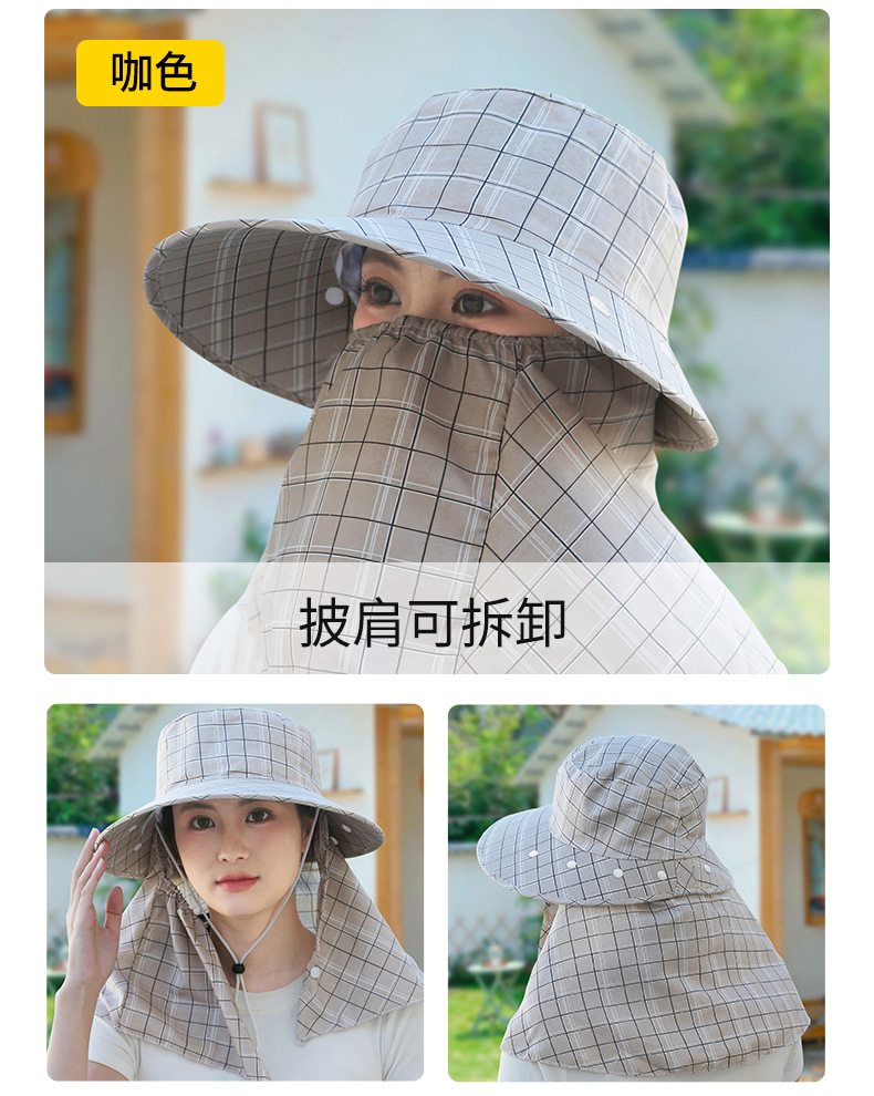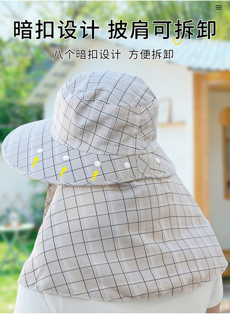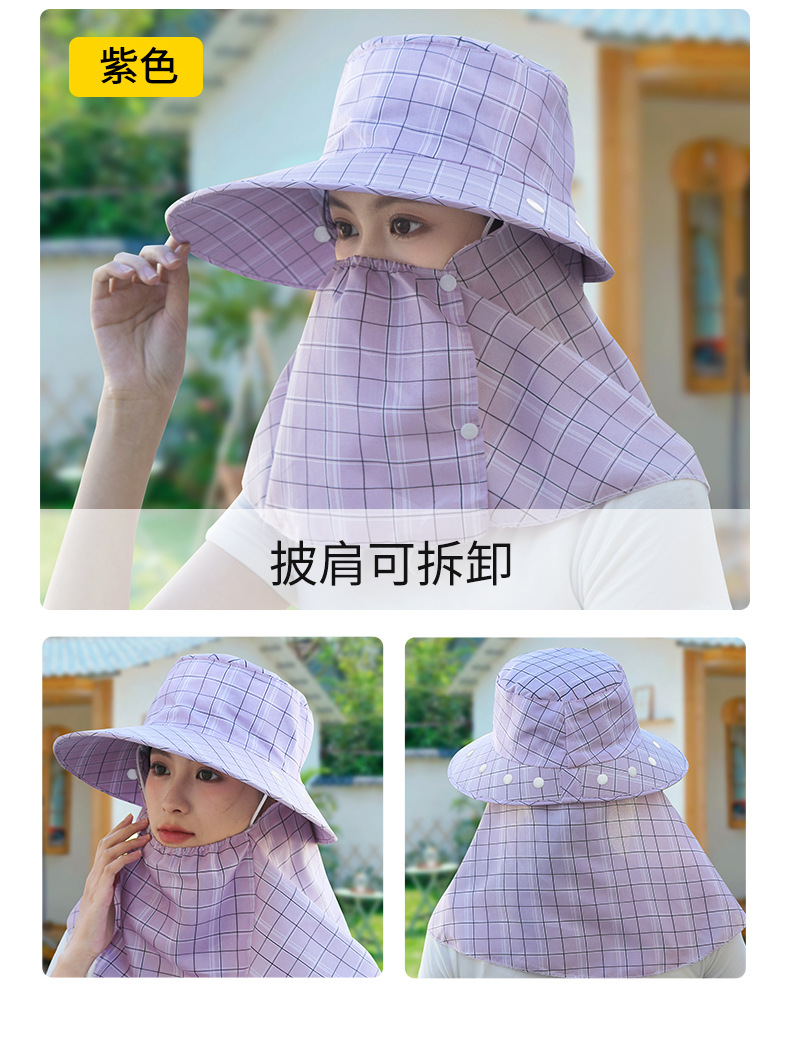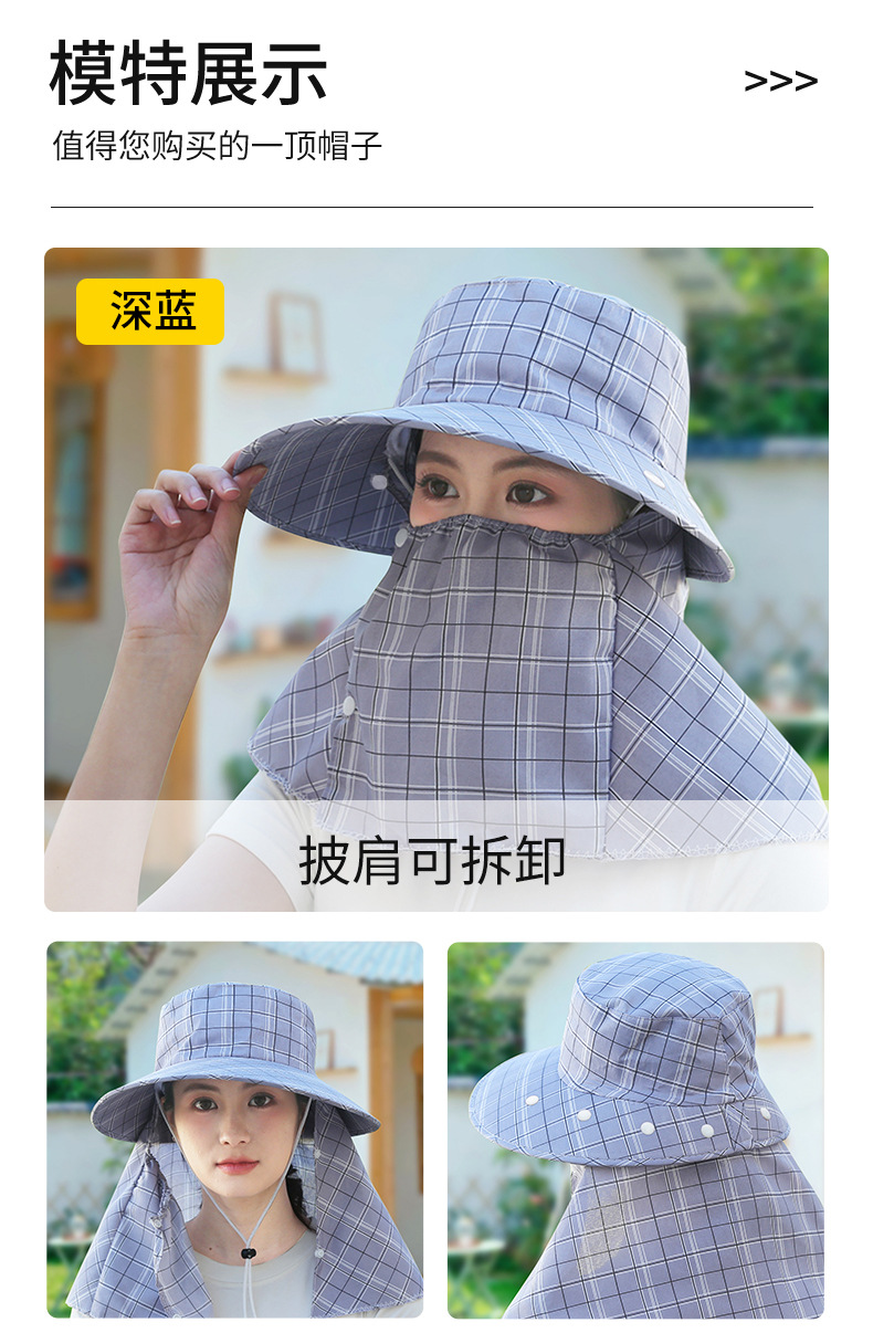 帽子女夏季干农活遮脸遮脖子太阳帽全脸防晒采茶帽户外拆卸遮阳帽