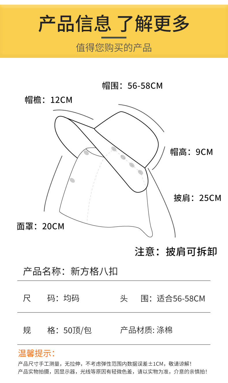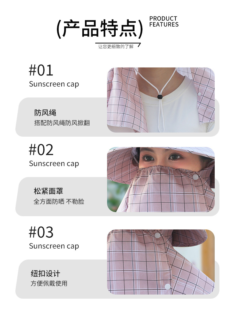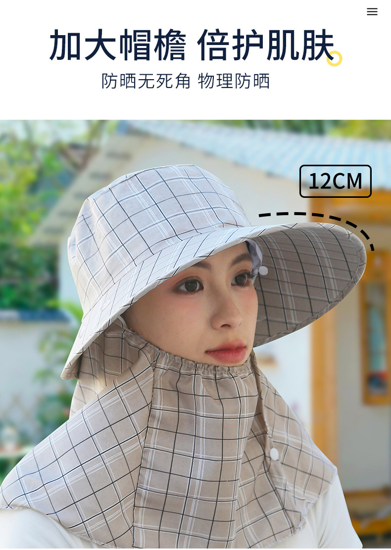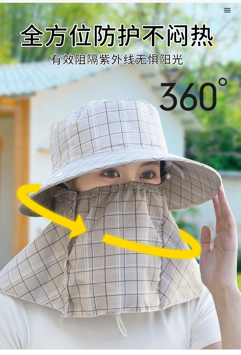 帽子女夏季干农活遮脸遮脖子太阳帽全脸防晒采茶帽户外拆卸遮阳帽