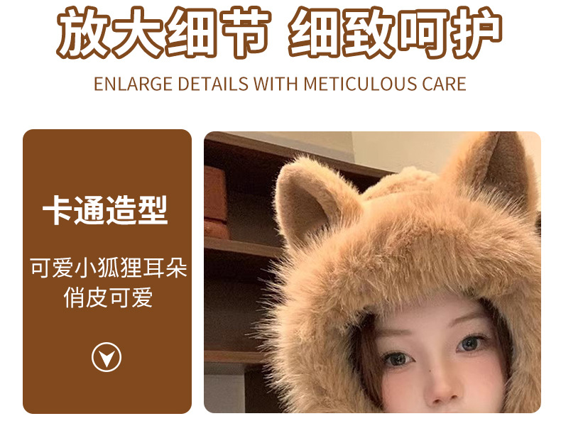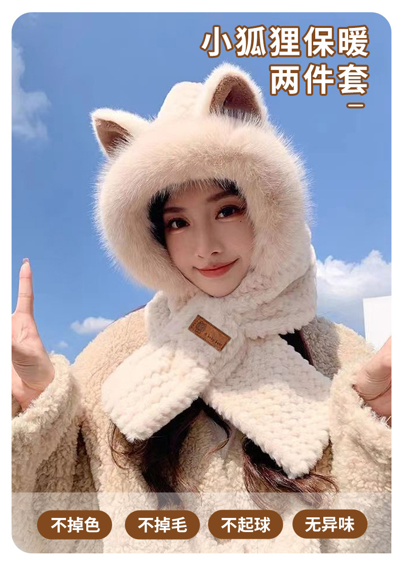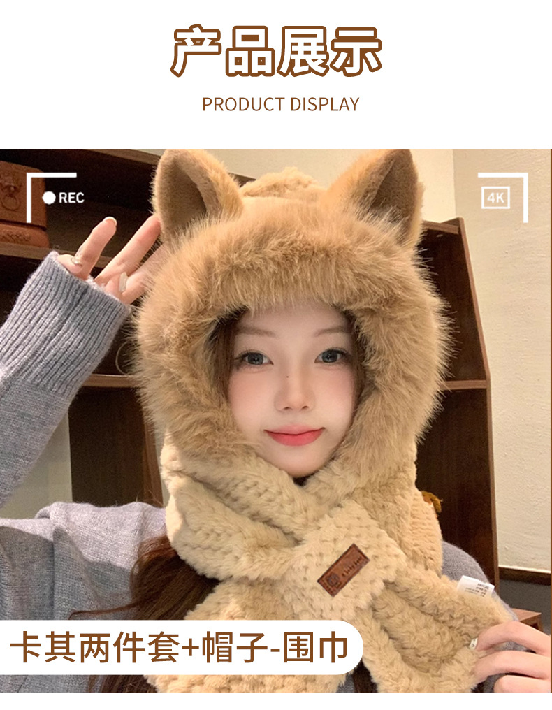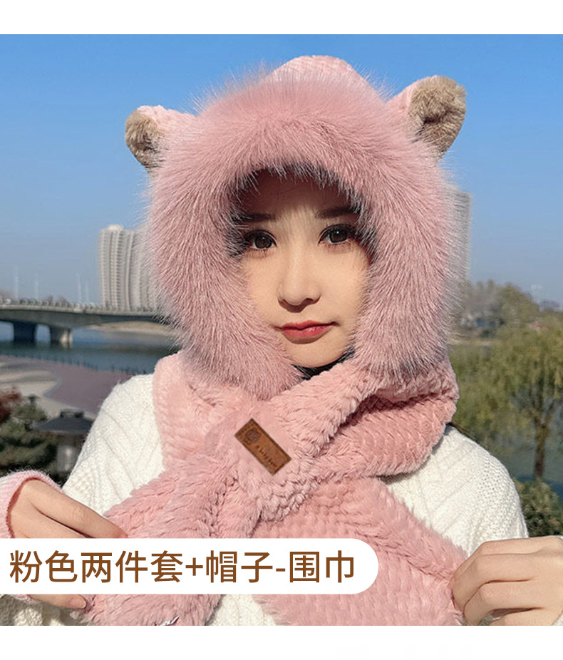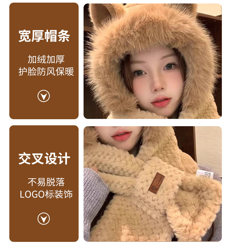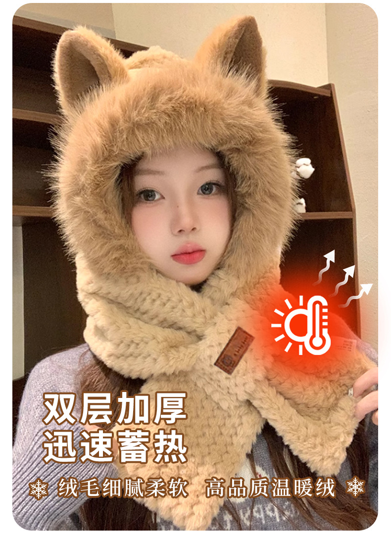 帽子围巾一体帽女冬季新款可爱毛绒加厚保暖护耳防风骑车围脖棉帽