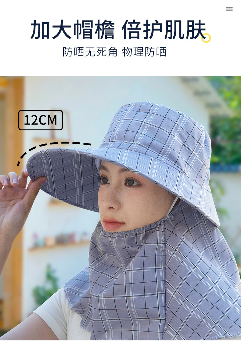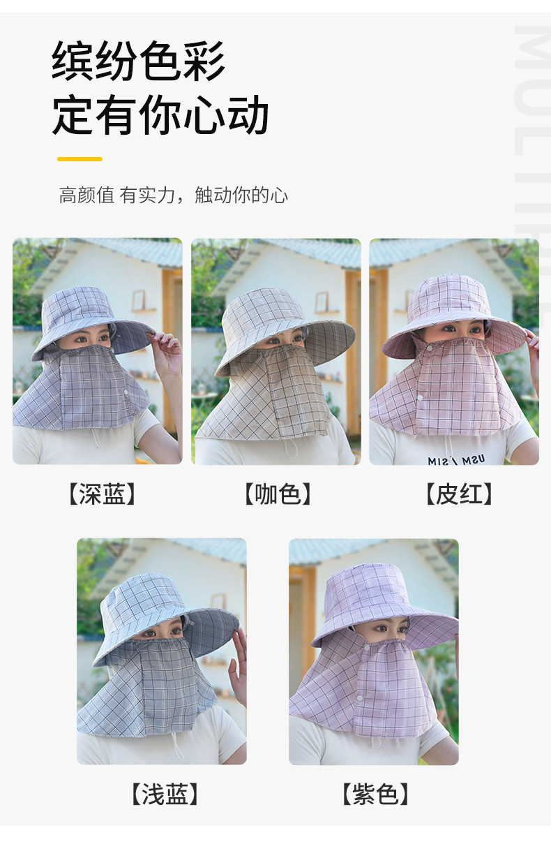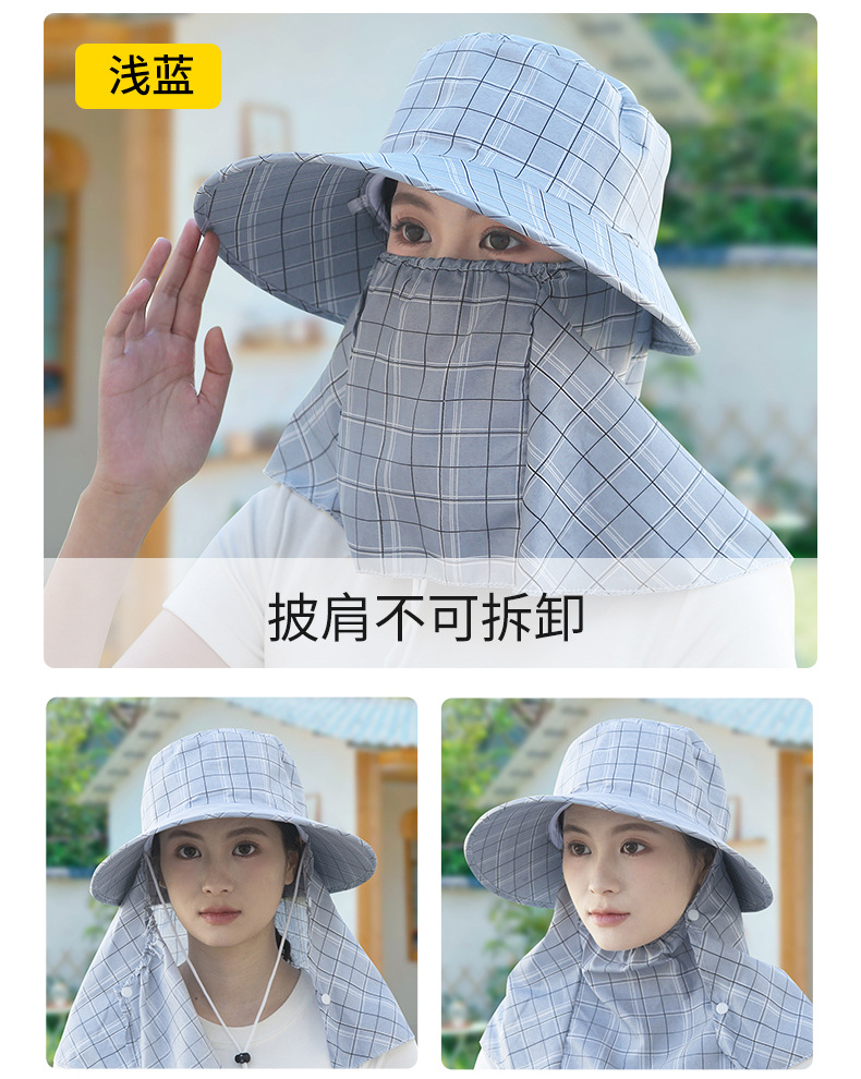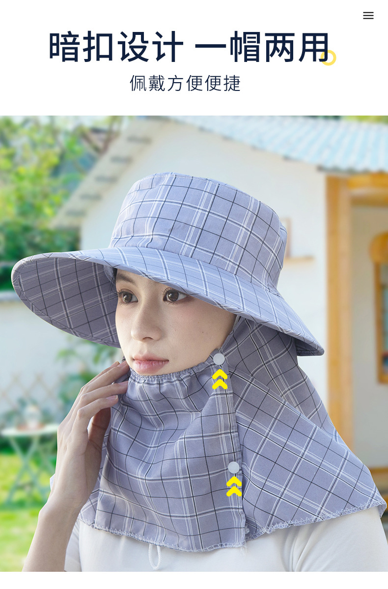 遮阳帽女式防晒防护帽子夏季大沿骑车帽遮脸护颈采茶帽干活太阳帽