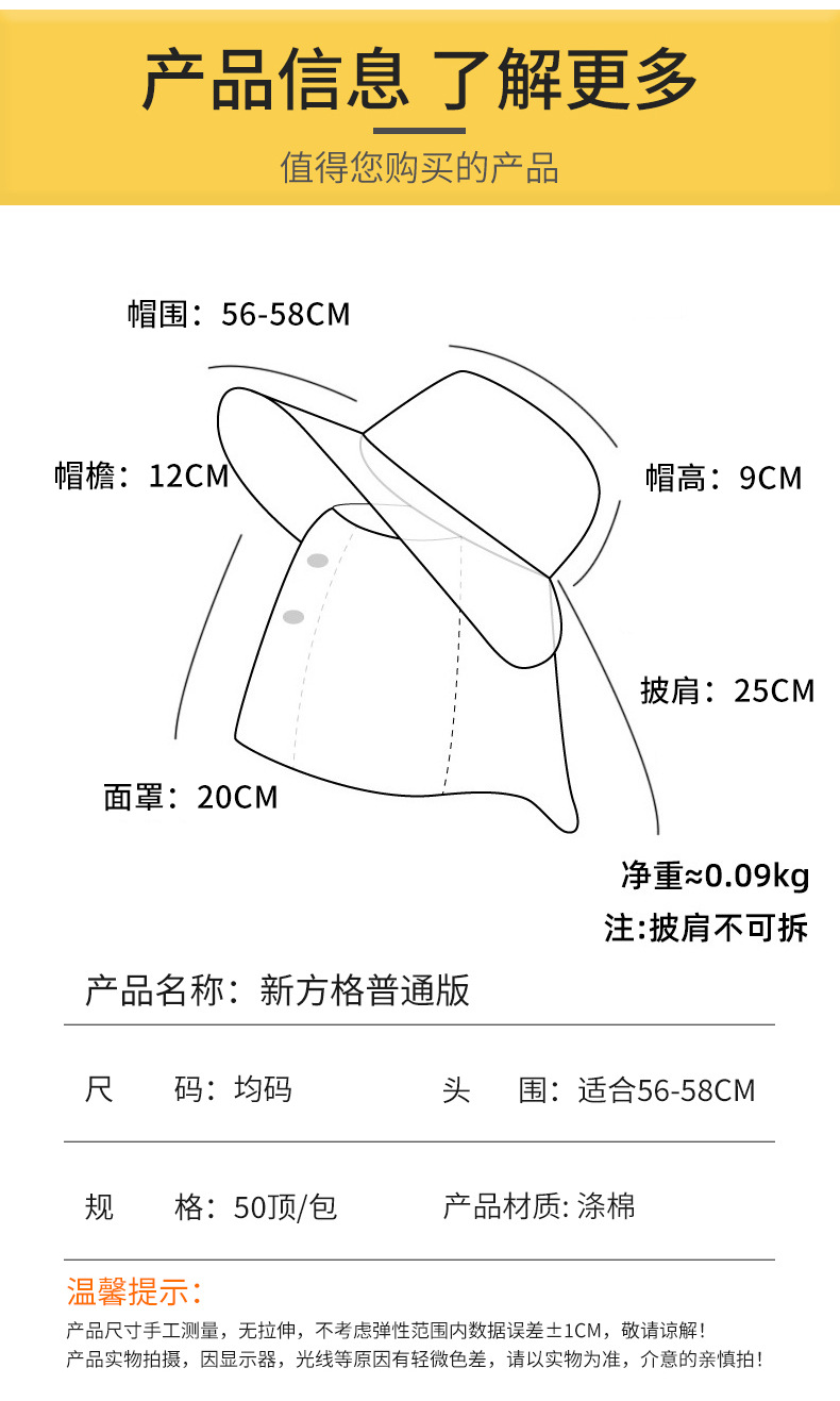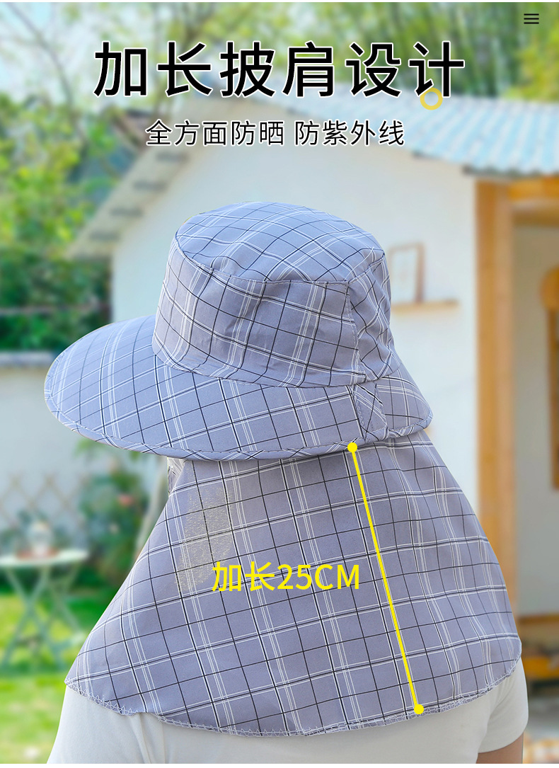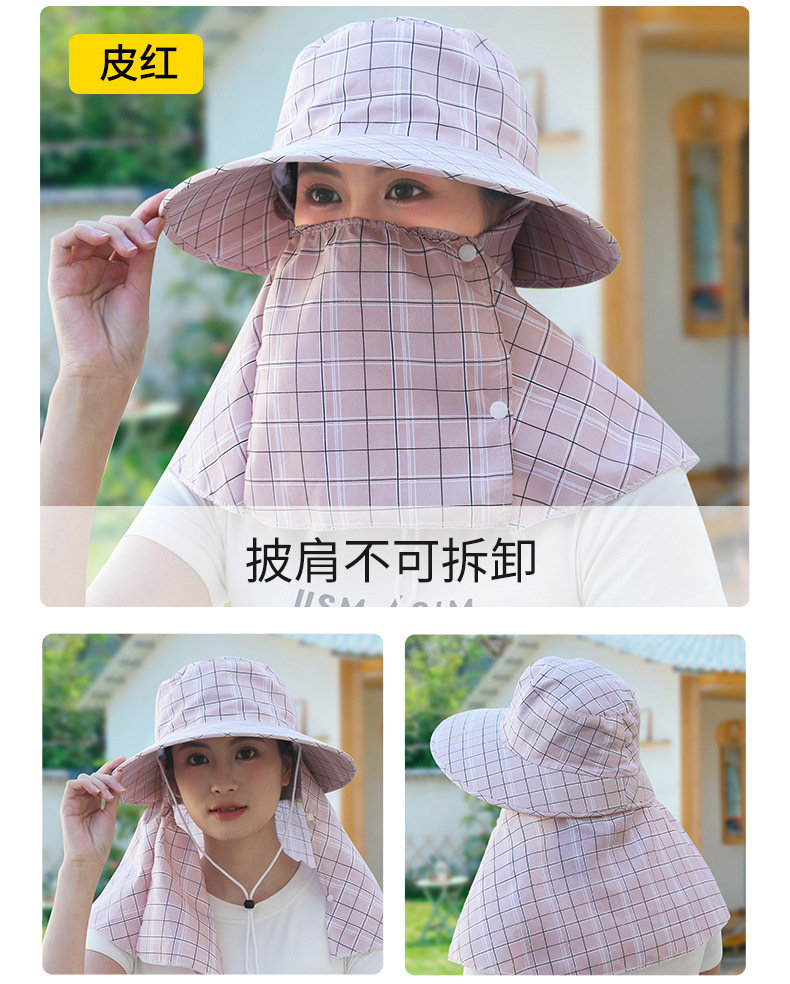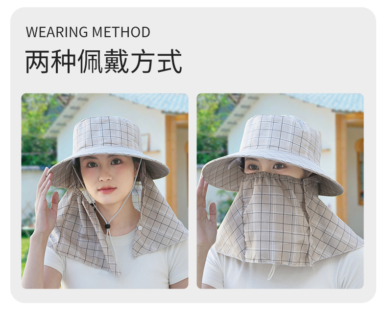 遮阳帽女式防晒防护帽子夏季大沿骑车帽遮脸护颈采茶帽干活太阳帽