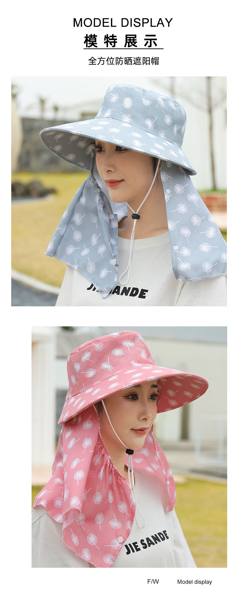 帽子女夏季大檐遮阳帽遮脸户外防紫外线太阳帽下地骑车采茶防晒帽