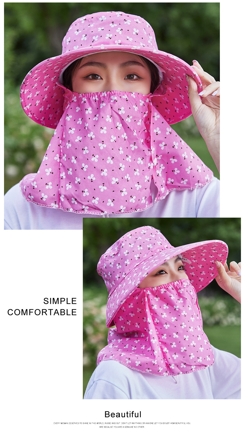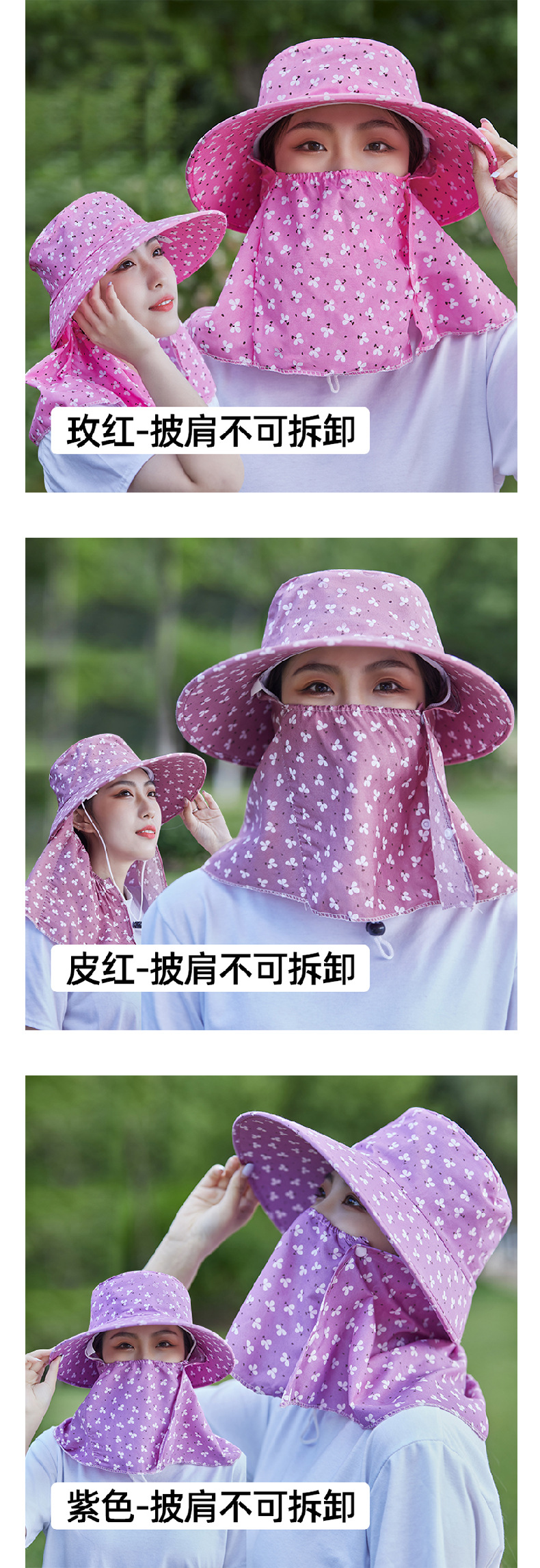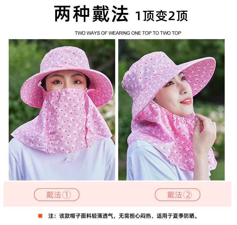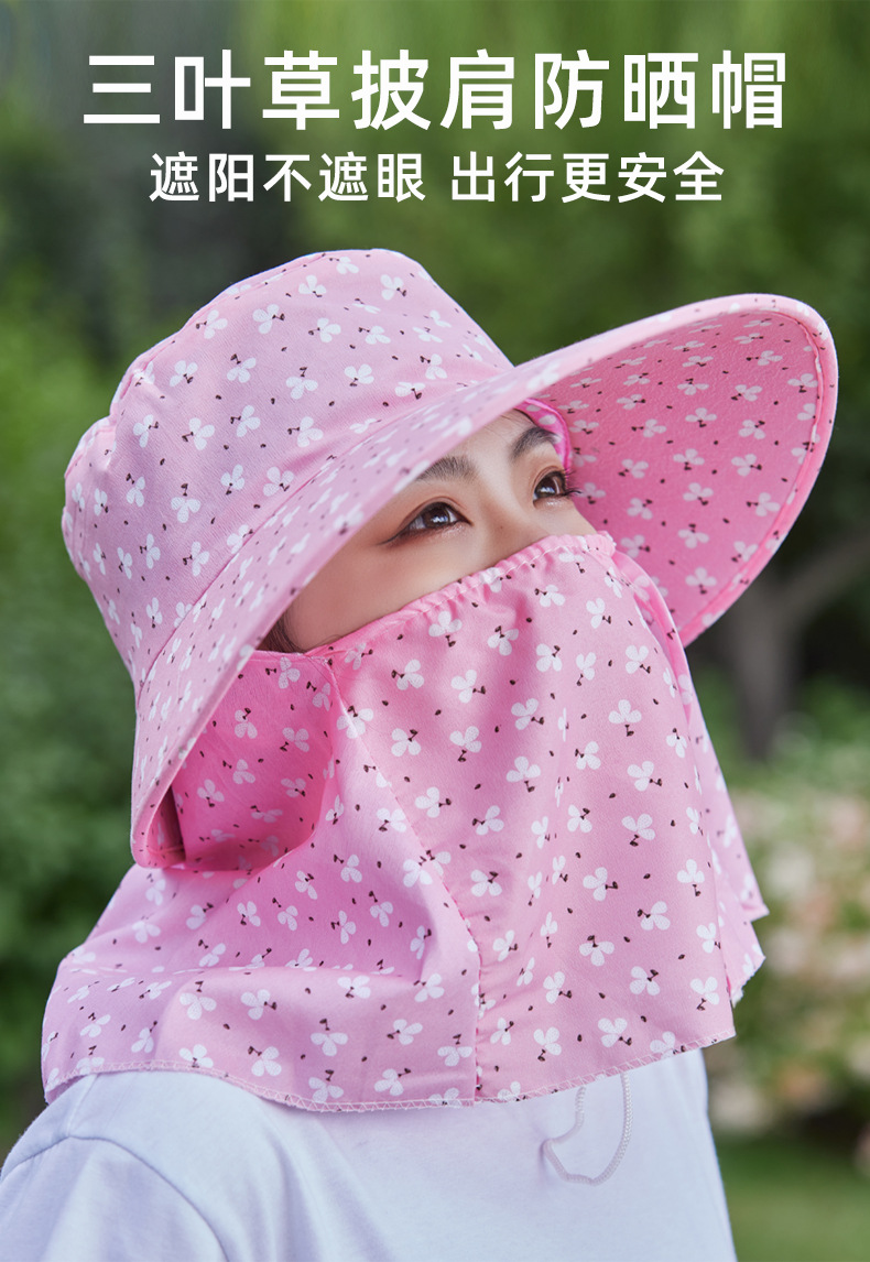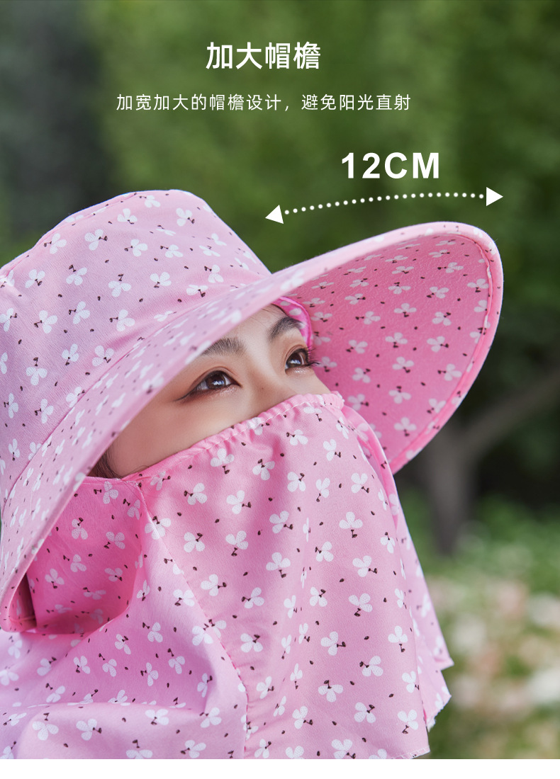 夏季帽子遮脸护颈太阳帽干农活凉帽防紫外线防晒帽采茶骑车遮阳帽