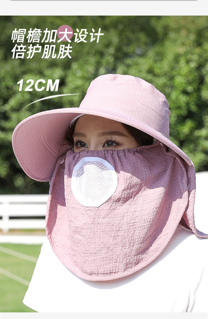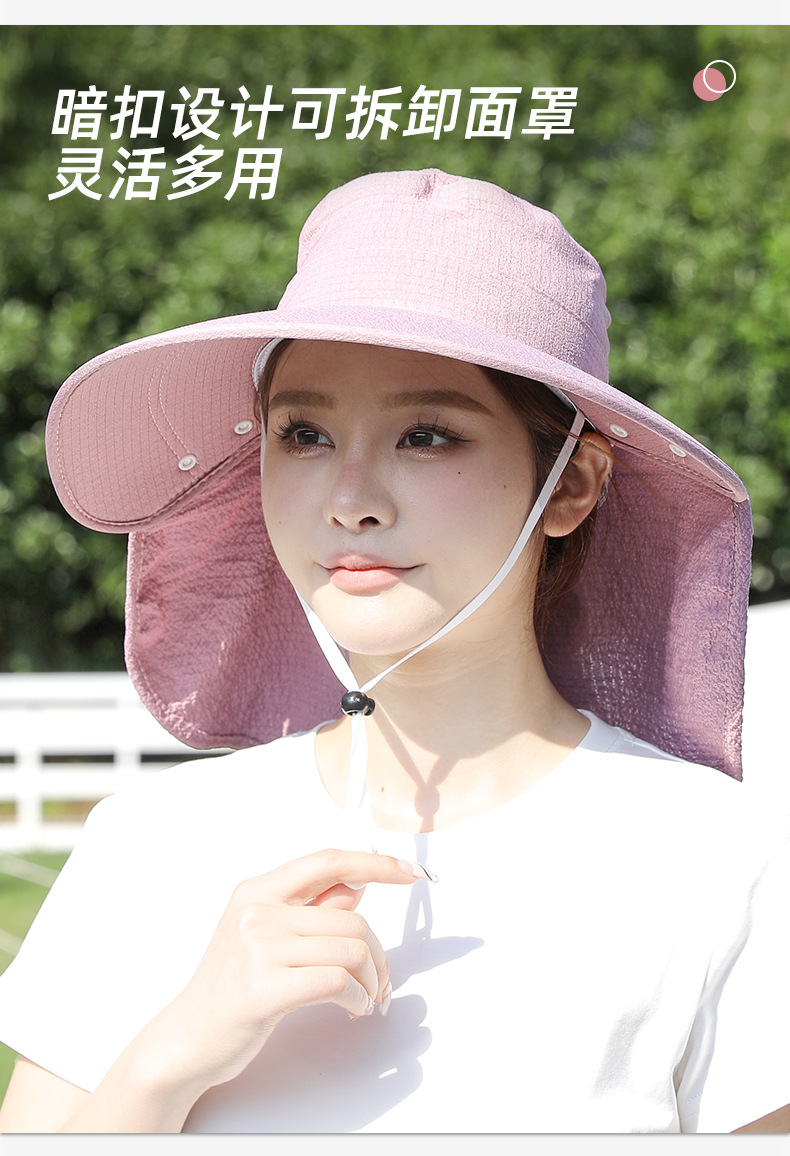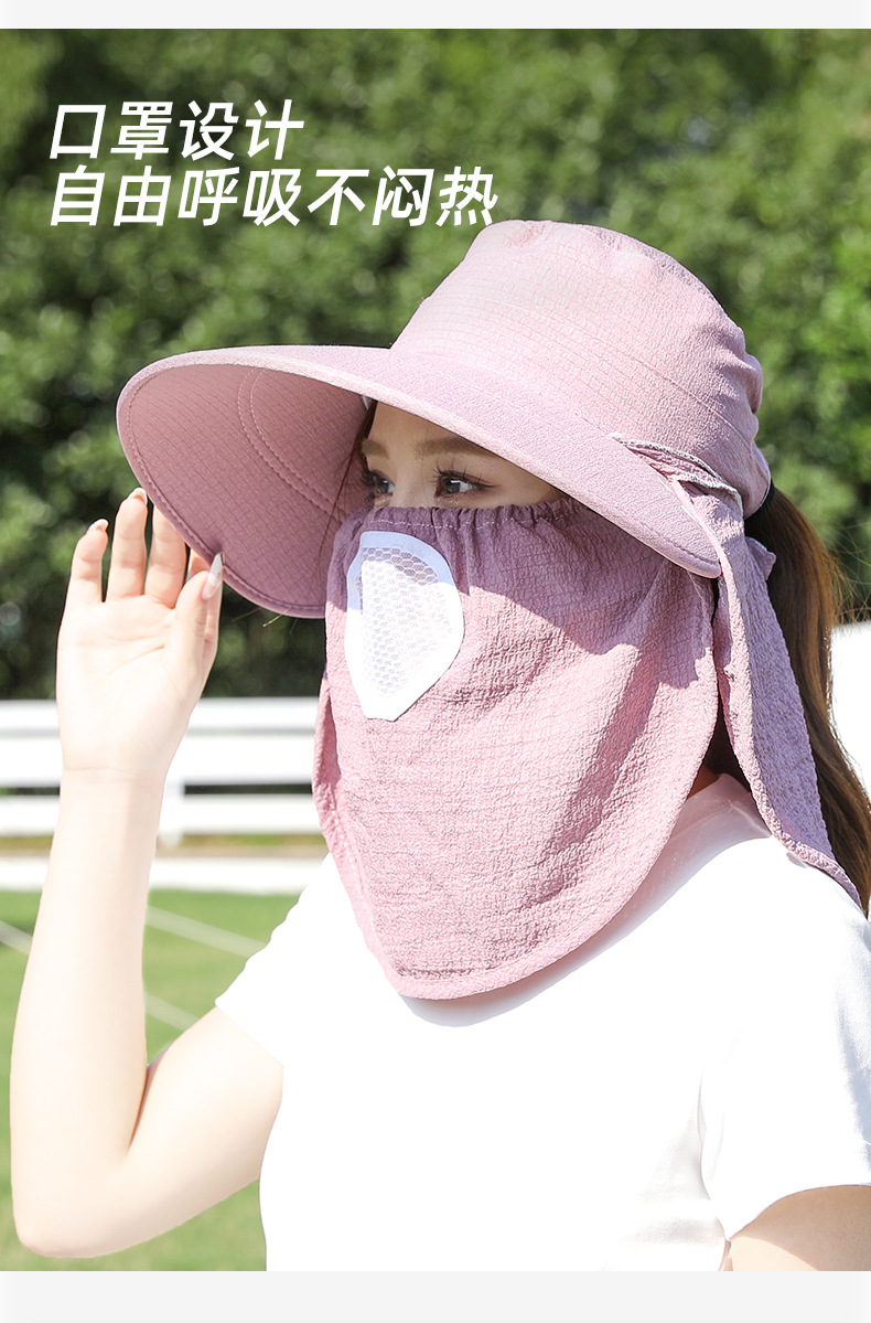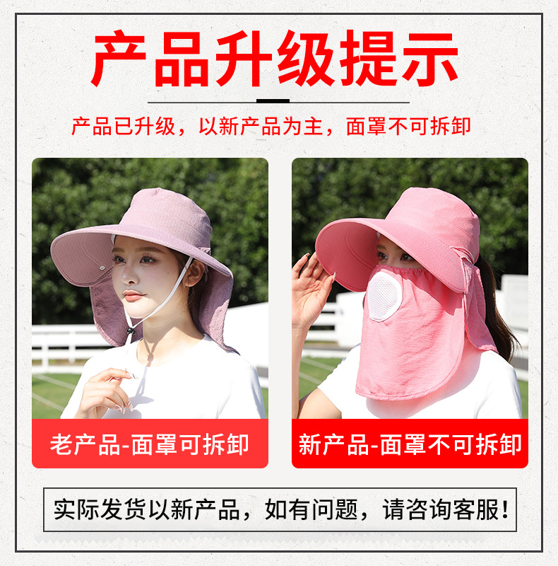 大沿遮阳帽遮脸面罩户外防晒防紫外线骑车夏季太阳帽凉帽采茶帽子