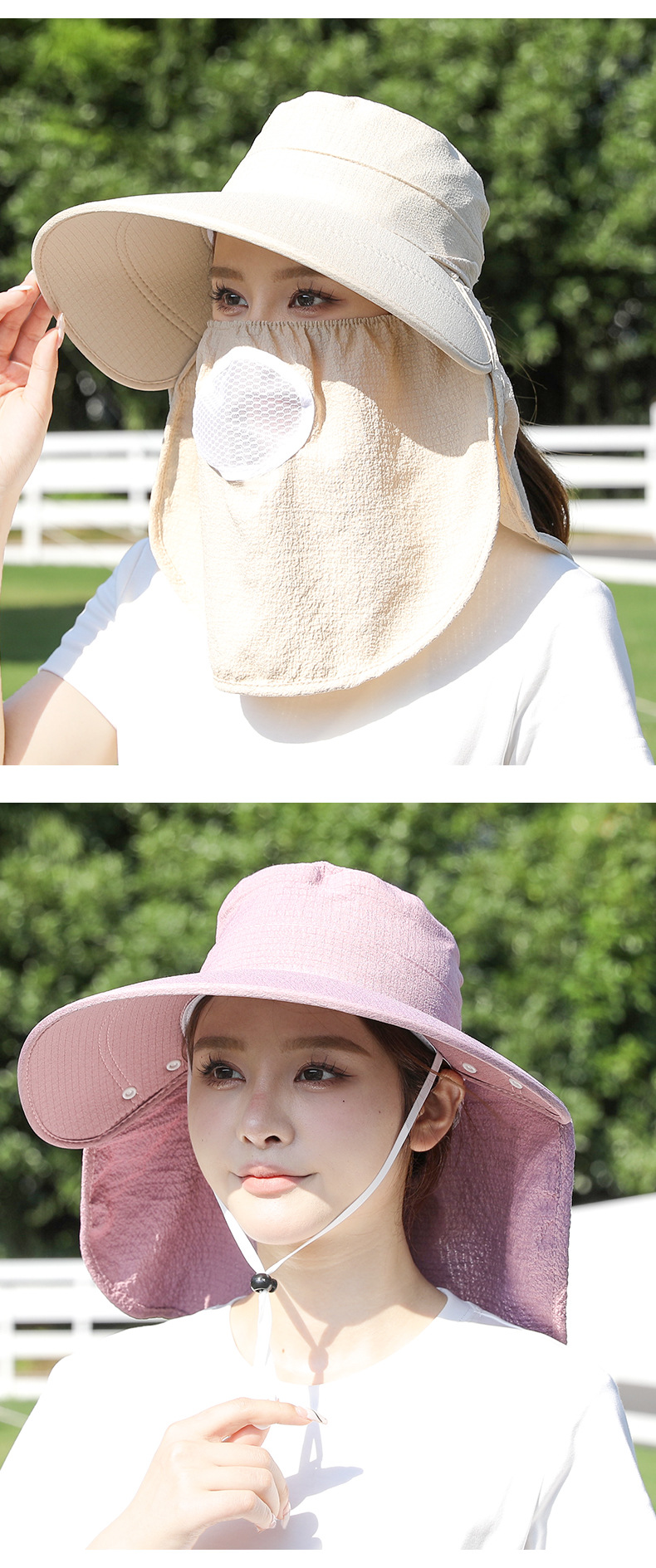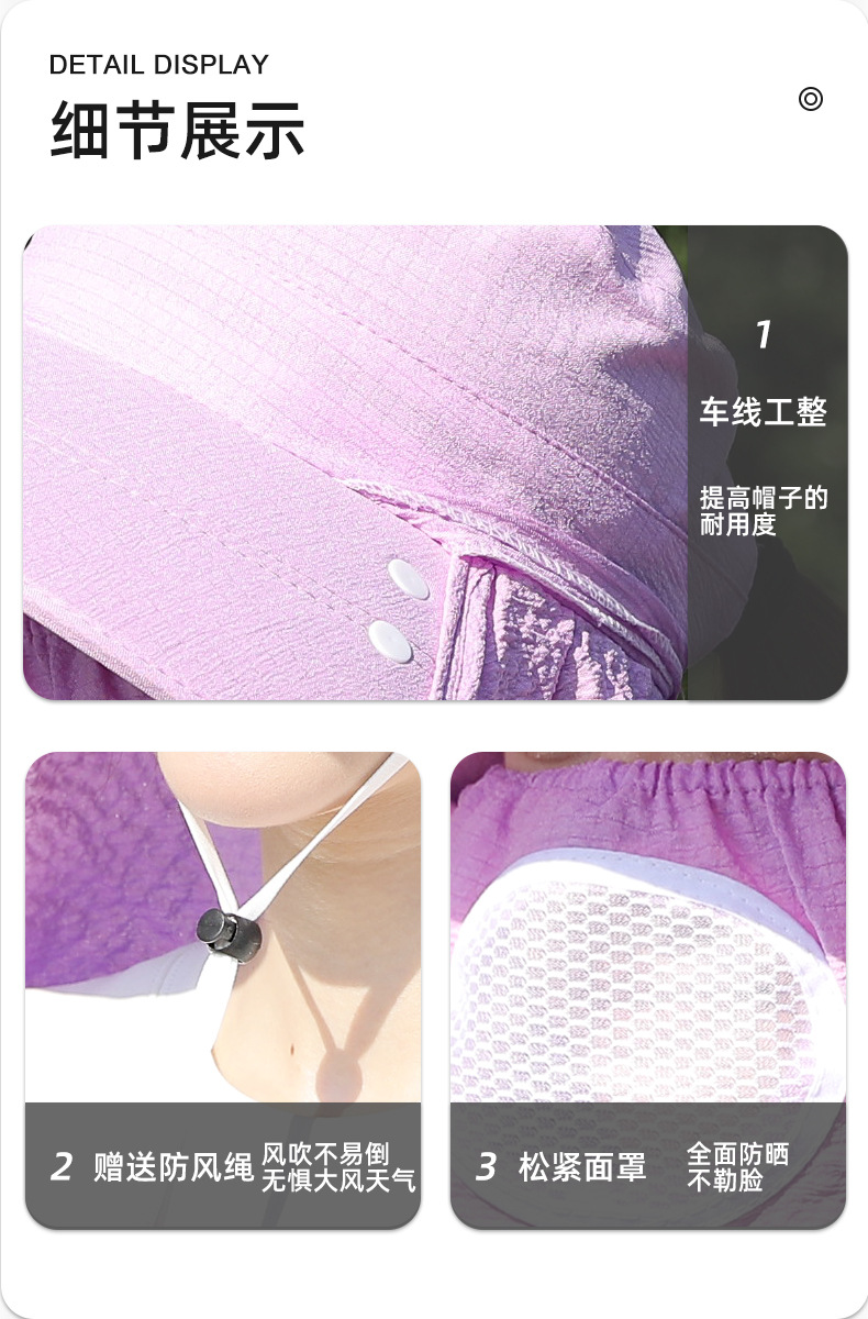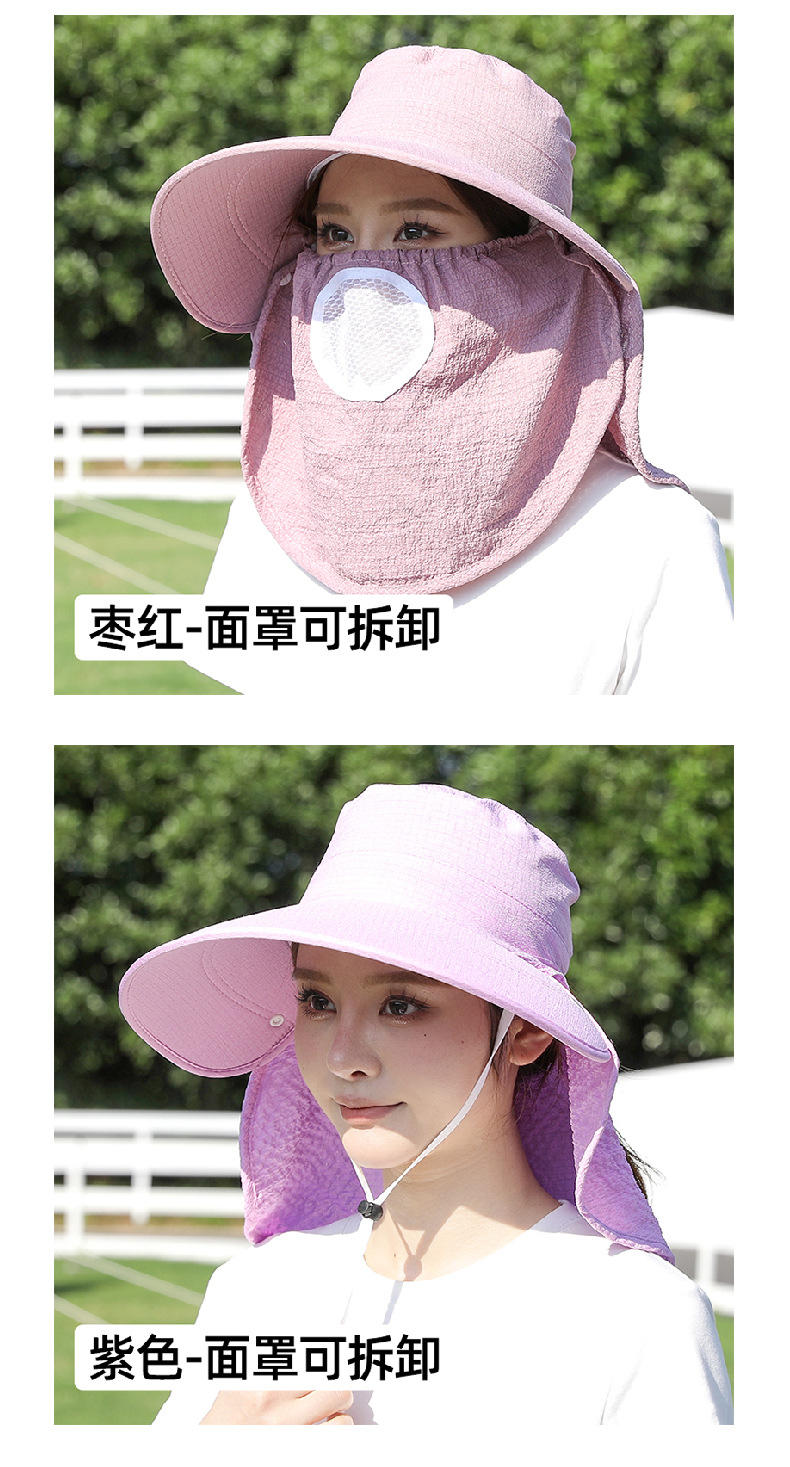 大沿遮阳帽遮脸面罩户外防晒防紫外线骑车夏季太阳帽凉帽采茶帽子