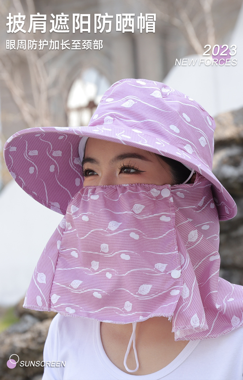 防晒帽女夏季防紫外线遮脸太阳帽子户外农耕采茶帽沙滩大檐遮阳帽