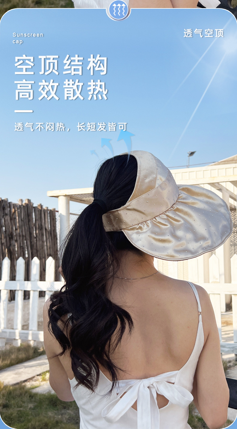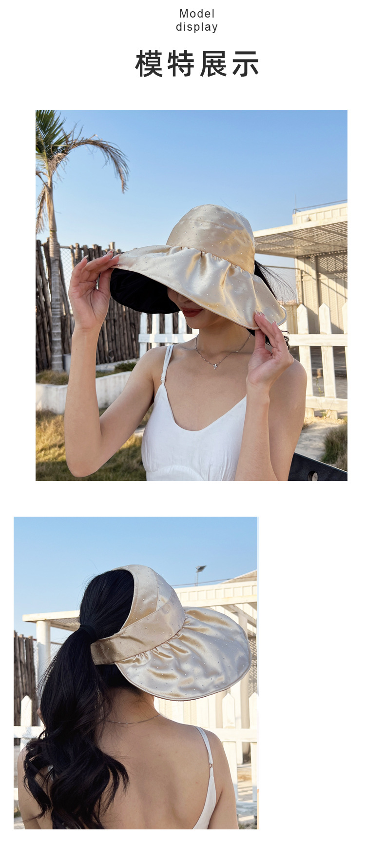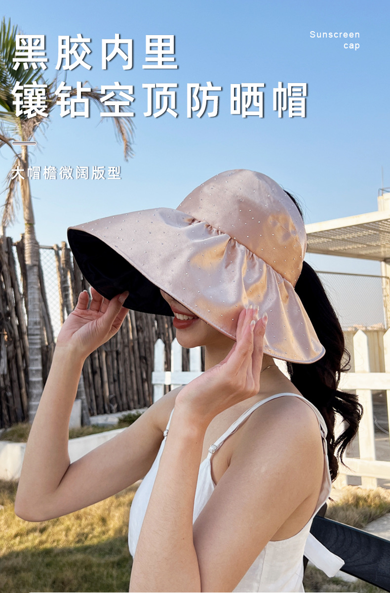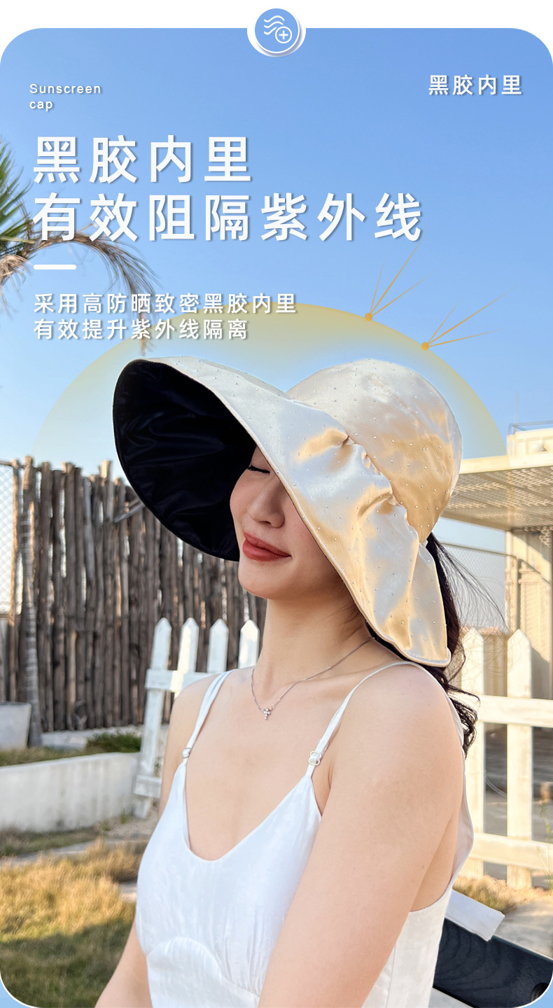 夏季帽子女黑胶防晒帽可折叠沙滩帽户外防紫外线大檐遮阳帽空顶帽