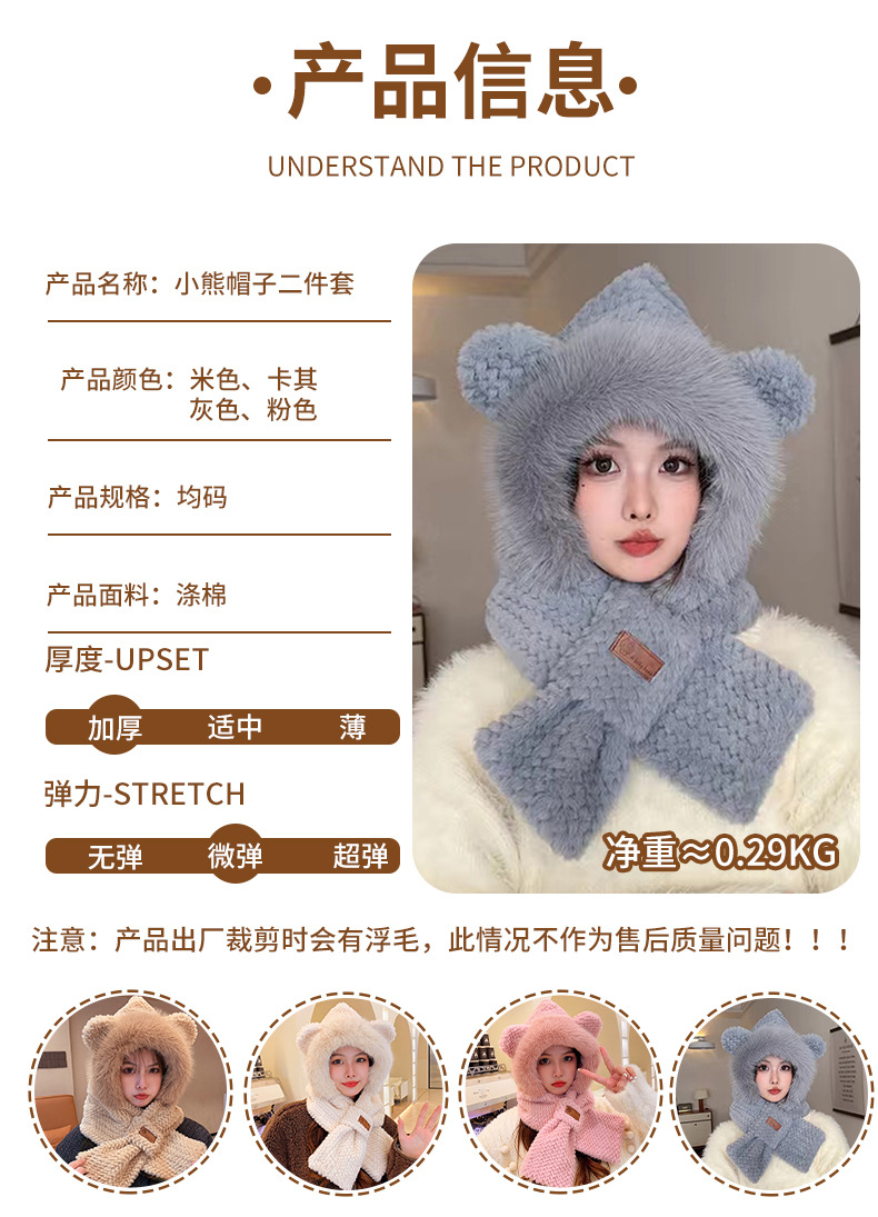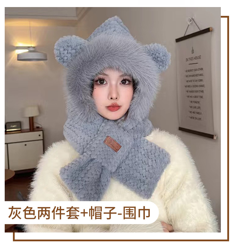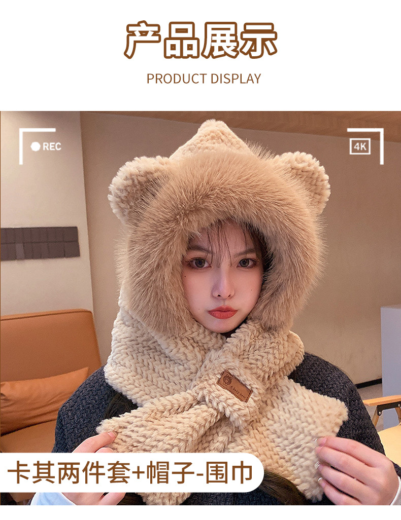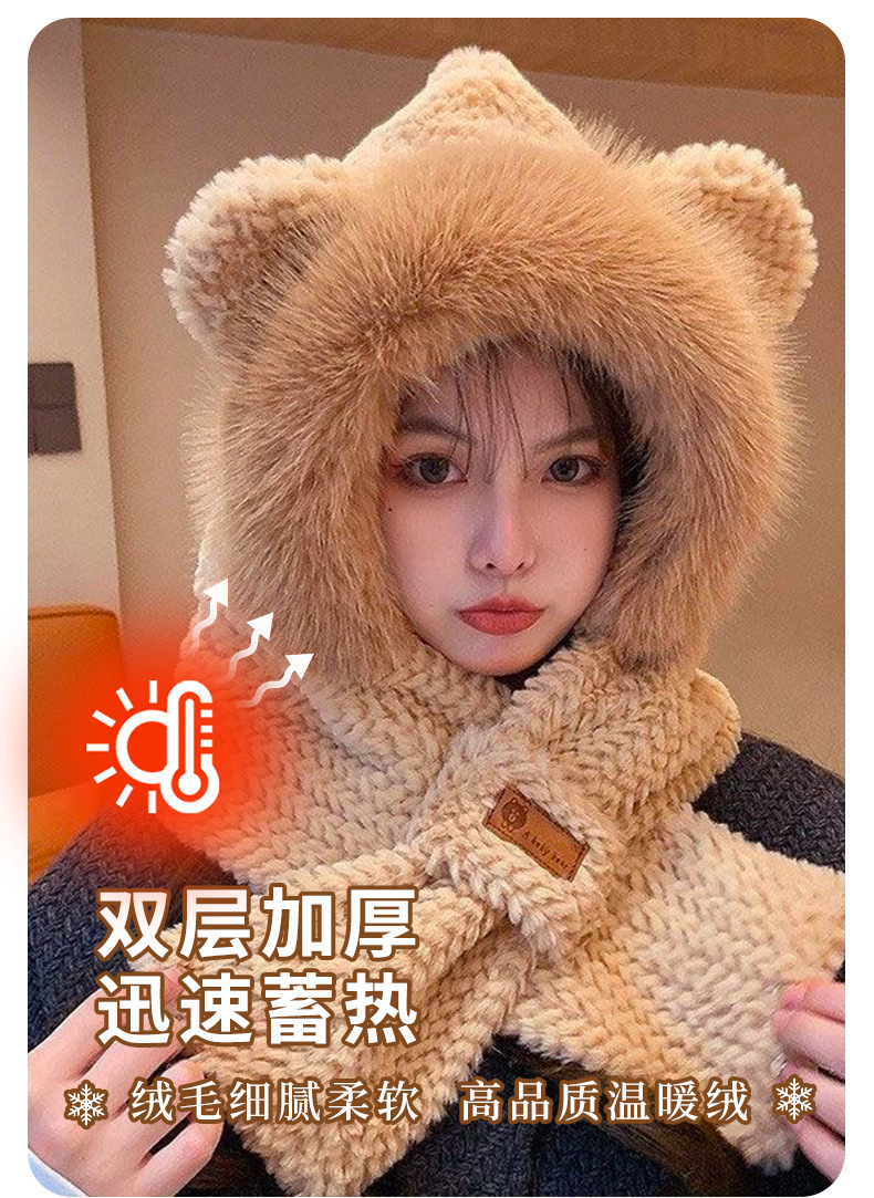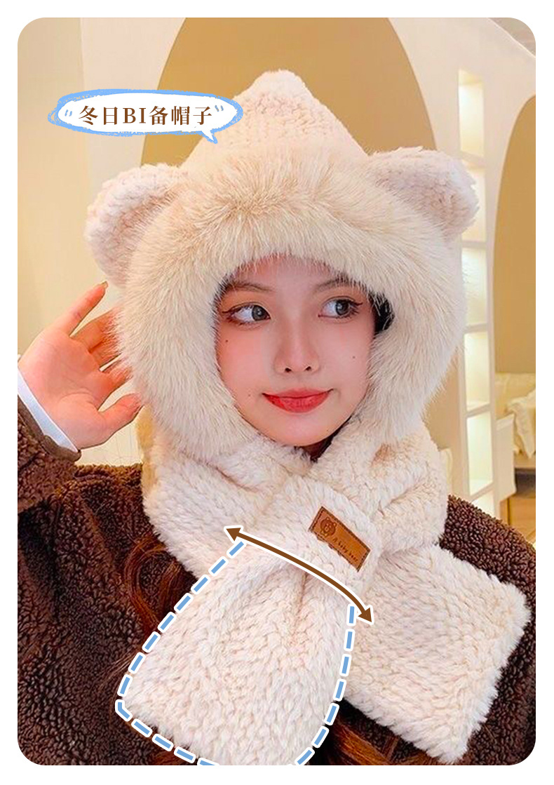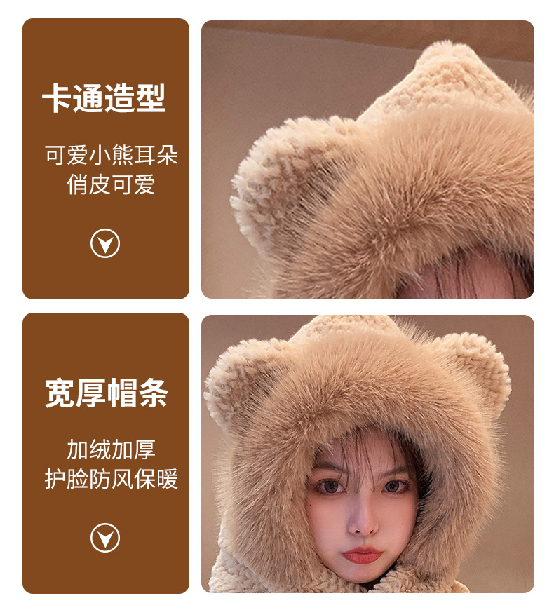 帽子女冬季防风加厚保暖包头护耳骑车帽网红帽子围巾一体两件套帽
