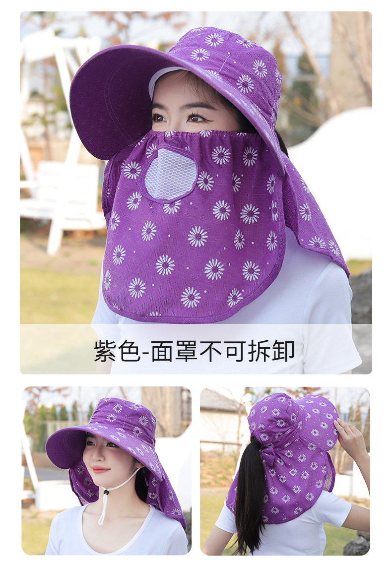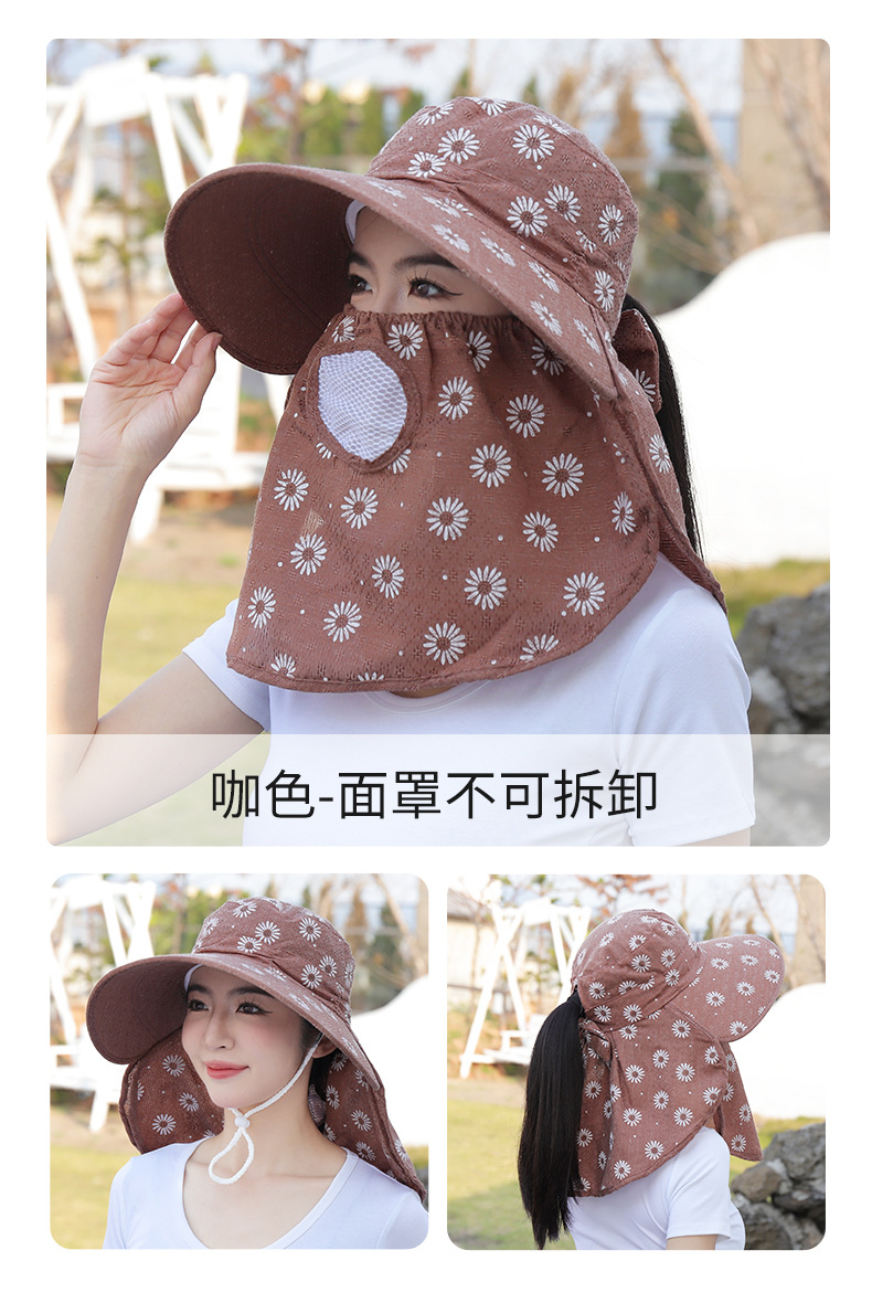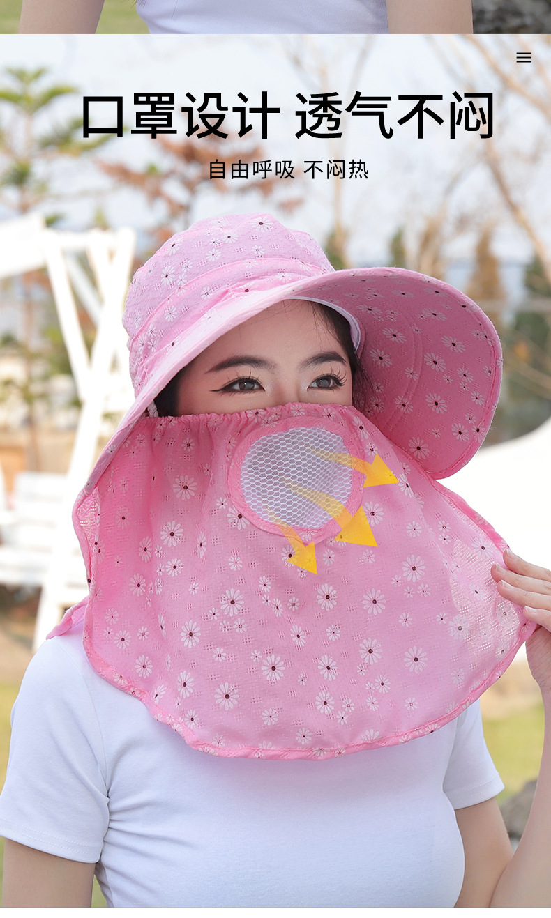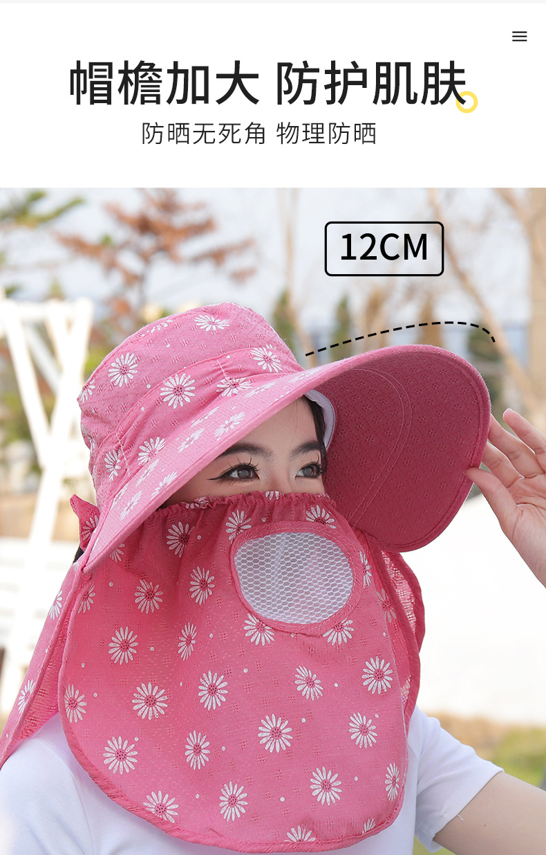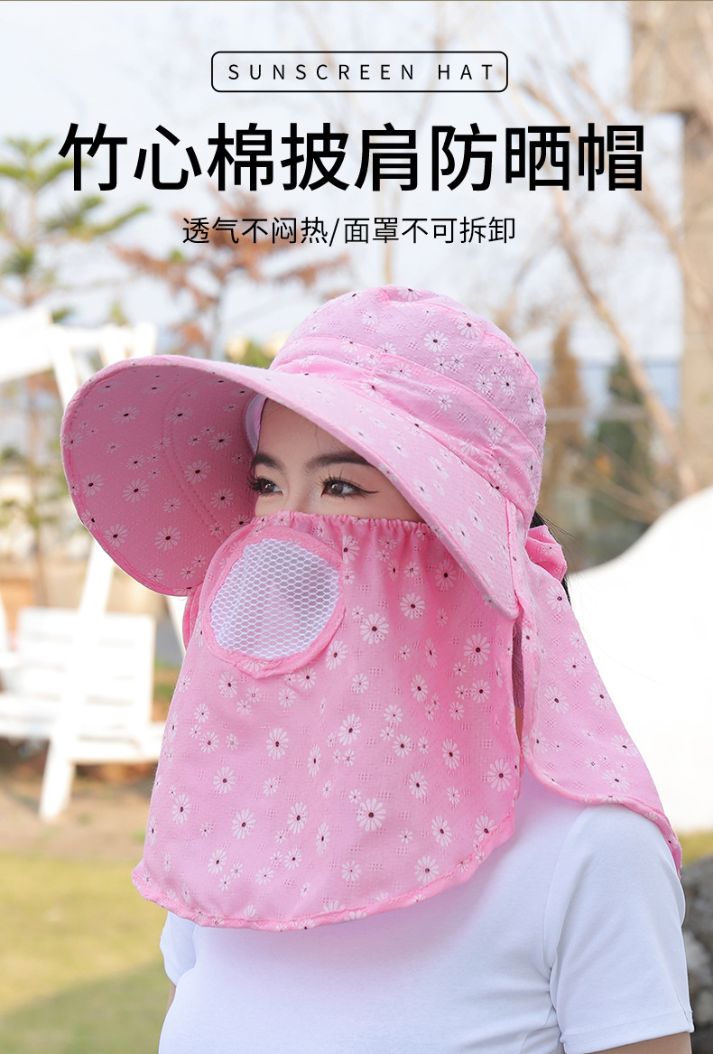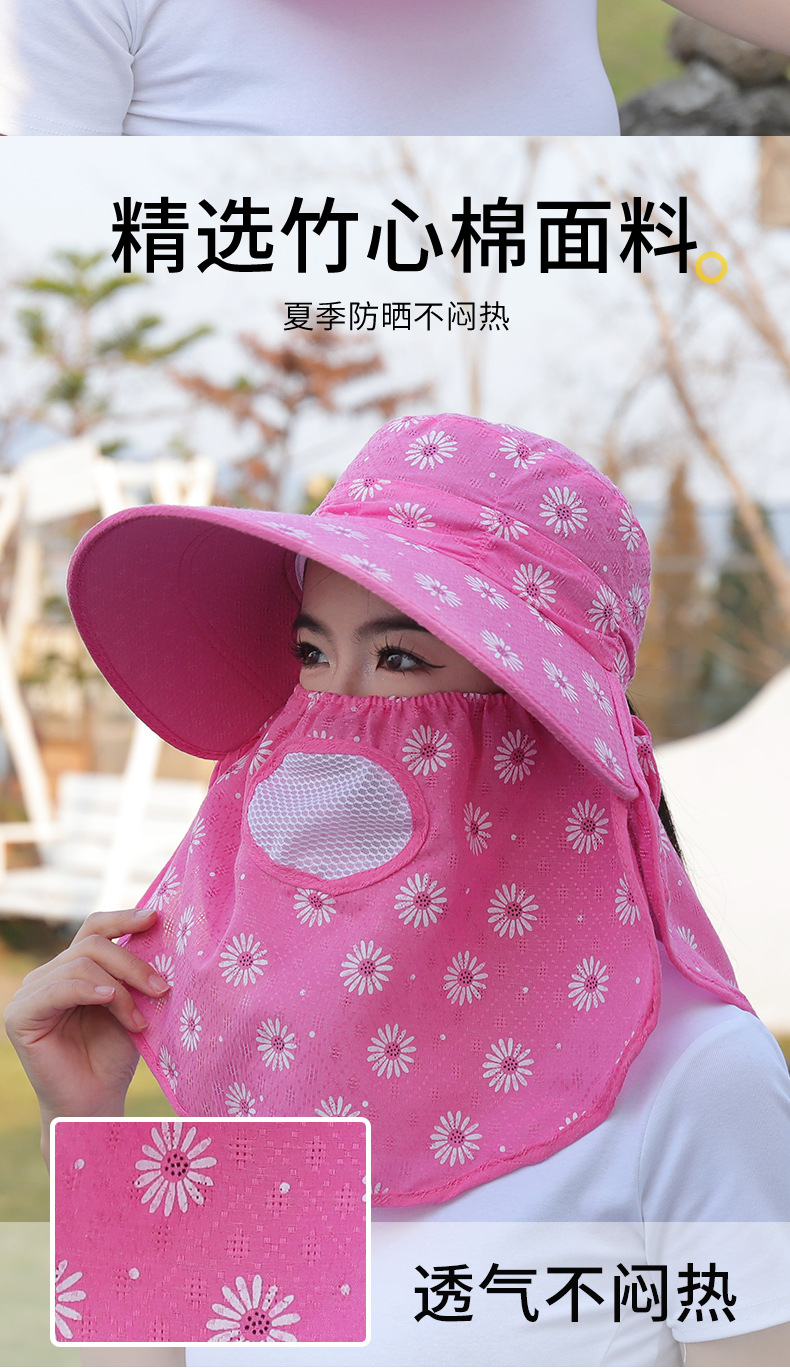 批发采茶帽女夏季大沿帽户外防晒帽干活全脸护脖太阳帽透气面罩帽