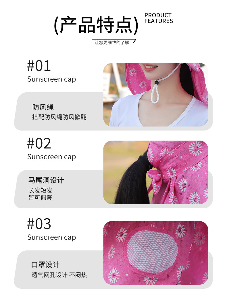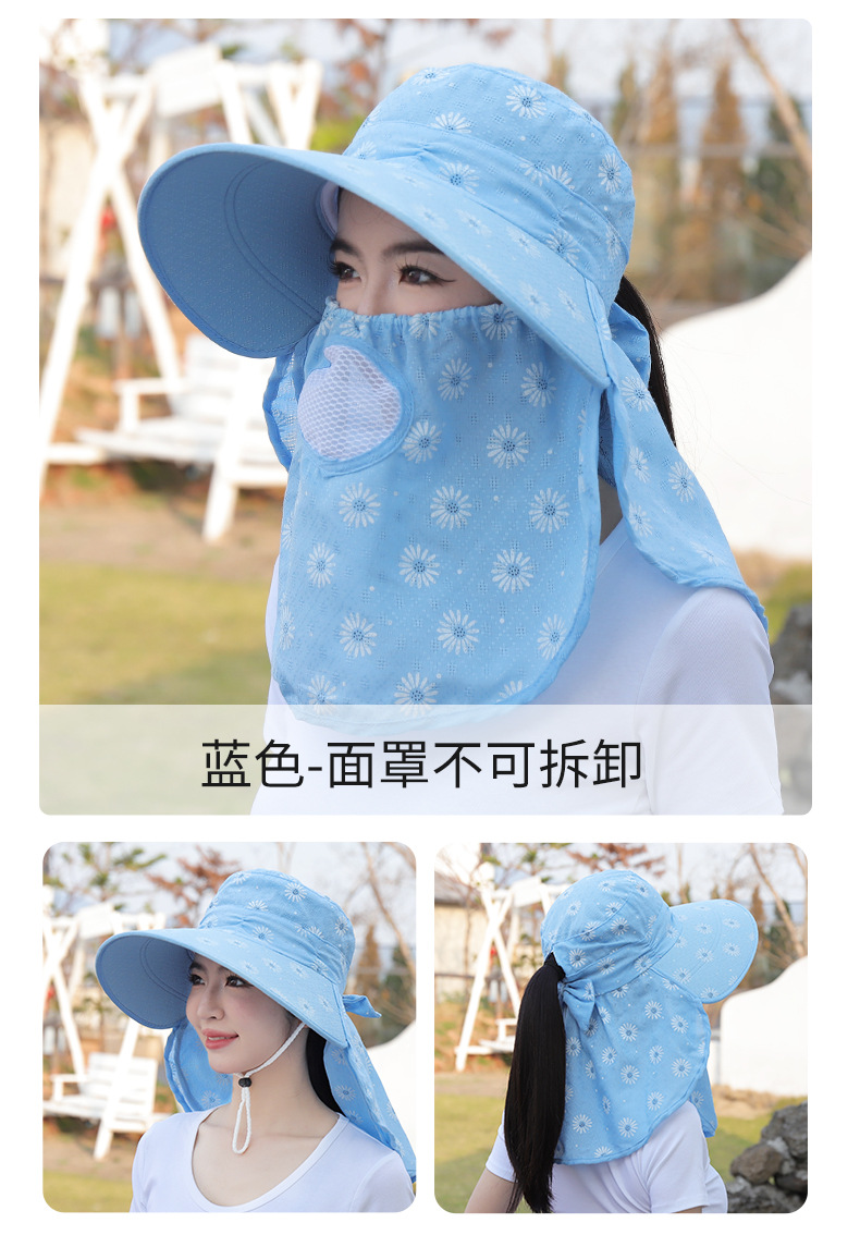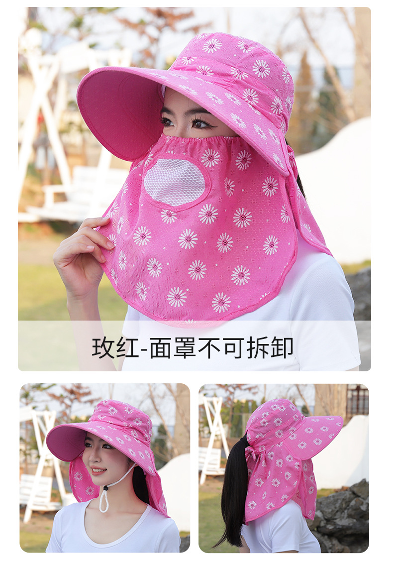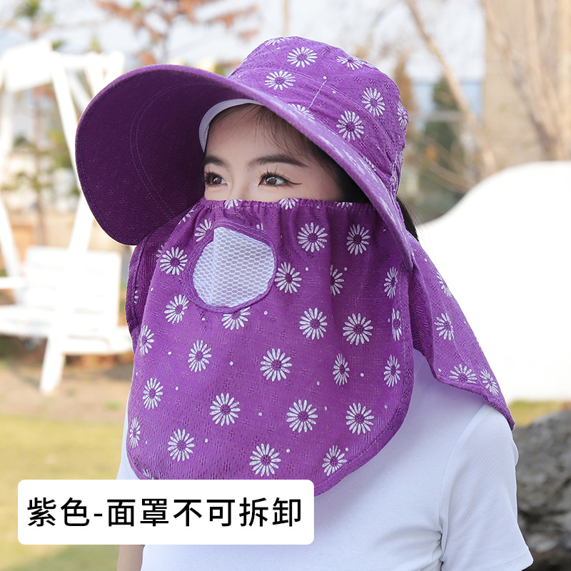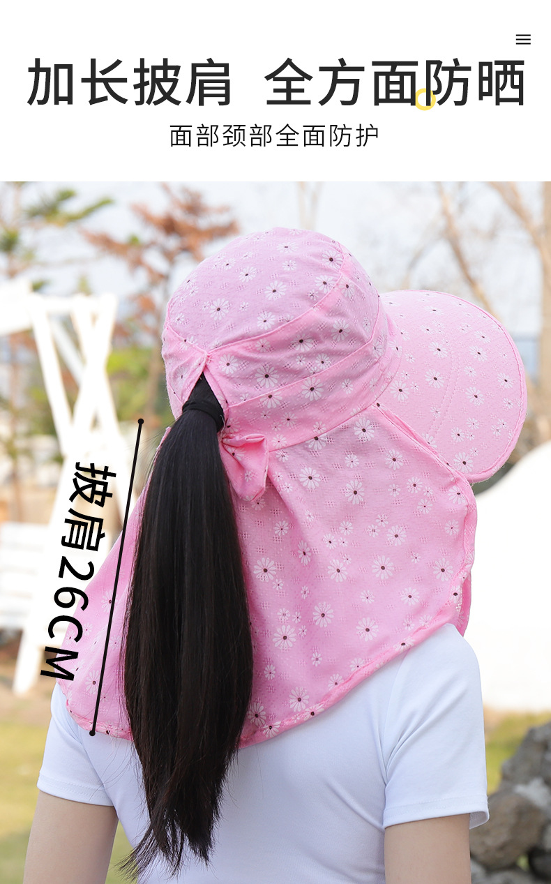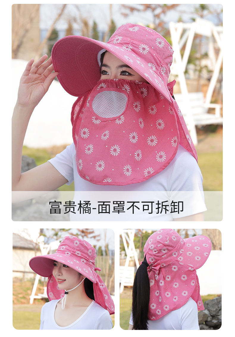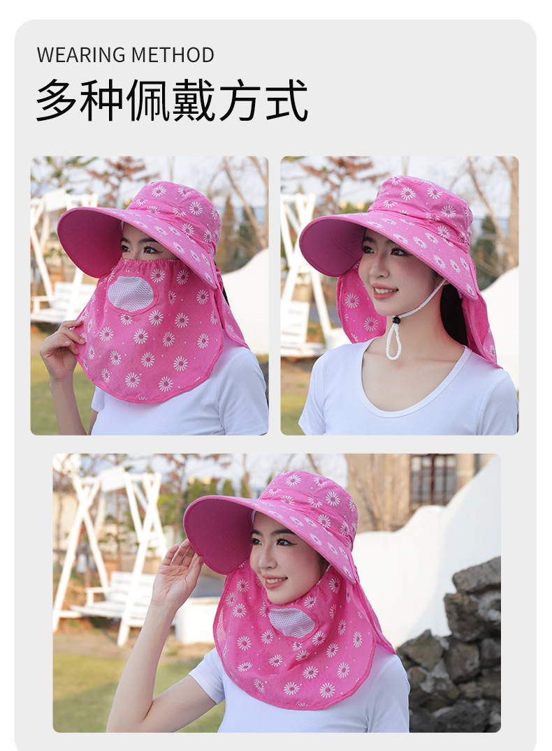 批发采茶帽女夏季大沿帽户外防晒帽干活全脸护脖太阳帽透气面罩帽