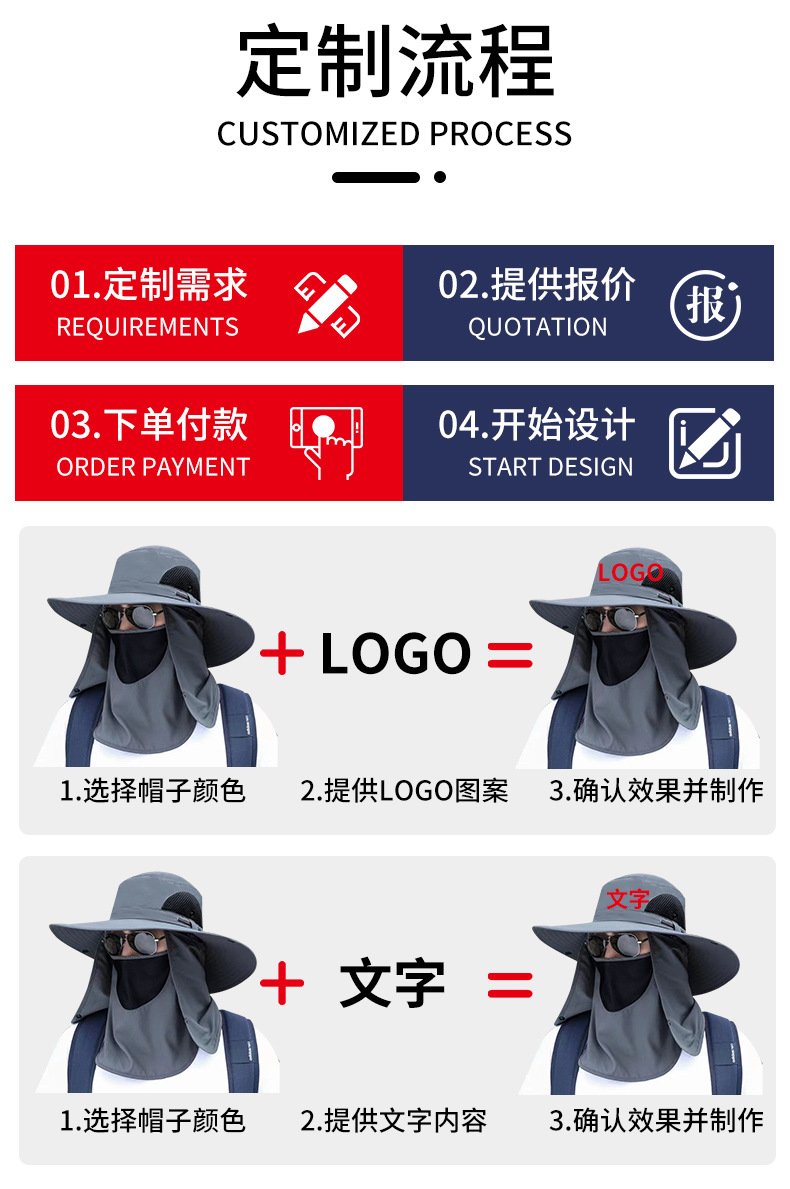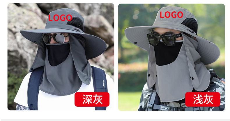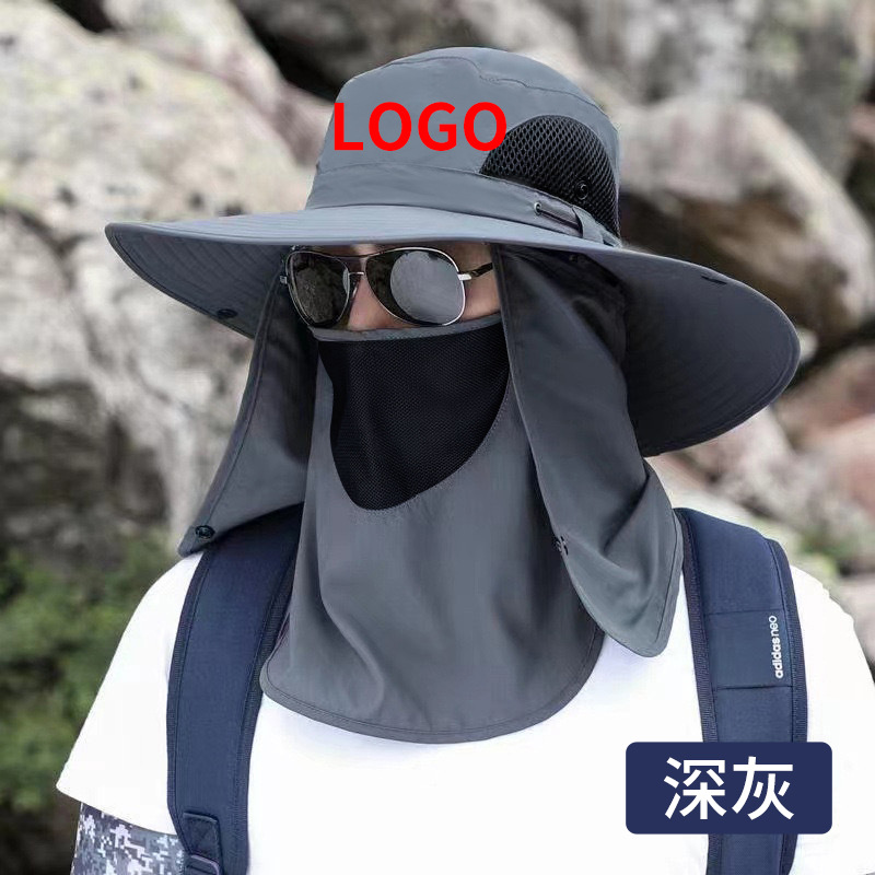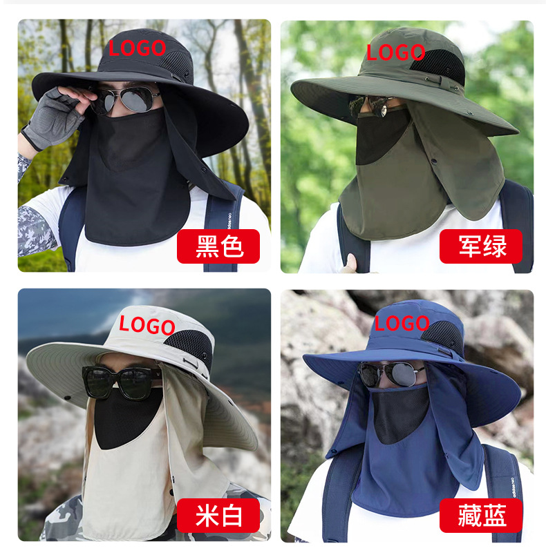 厂家印字男防晒帽可拆卸披肩遮阳帽夏季大帽檐logo广告渔夫钓鱼帽