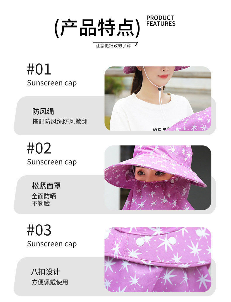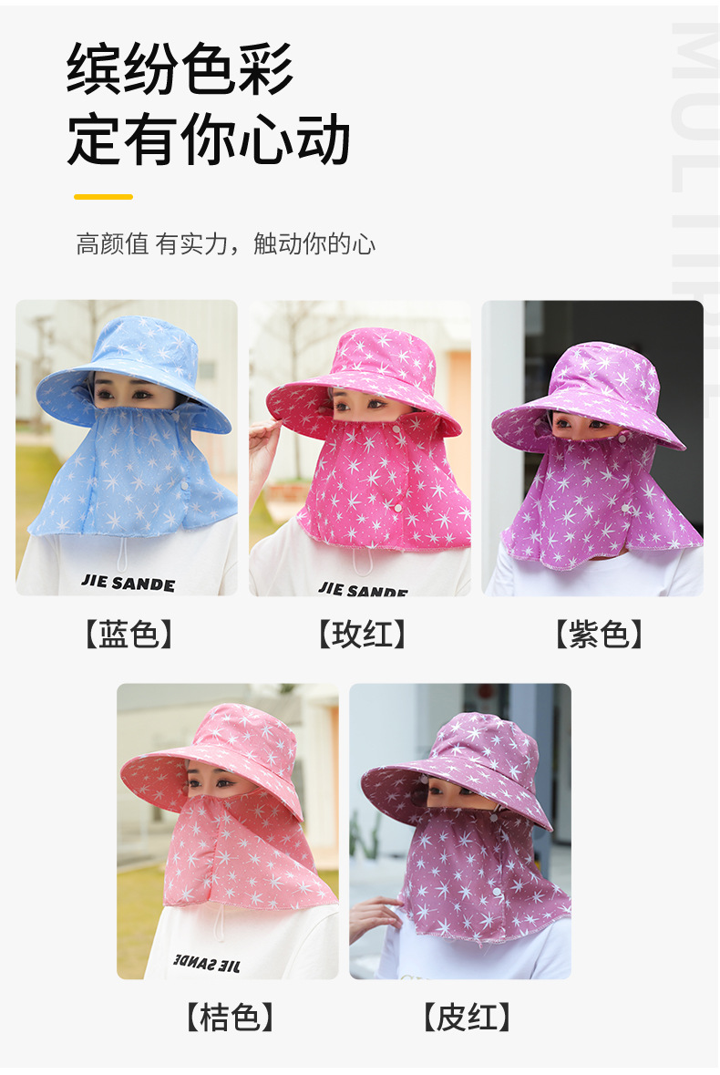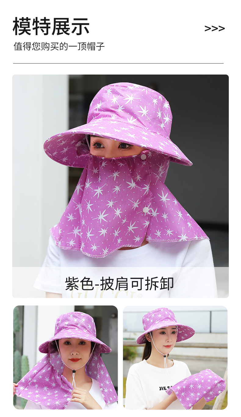 厂家新款遮阳帽女士下地防护披肩帽户外护颈太阳帽批发可拆防晒帽
