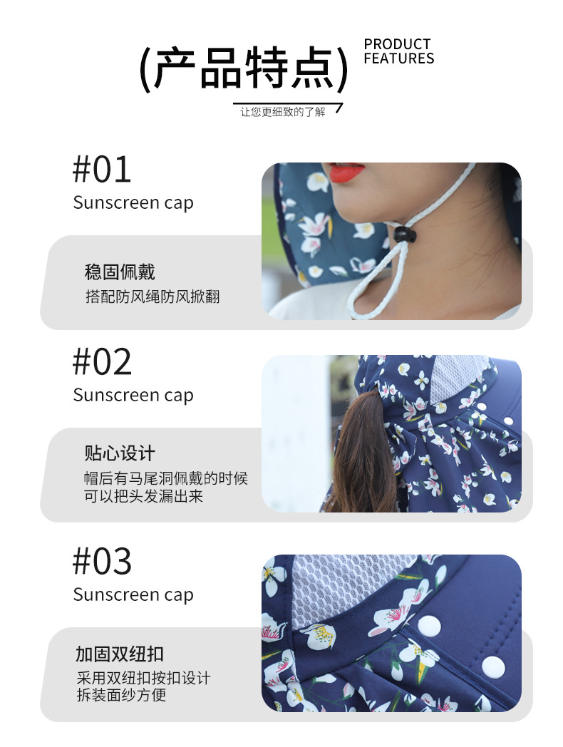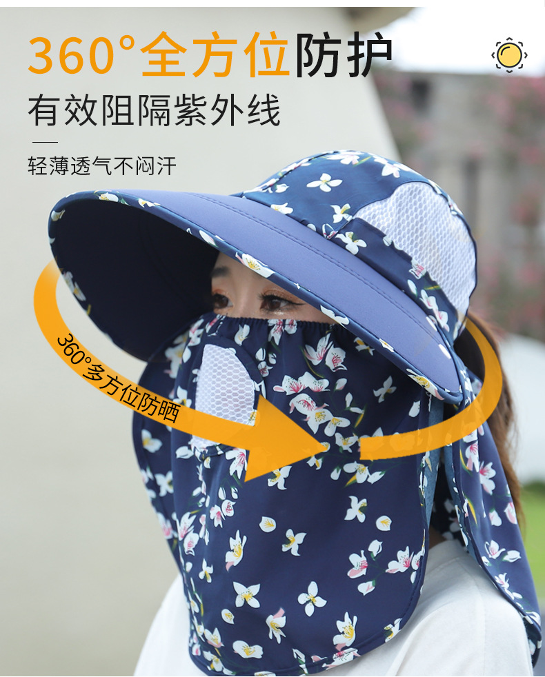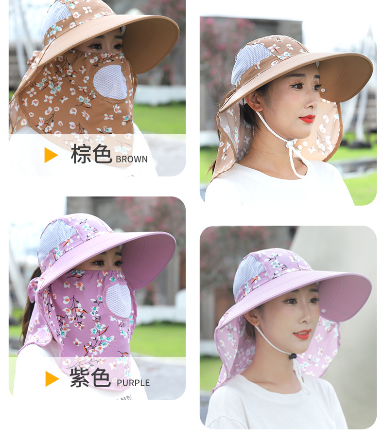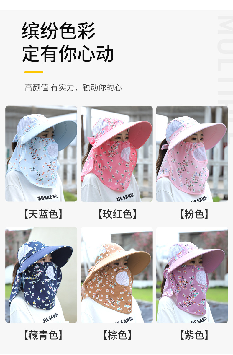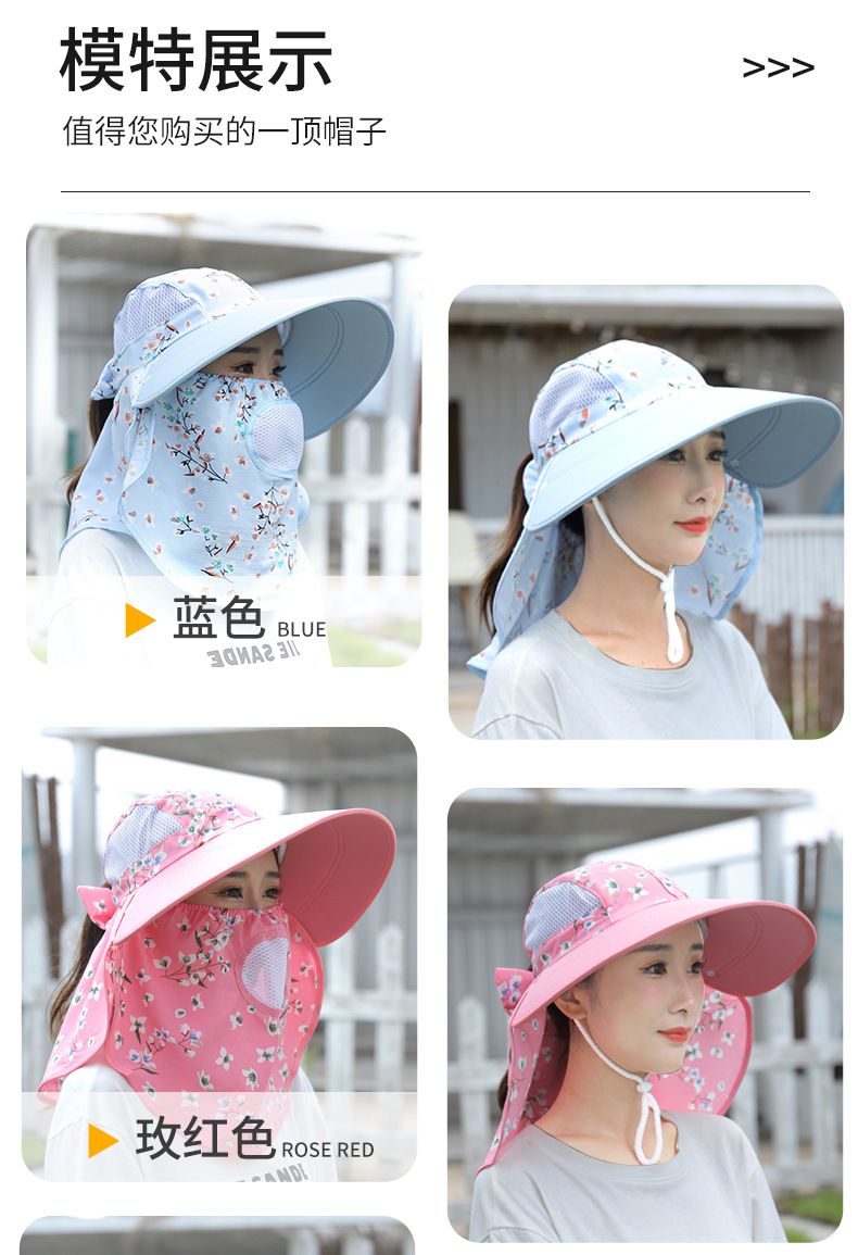 夏季户外沙滩帽防晒可拆遮阳帽子百搭大檐女太阳帽户外干活采茶帽
