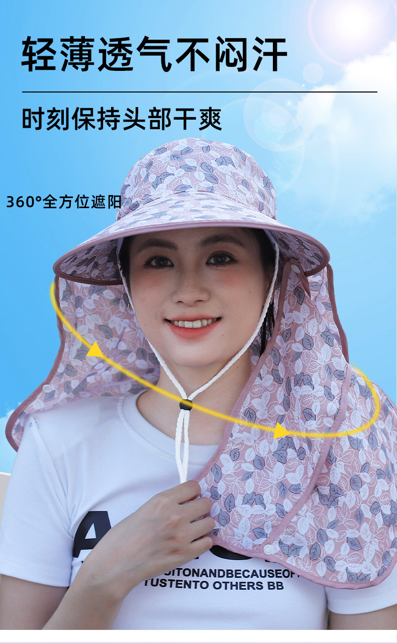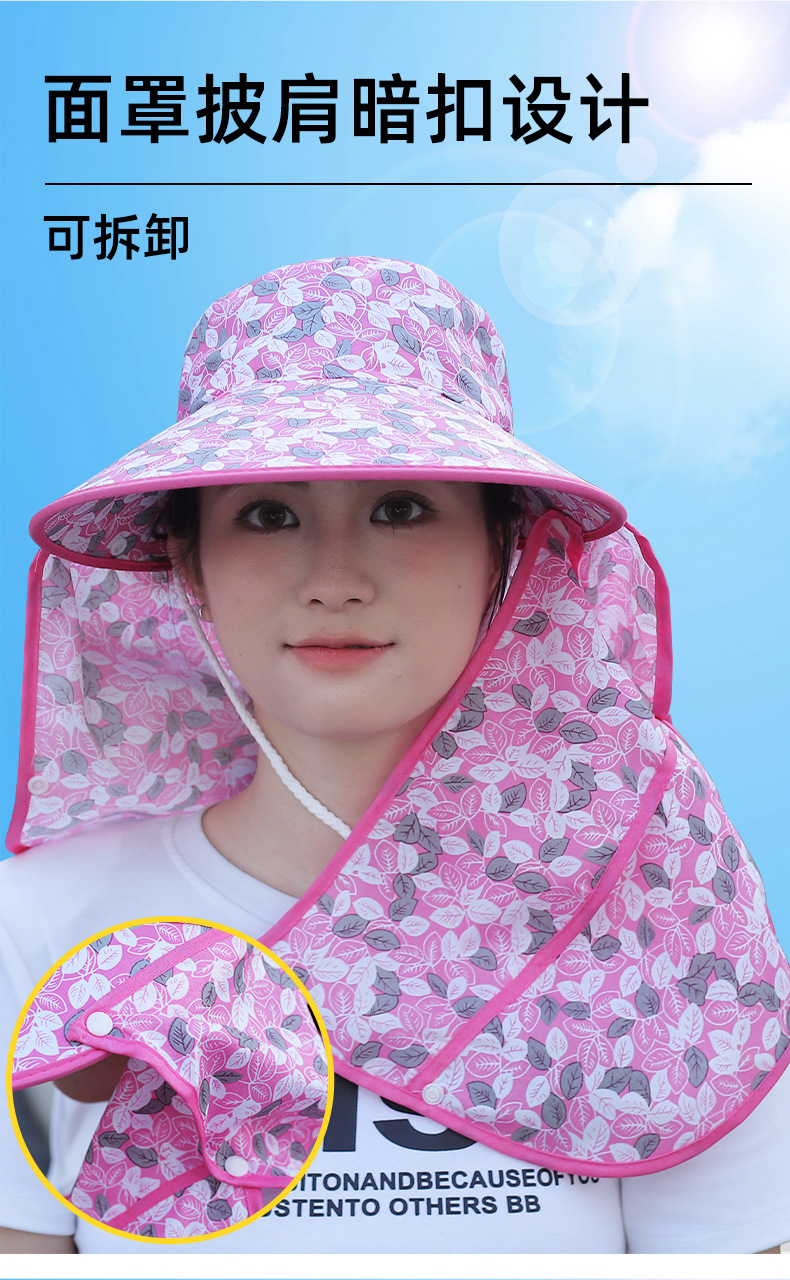 新款披肩可拆卸防晒帽透气速干遮阳帽户外骑行休闲帽干农活采茶帽