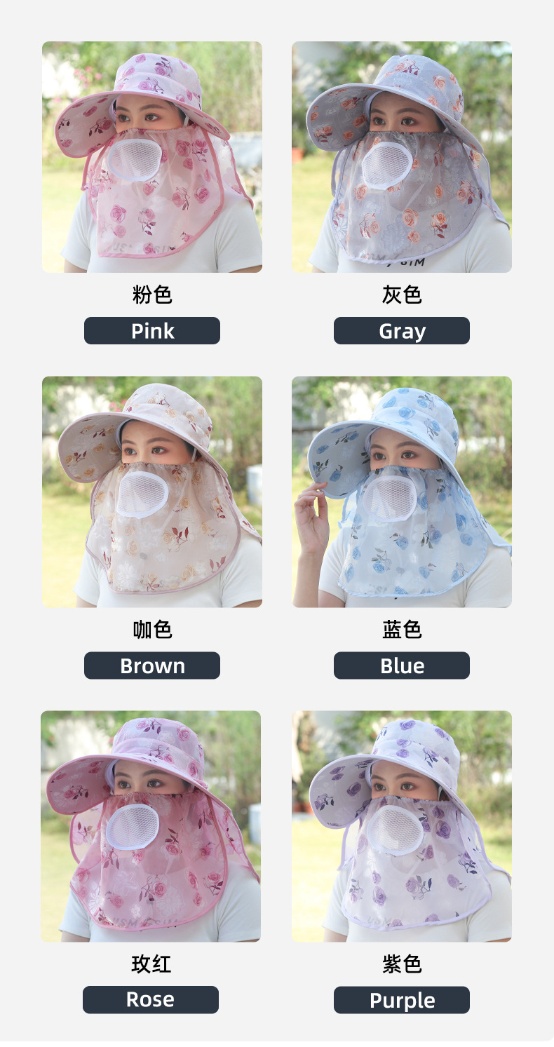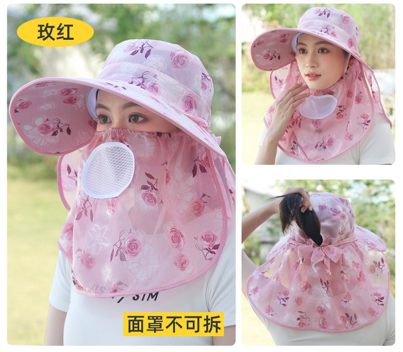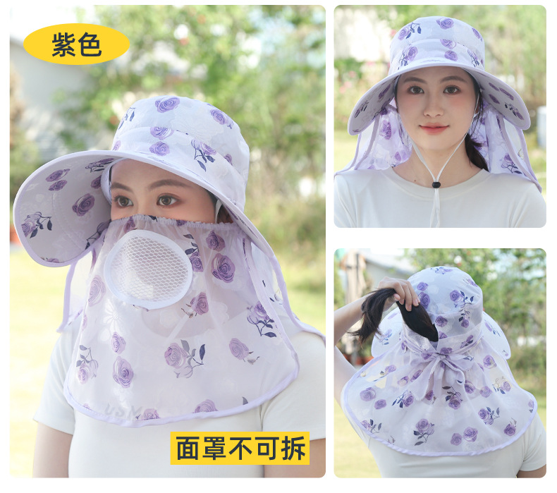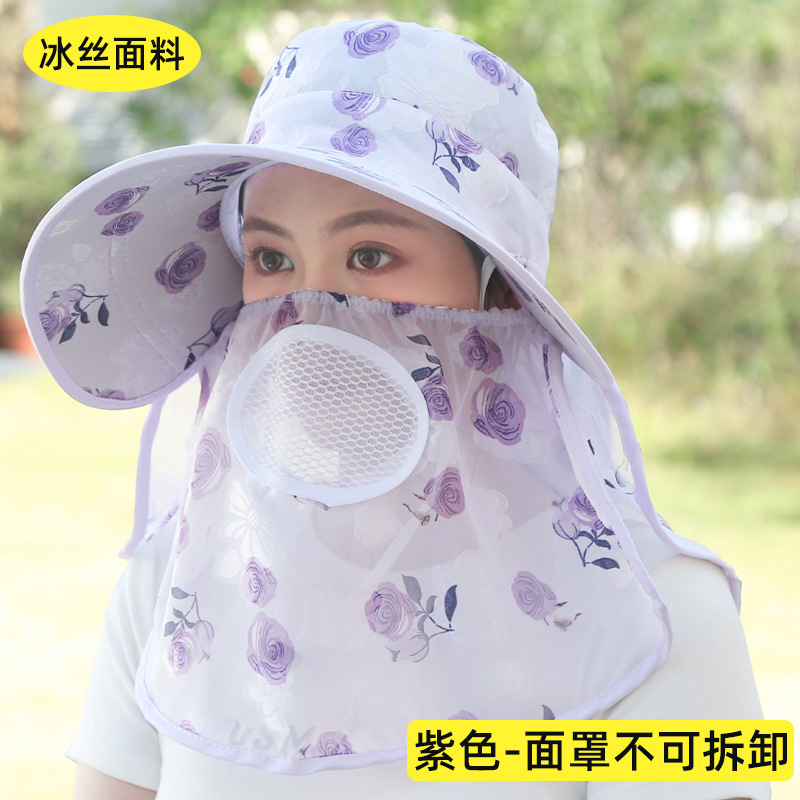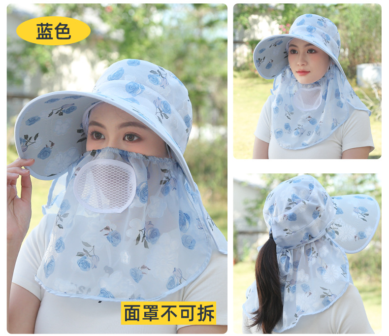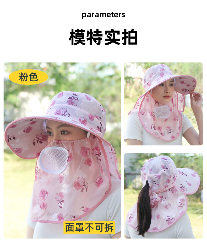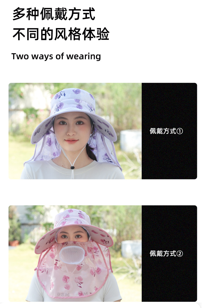 定制防晒遮阳帽洋气档次旅游帽户外骑行太阳帽面罩护颈冰丝采茶帽