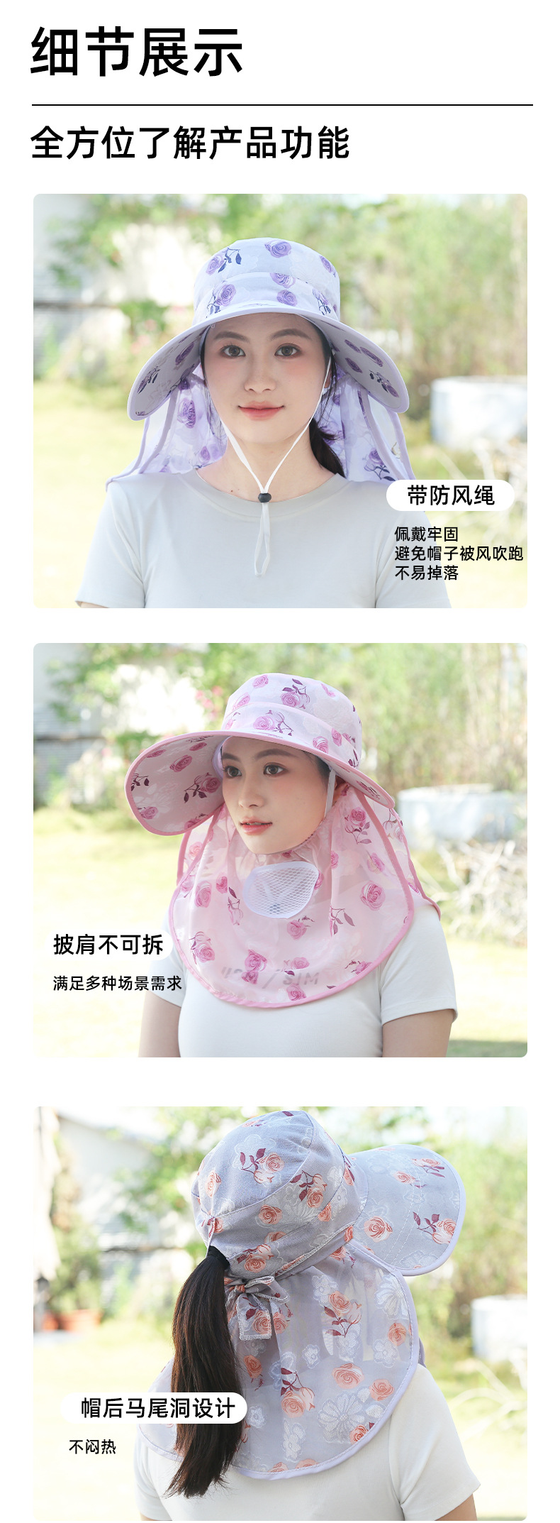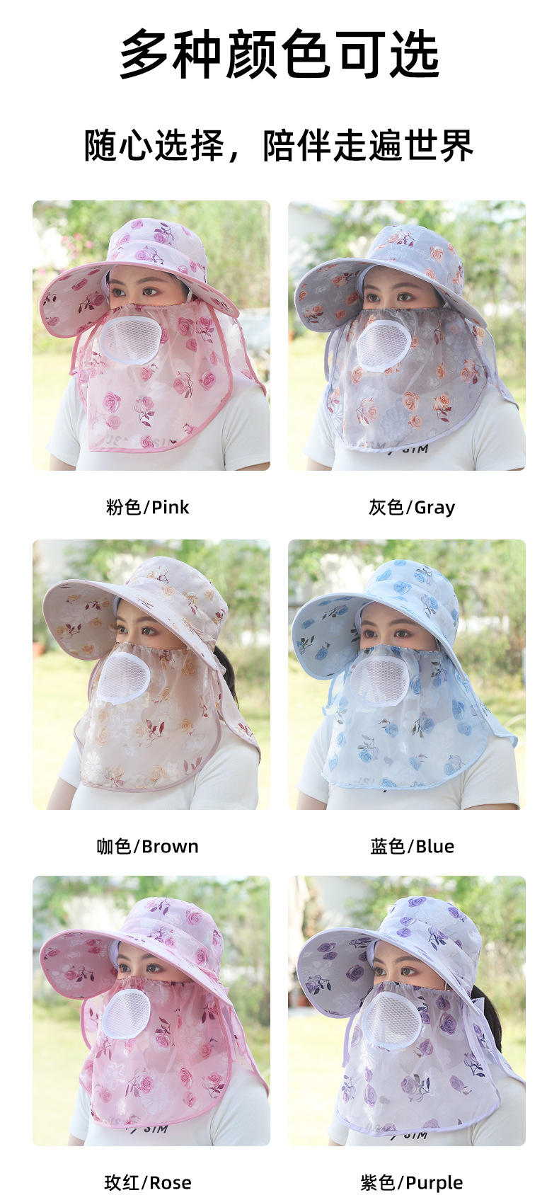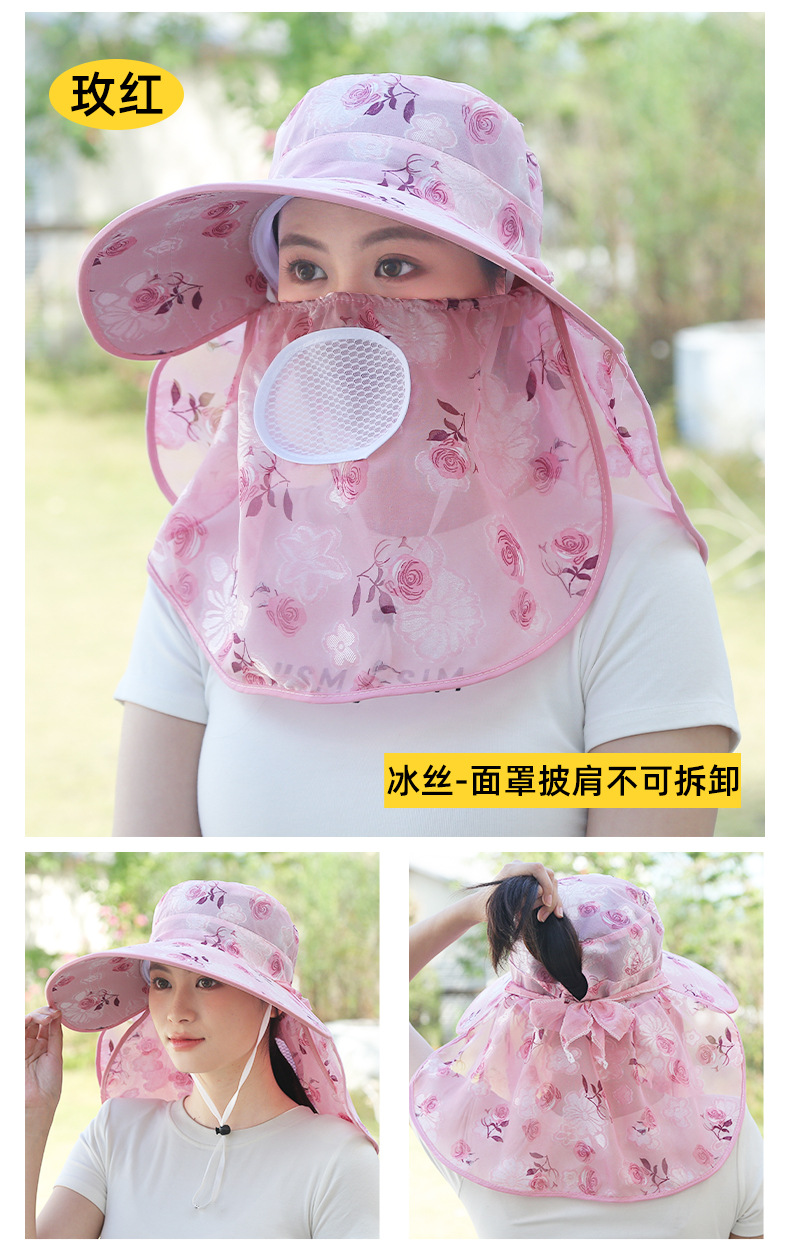 春夏冰丝帽子时尚遮阳防晒帽干农活采茶帽户外休闲批发大檐渔夫帽
