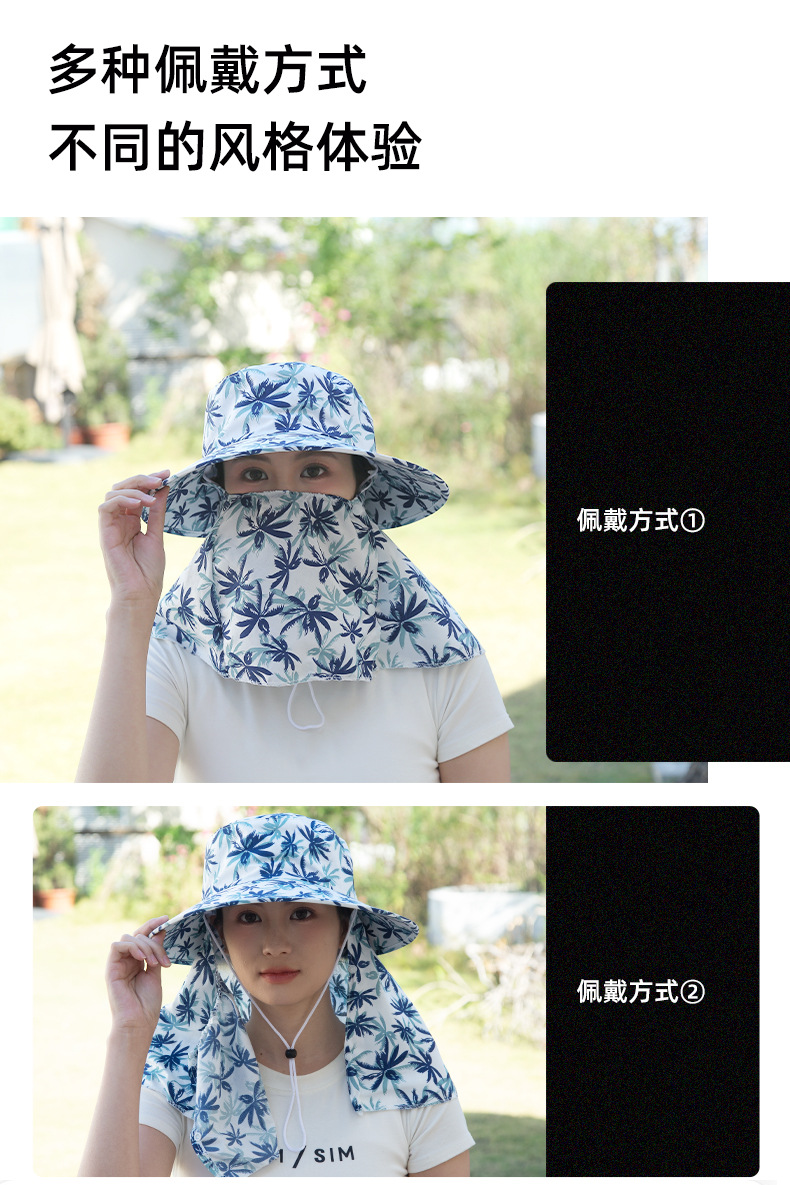 定制夏季新款外贸女士太阳帽户外骑行遮脸遮阳帽休闲旅游采茶帽子
