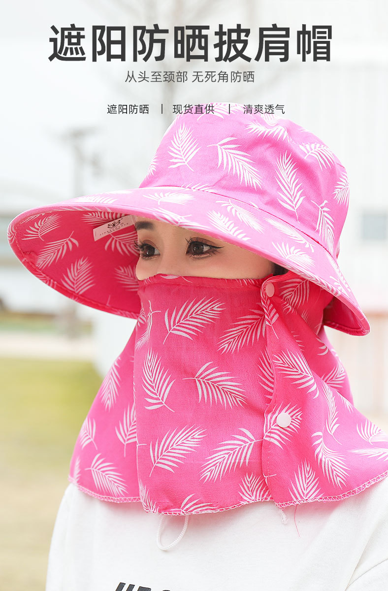 夏季新款防晒帽遮脸护颈遮阳帽户外登山太阳帽防尘农活采茶帽批发