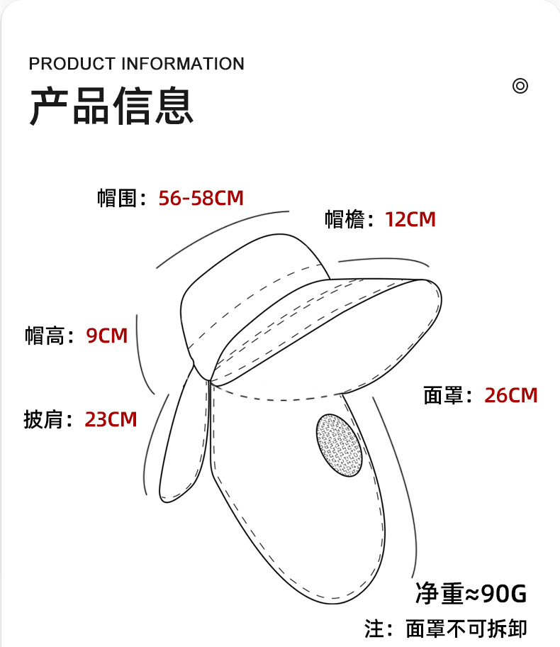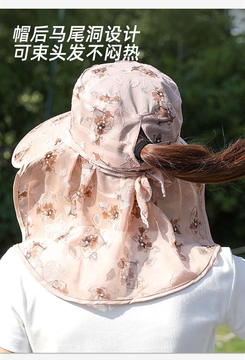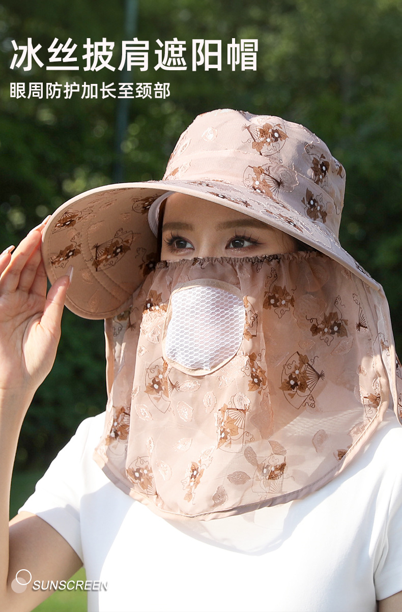 定制夏季帽子防晒户外遮脸骑行太阳帽透气面罩遮阳大檐登山采茶帽