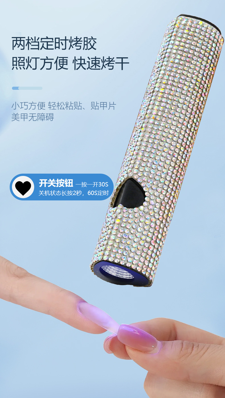 手持爱心贴钻一字灯便携烤灯蓄电速干迷你光疗甲片照灯无线充电款