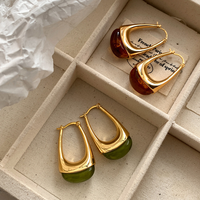 港风百搭时尚气质耳钉网红耳饰真金电镀法式复古高级感几何形耳环