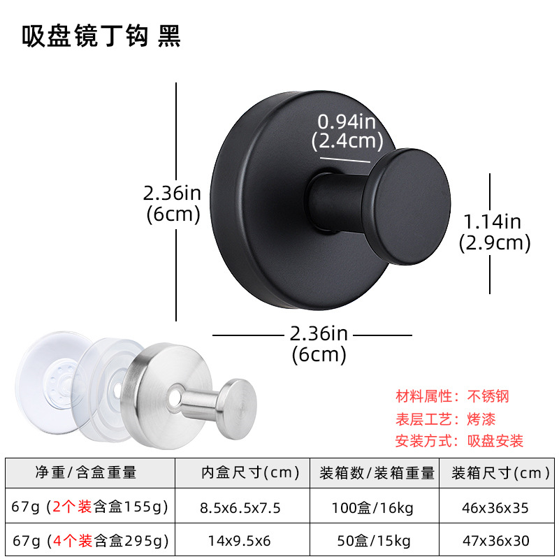 无痕不锈钢吸盘挂钩免打孔真空衣帽钩墙壁浴室厨房毛巾吸盘挂钩