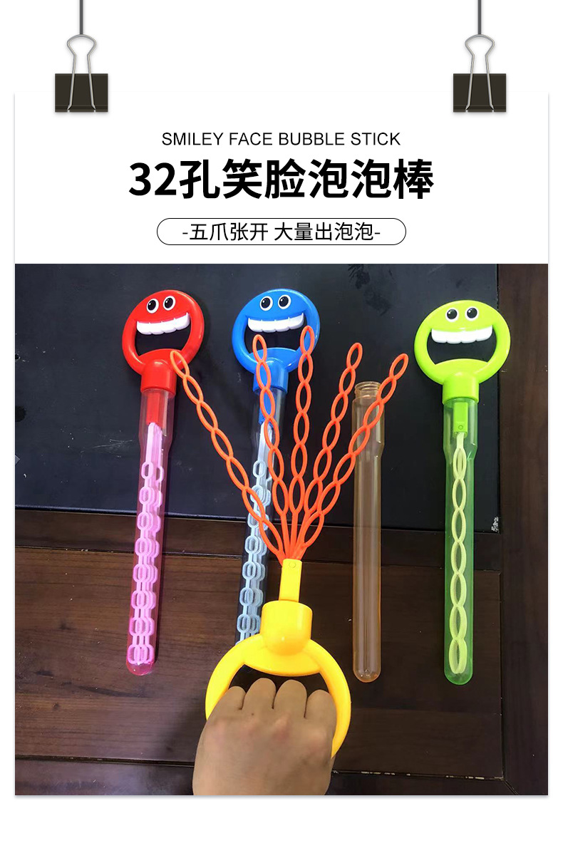 儿童手握五爪32孔笑脸泡泡棒带灯款吹泡泡户外玩具泡泡棒儿童混发