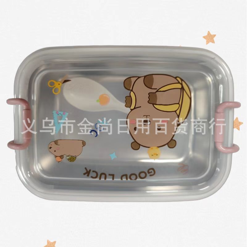 分格保温可爱萌趣卡通卡皮巴拉饭盒卡皮巴拉食品级儿童不锈钢饭盒