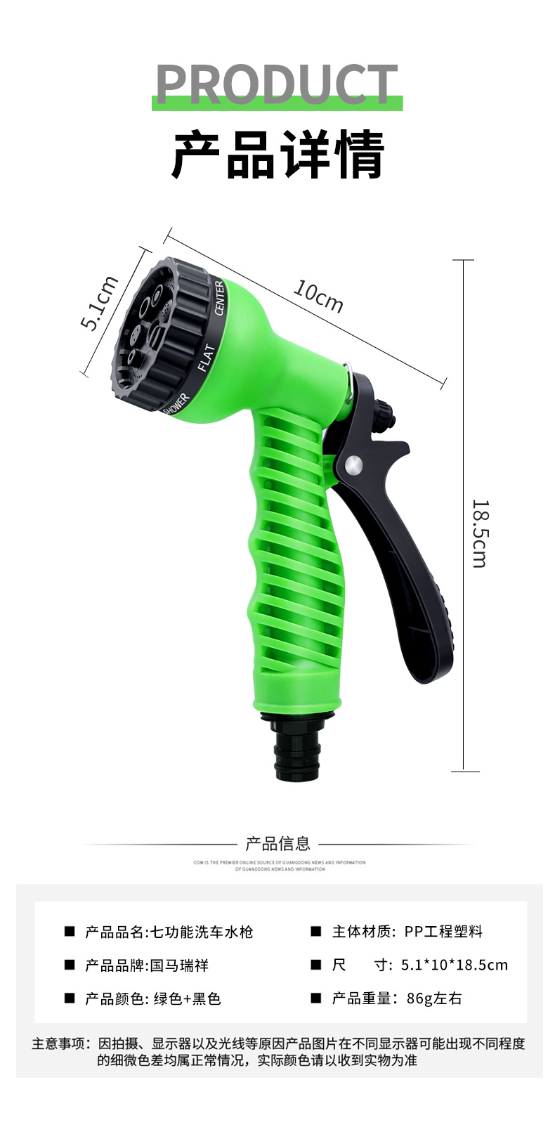 国马瑞祥洗车水枪七功能旋转喷头园林水枪汽车喷水喷洒塑料水枪