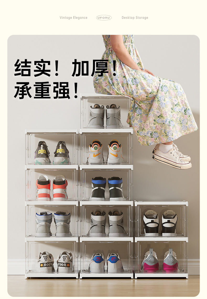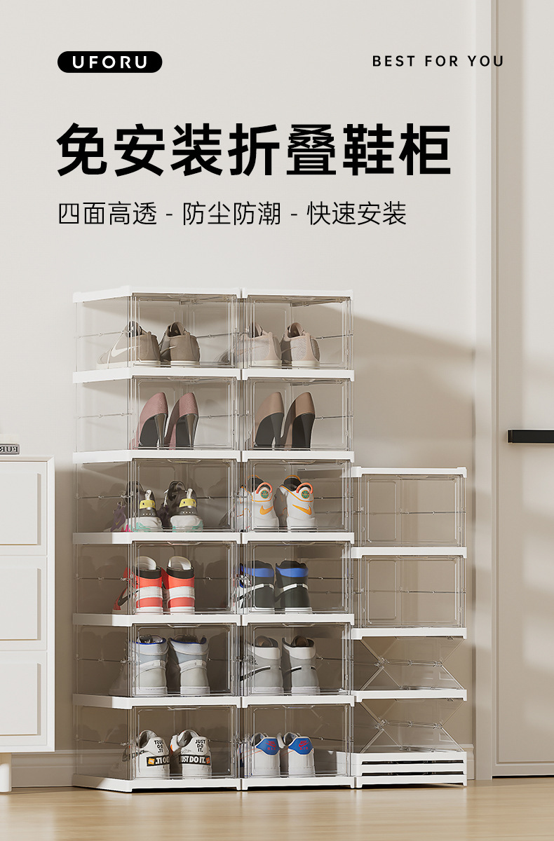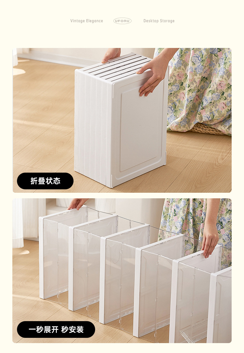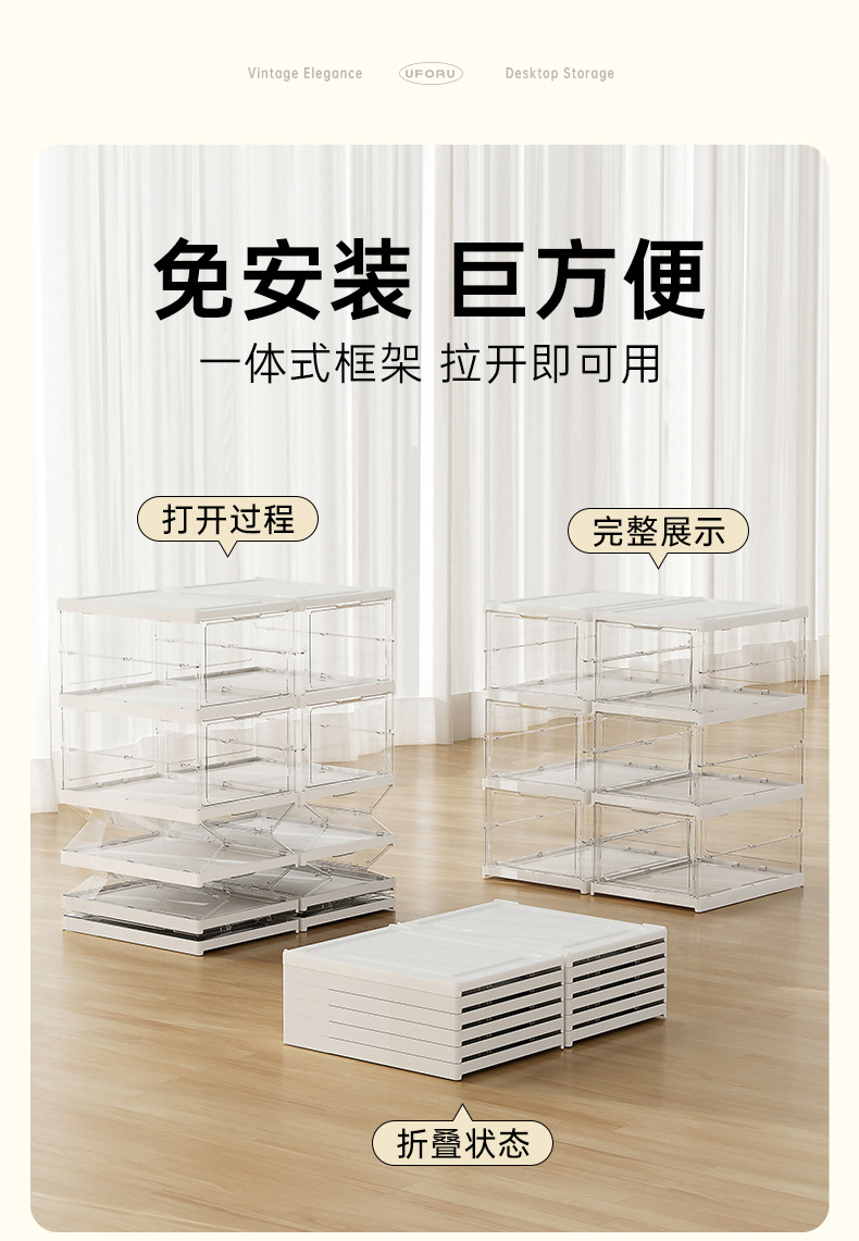 四面透明折叠鞋盒 免安装一体式鞋子收纳盒翻盖防尘可折叠鞋柜塑