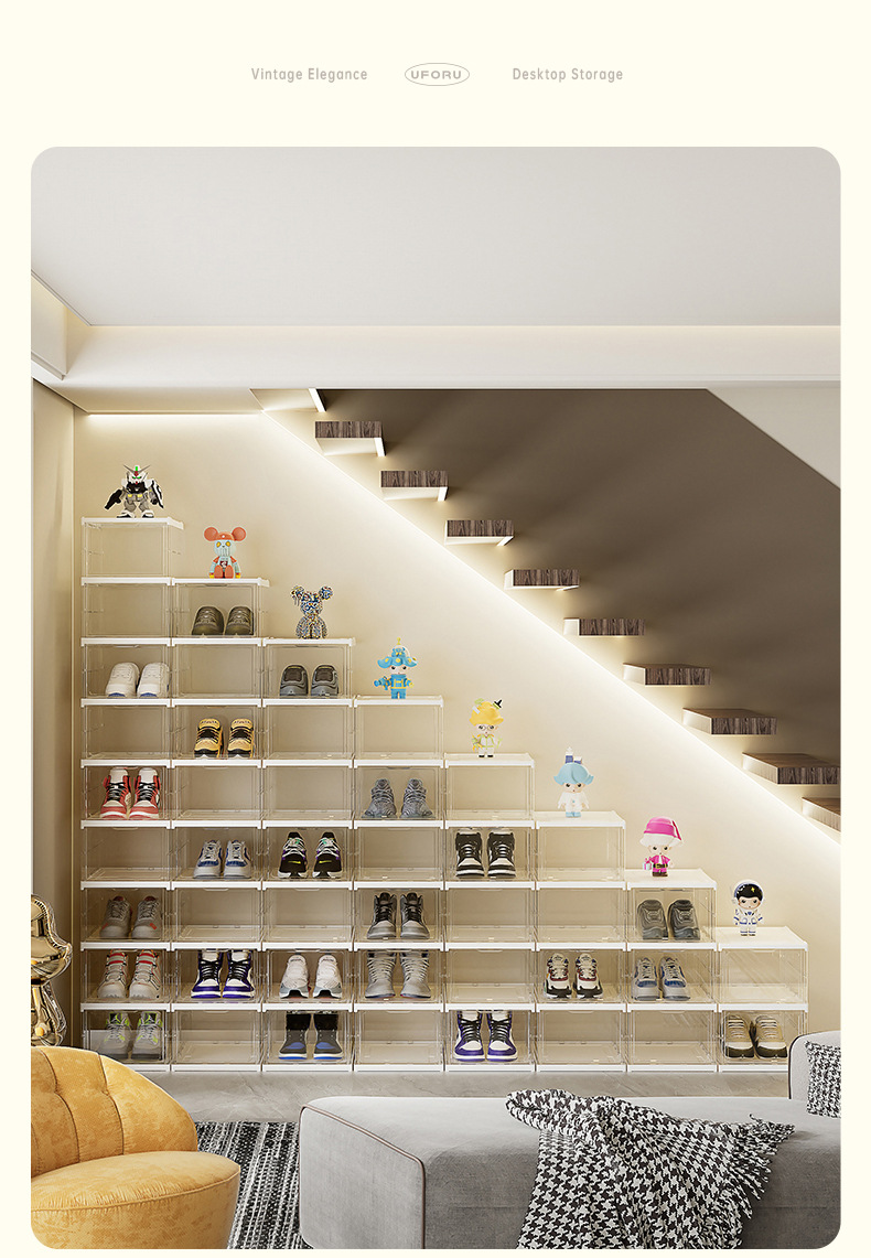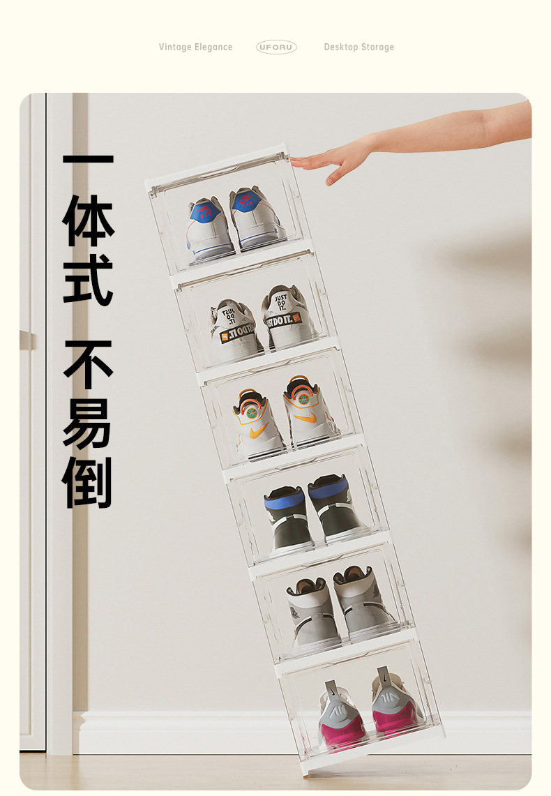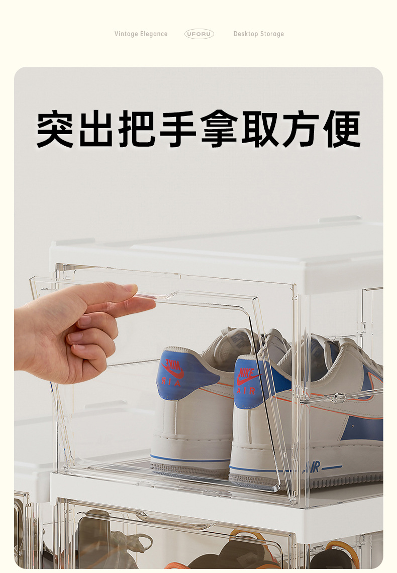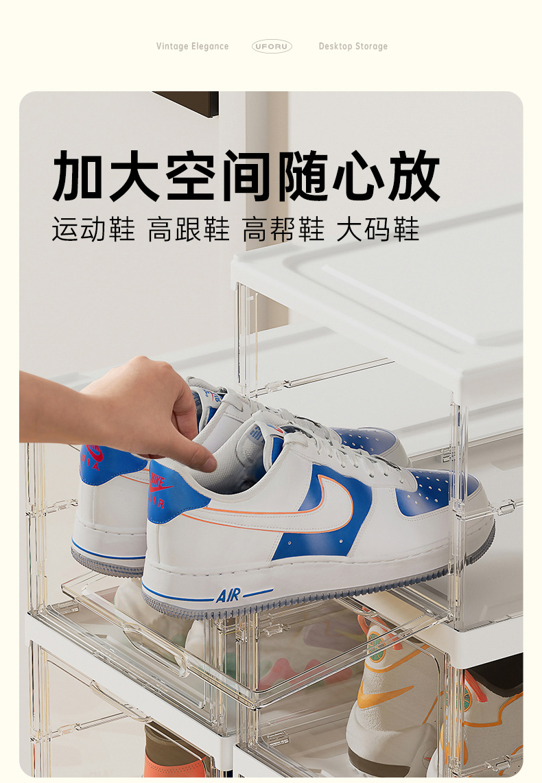 四面透明折叠鞋盒 免安装一体式鞋子收纳盒翻盖防尘可折叠鞋柜塑