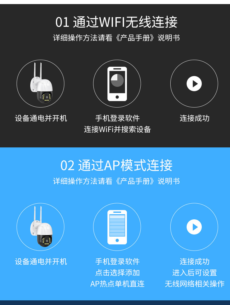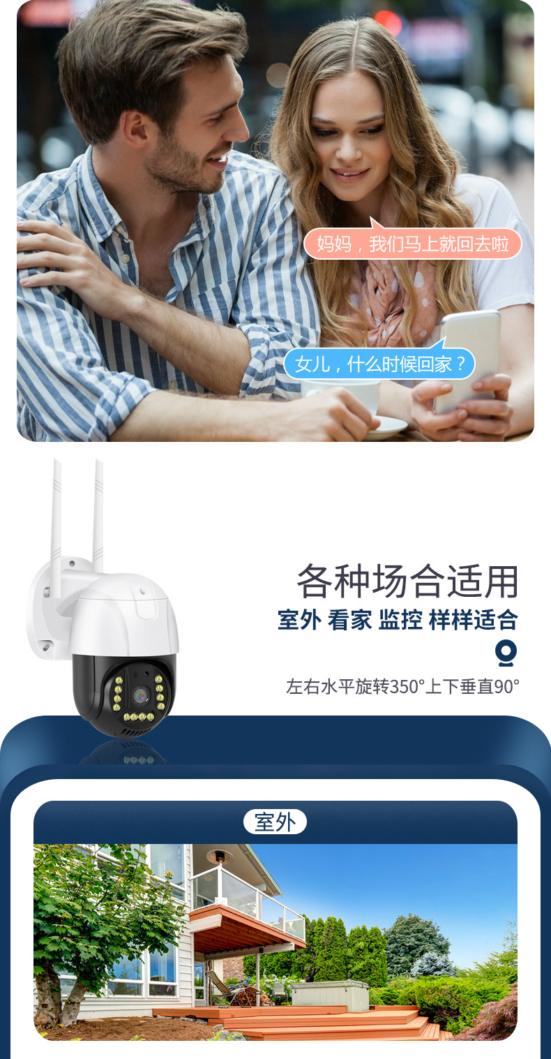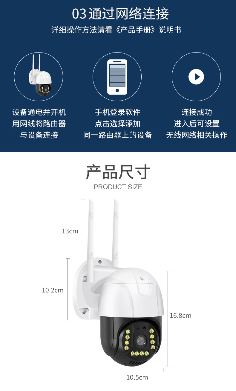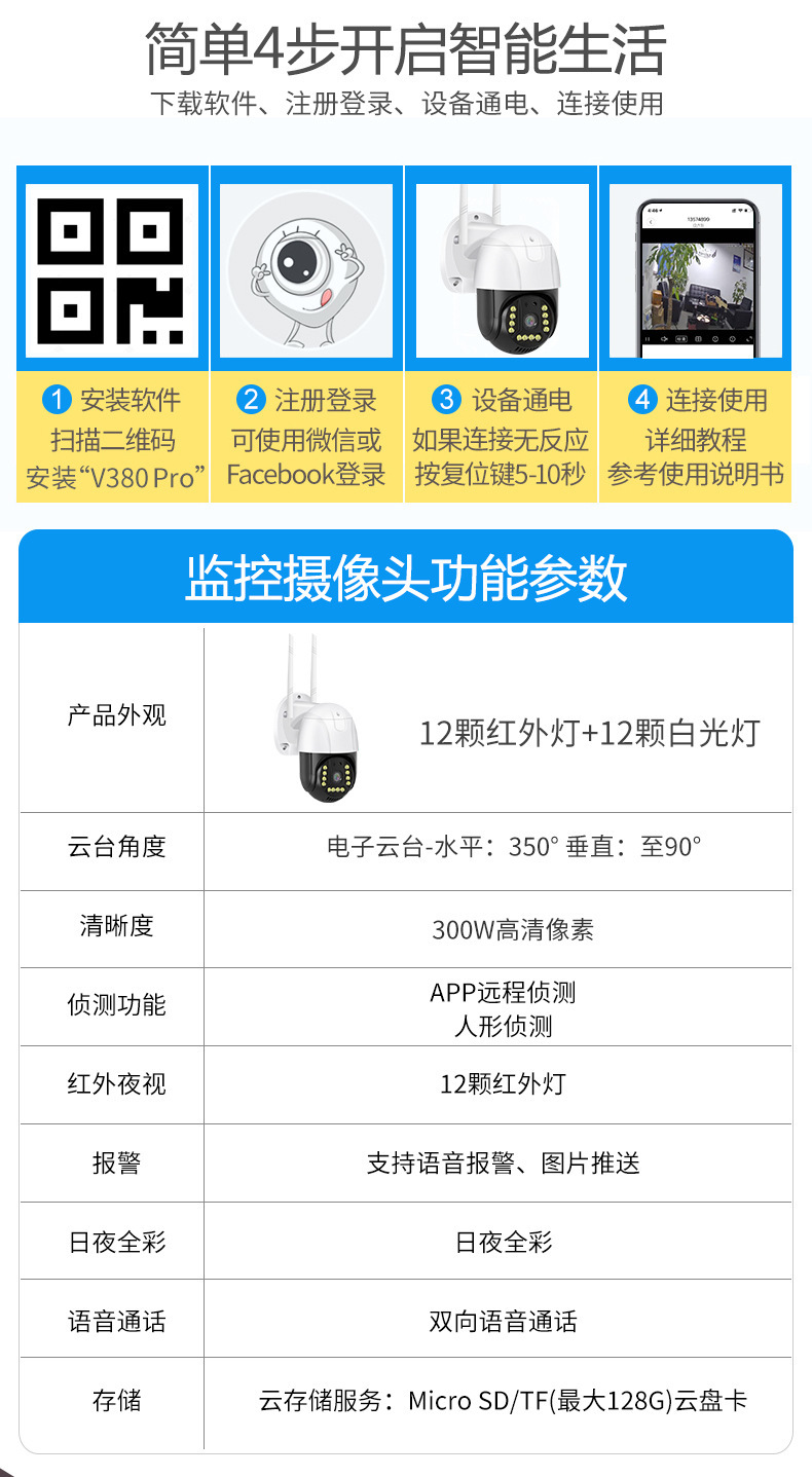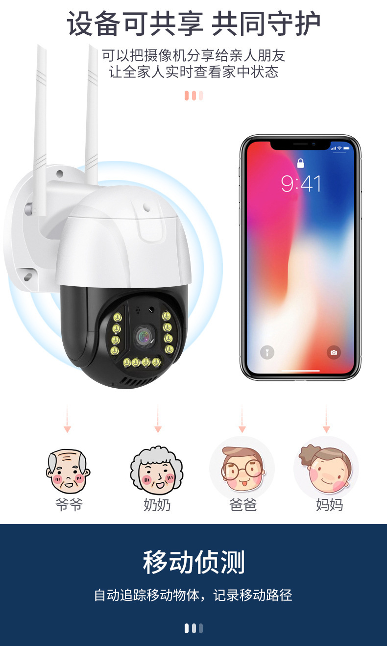 全景监控球机WiFi无线摄像头户外旋转批发infrared night vision