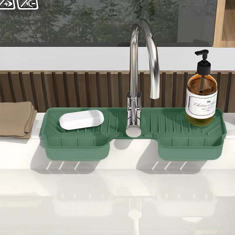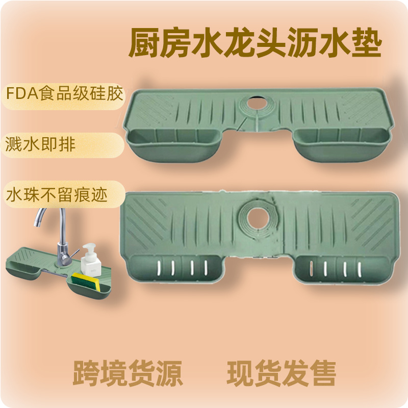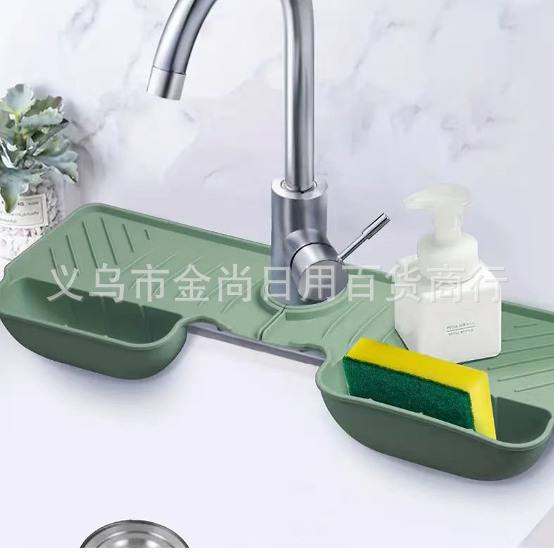自排水式水龙头防溅板硅胶厨房水槽防溅垫带收纳功能洗手台沥水垫