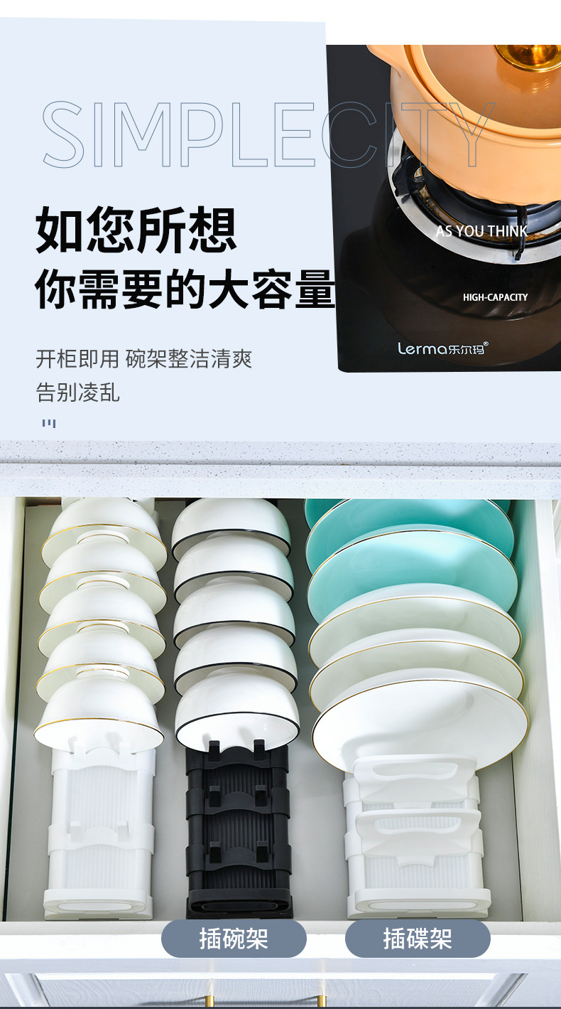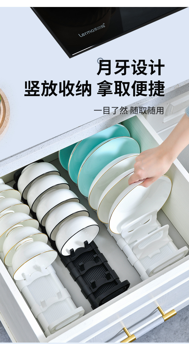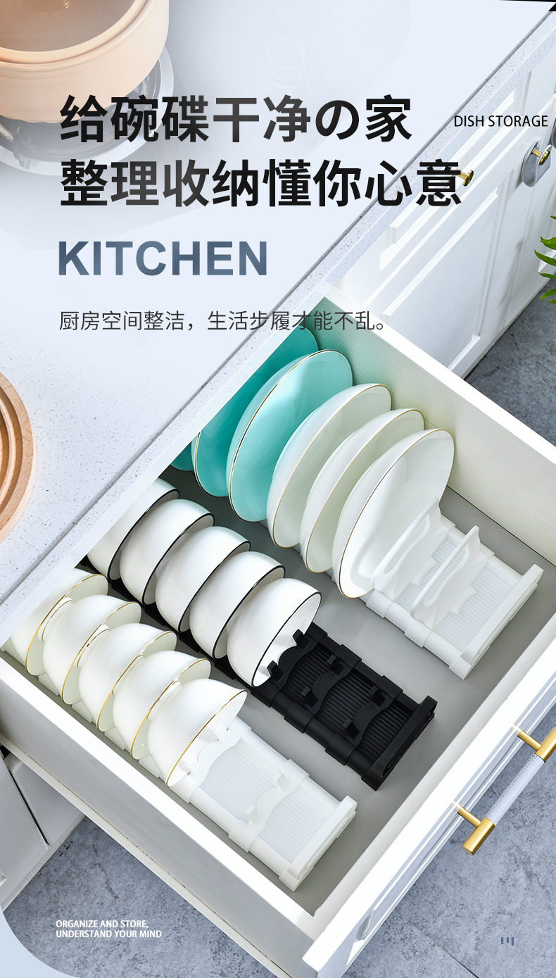 橱柜内盘子沥水碗盘可调节置物碗架收纳架厨房抽屉里分隔伸缩碗架