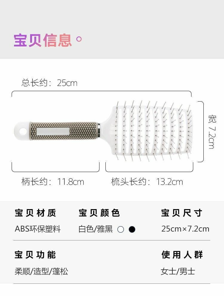 漾姿红色蓬松大弯梳顺发造型按摩排骨梳男女便携猪鬃毛美发梳子