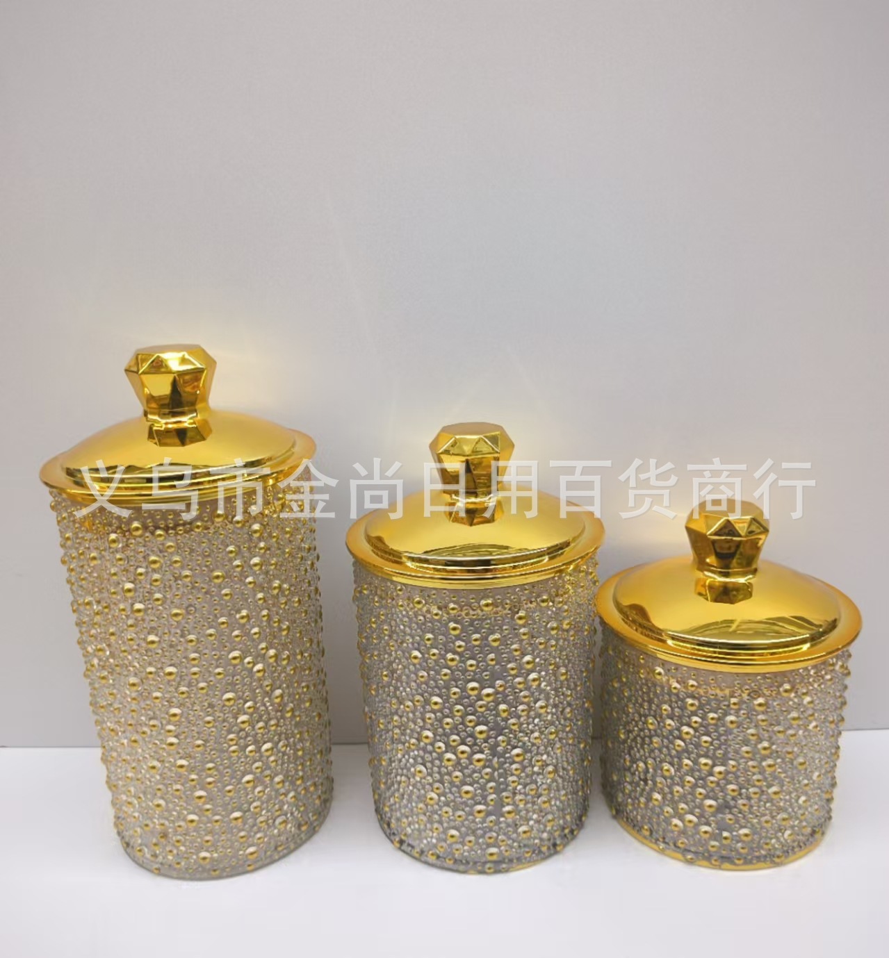金色珍珠款储物罐桌面手提坚果糖果罐酒店 茶叶罐摆件