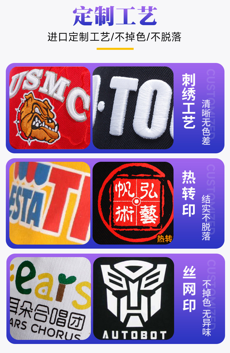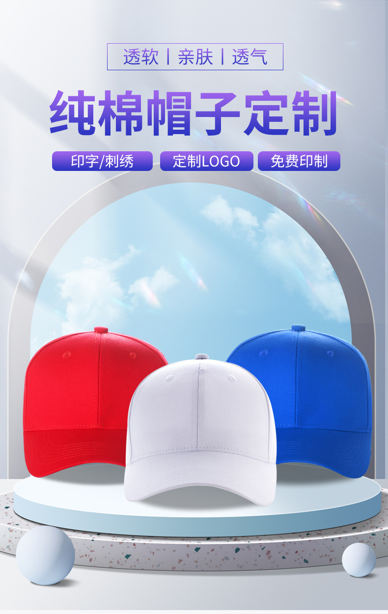 纯棉六片广告帽 免费拿样 印字LOGO可刺绣加厚光板批发鸭舌棒球帽