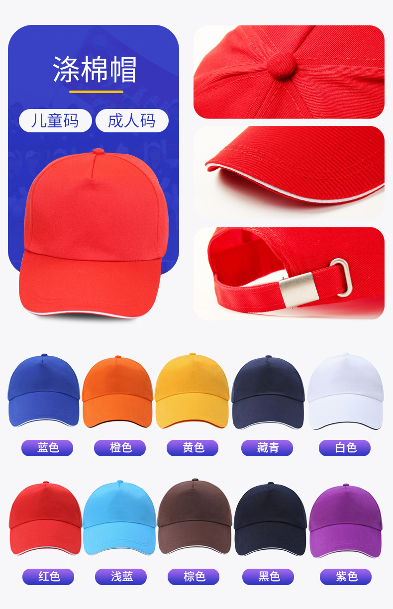 工厂批发儿童广告定制帽子印字空白光板棒球帽纯棉鸭舌帽旅游遮阳