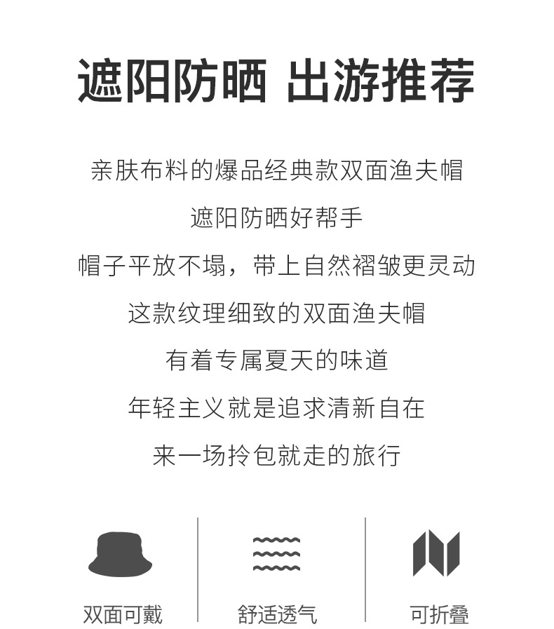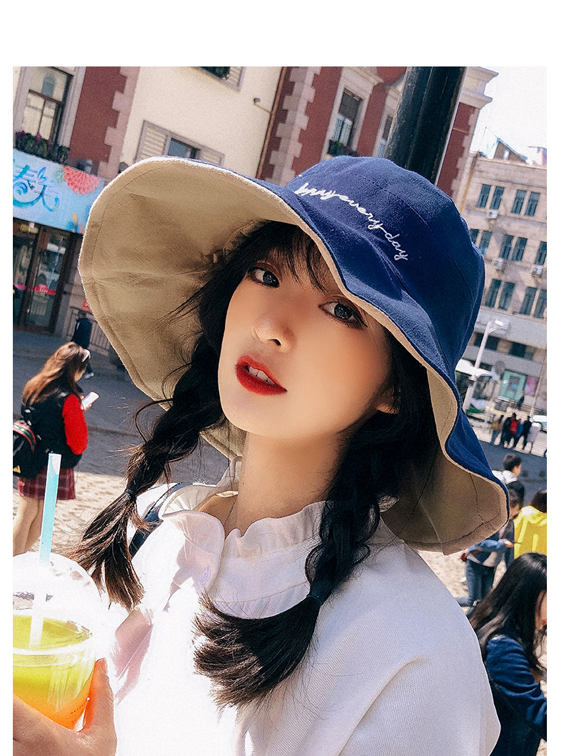 双面渔夫帽女日系大沿帽子女韩版潮夏季百搭遮阳帽防晒遮脸太阳帽