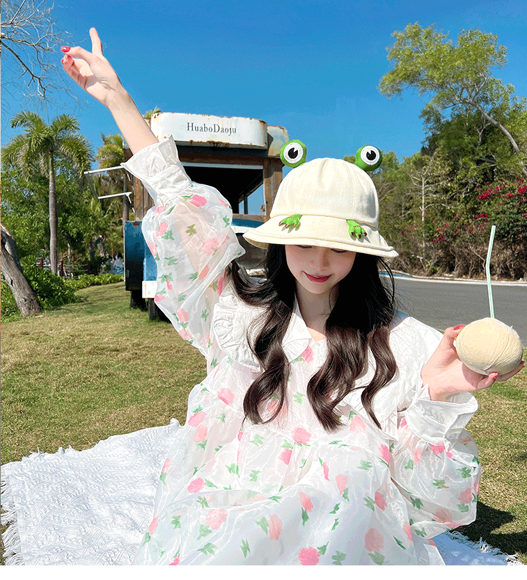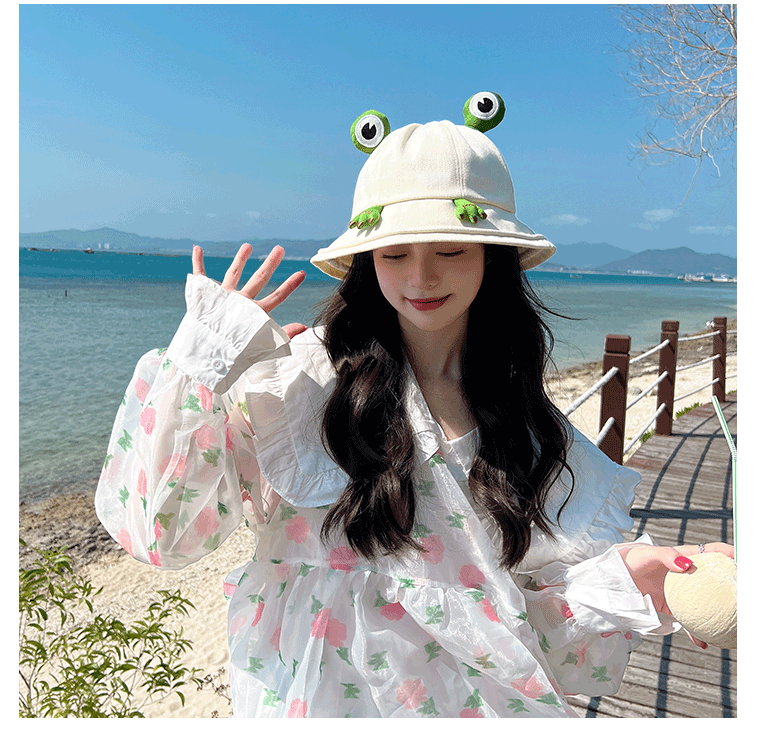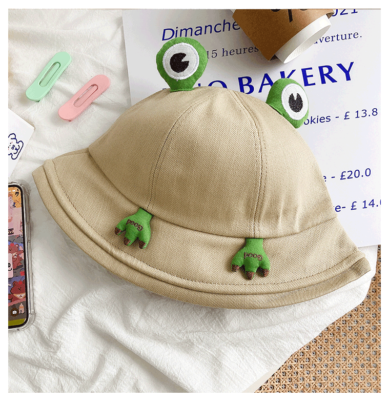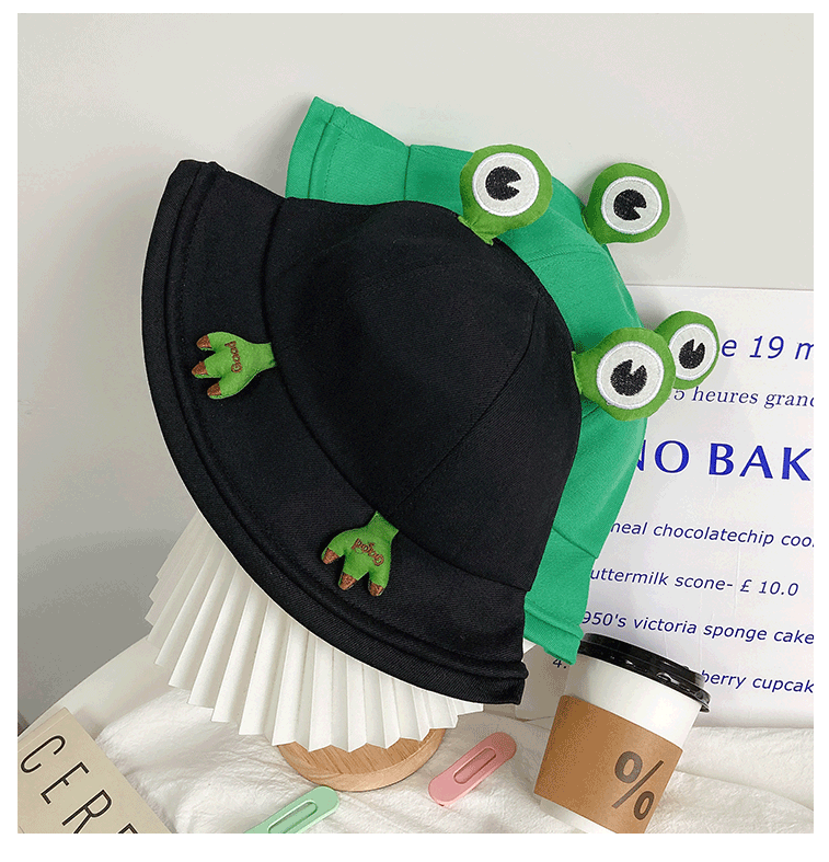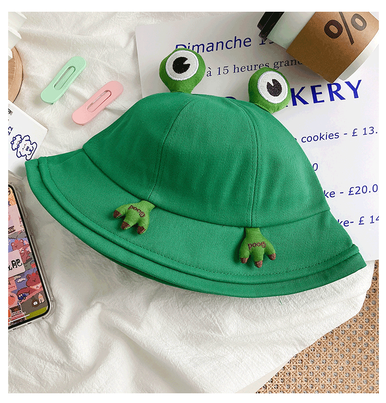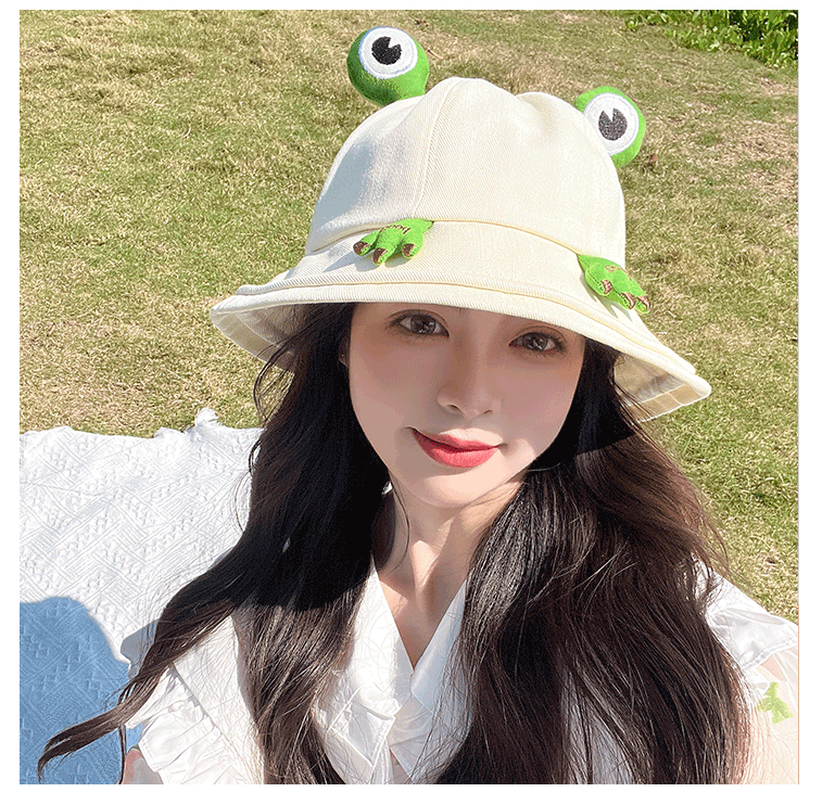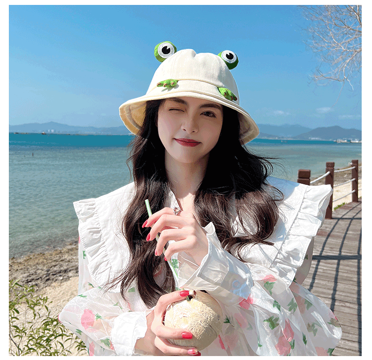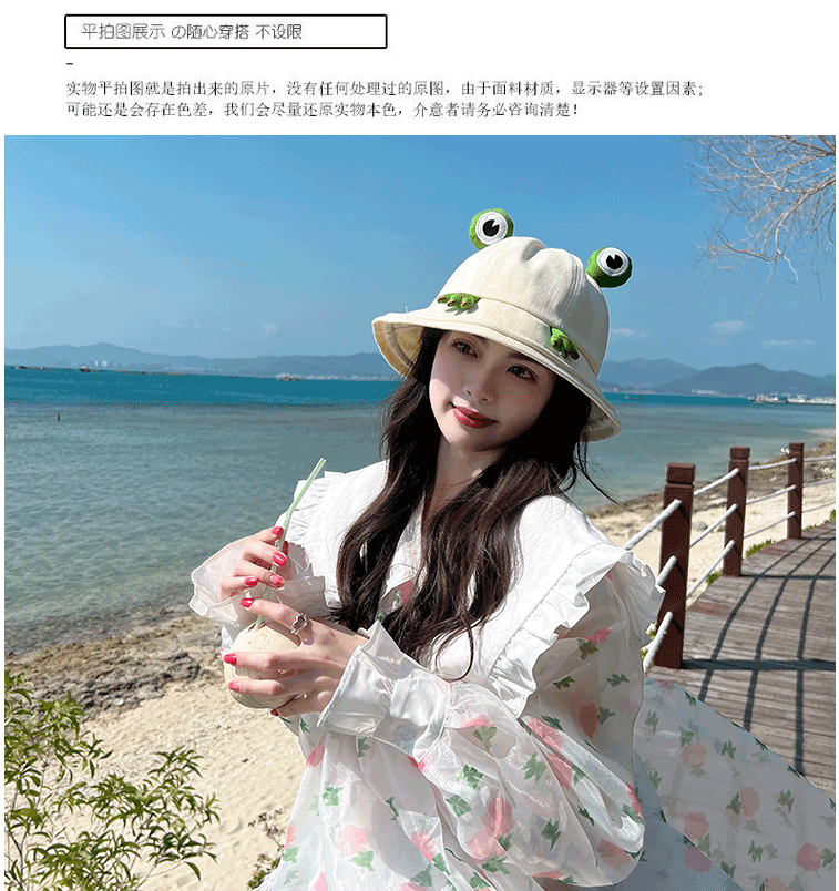 渔夫帽女春夏季户外海边出行遮阳防晒帽子大头围日系可爱青蛙盆帽