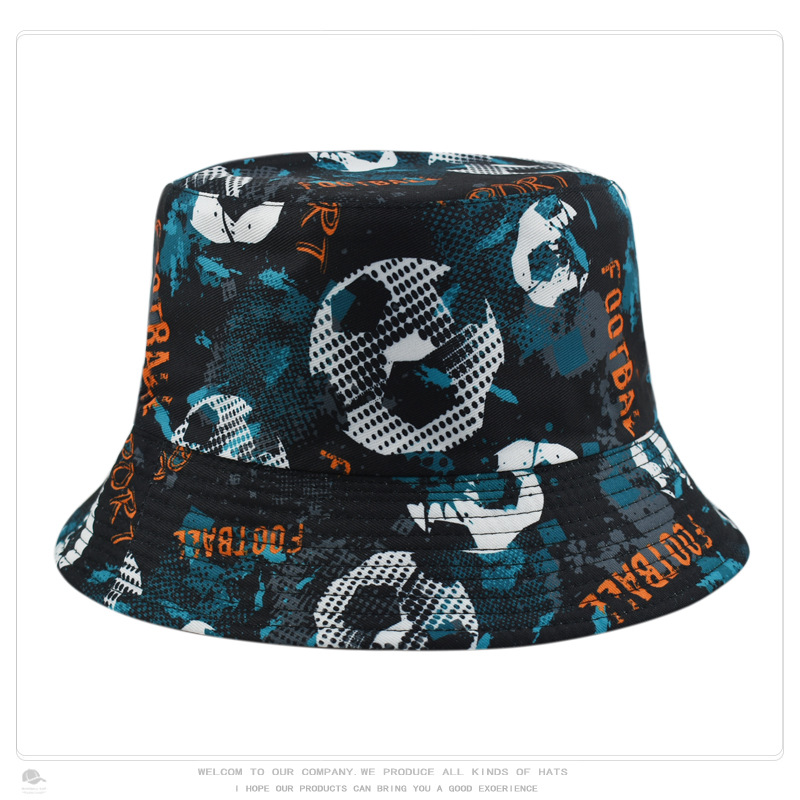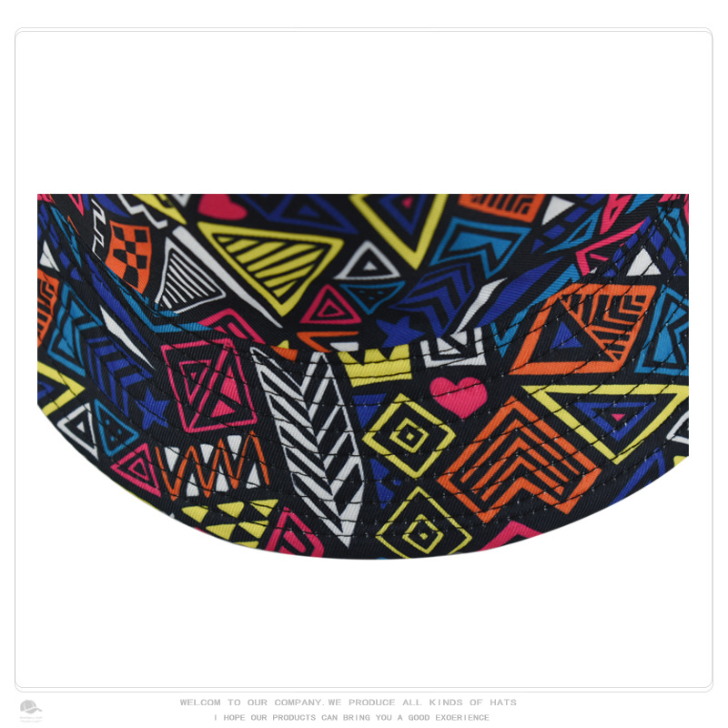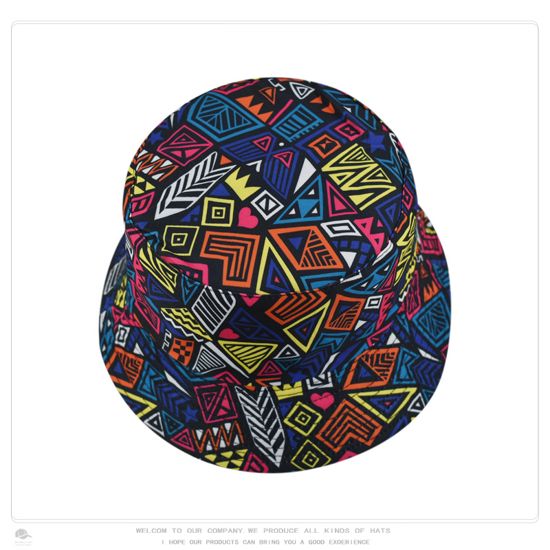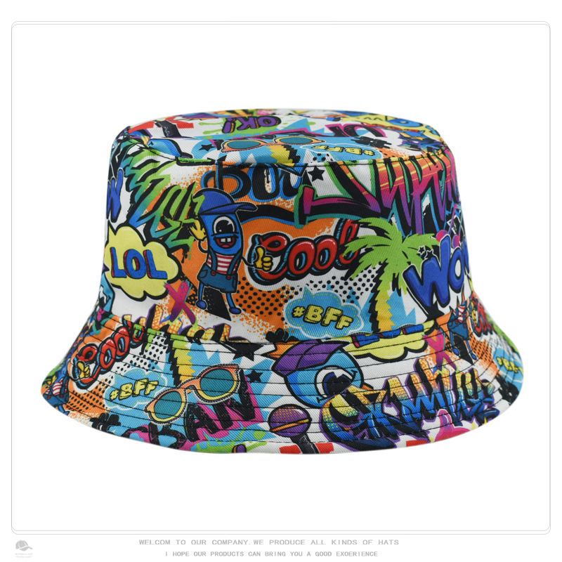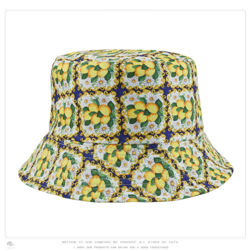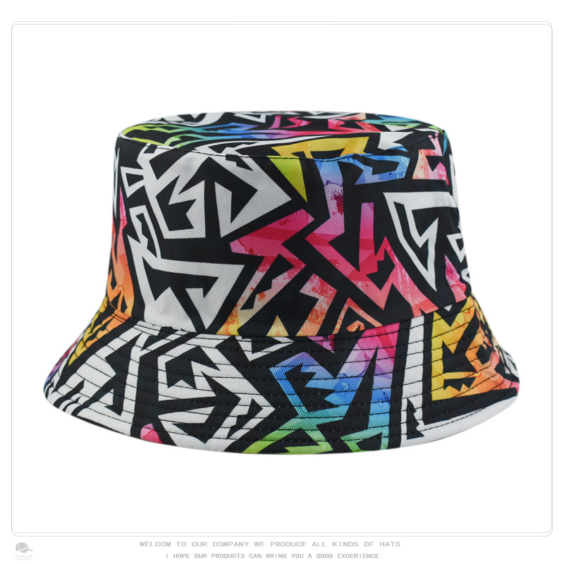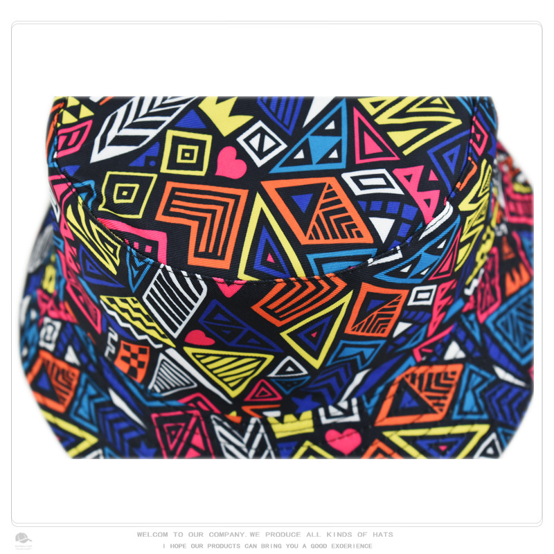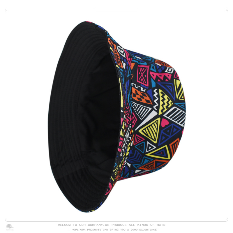 新款欧美时尚复古图案印花渔夫帽女户外旅行遮阳帽双面可戴盆帽男