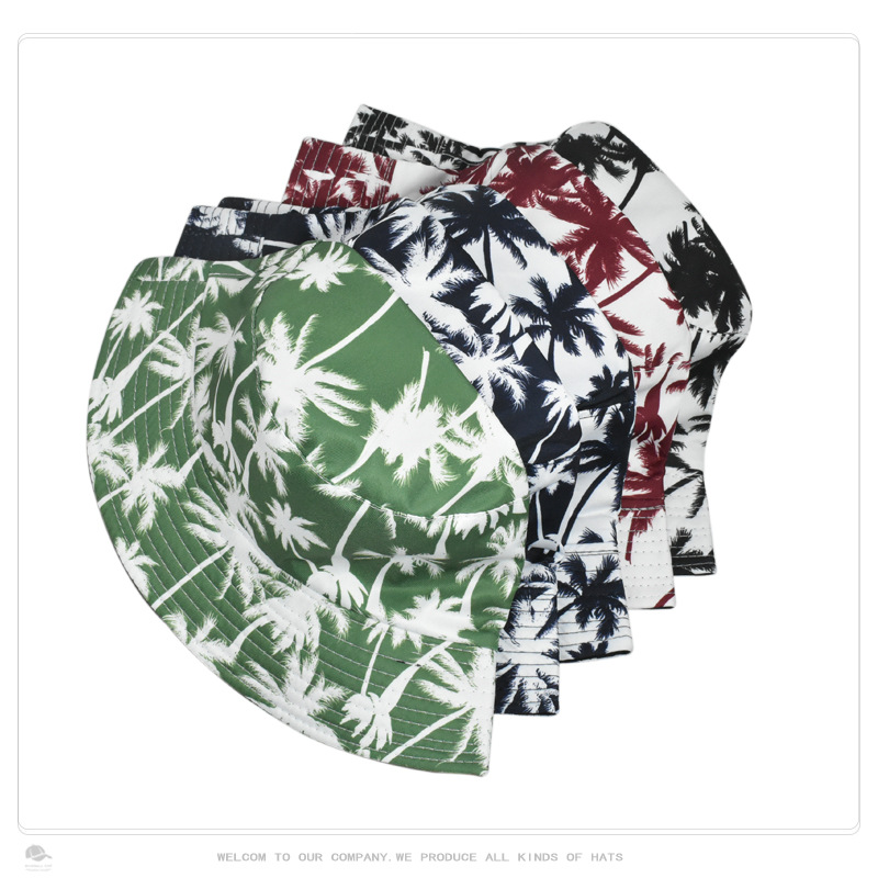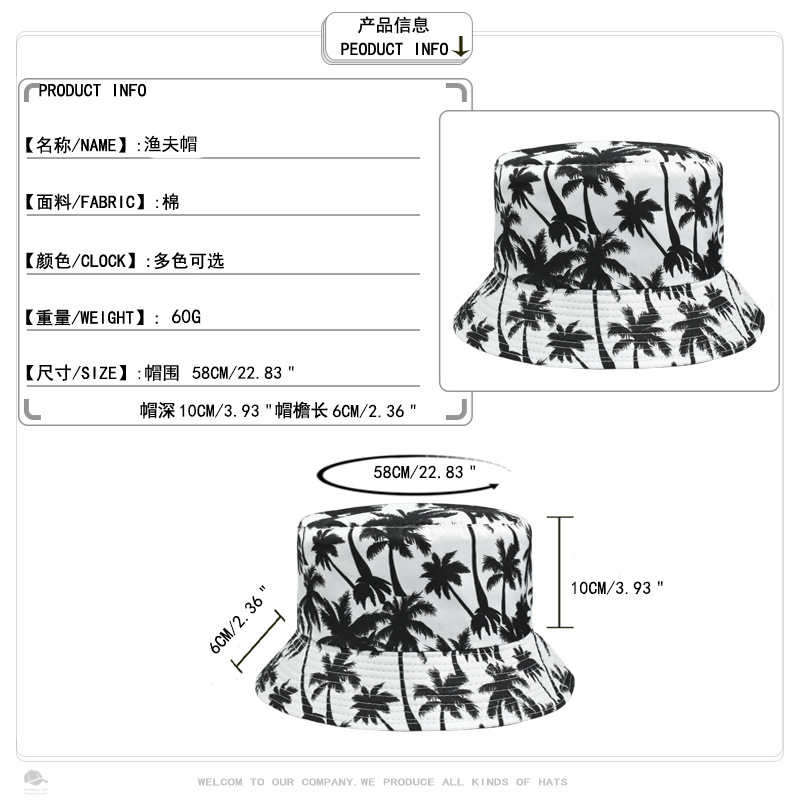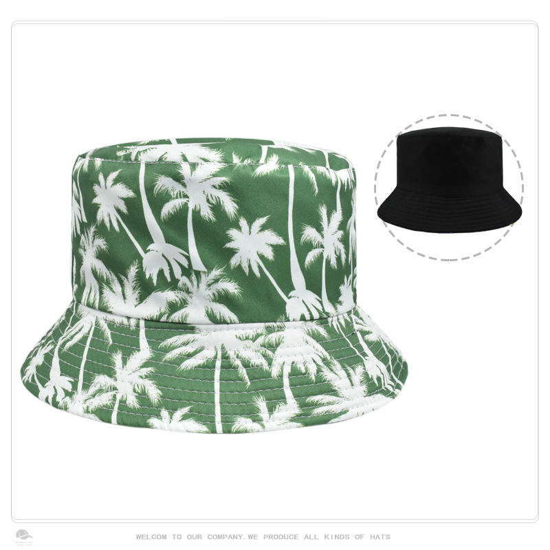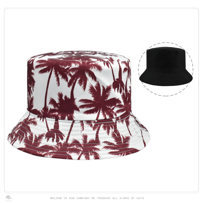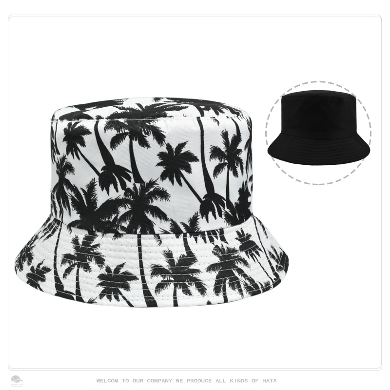 跨境渔夫帽印花椰树双面戴盆帽女时尚新款户外出行遮阳防晒太阳帽