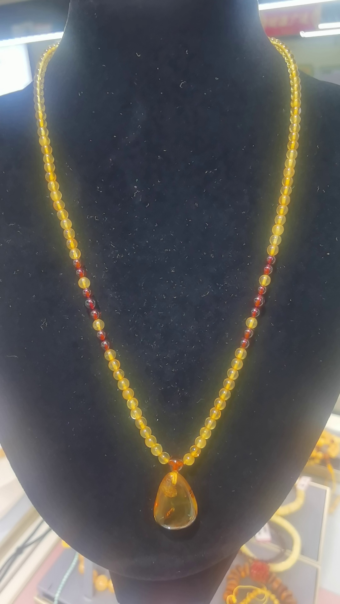 俄罗斯天然琥珀项链,镶嵌花珀吊坠,