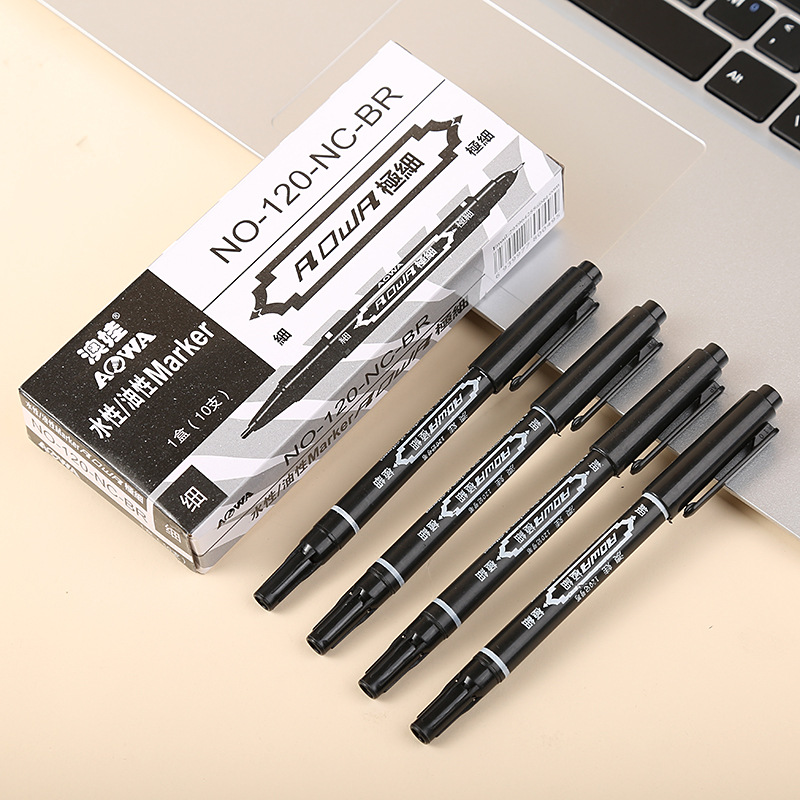 小双头勾线笔速干记号笔水性黑色彩色学生描边画画极细盒装记号笔